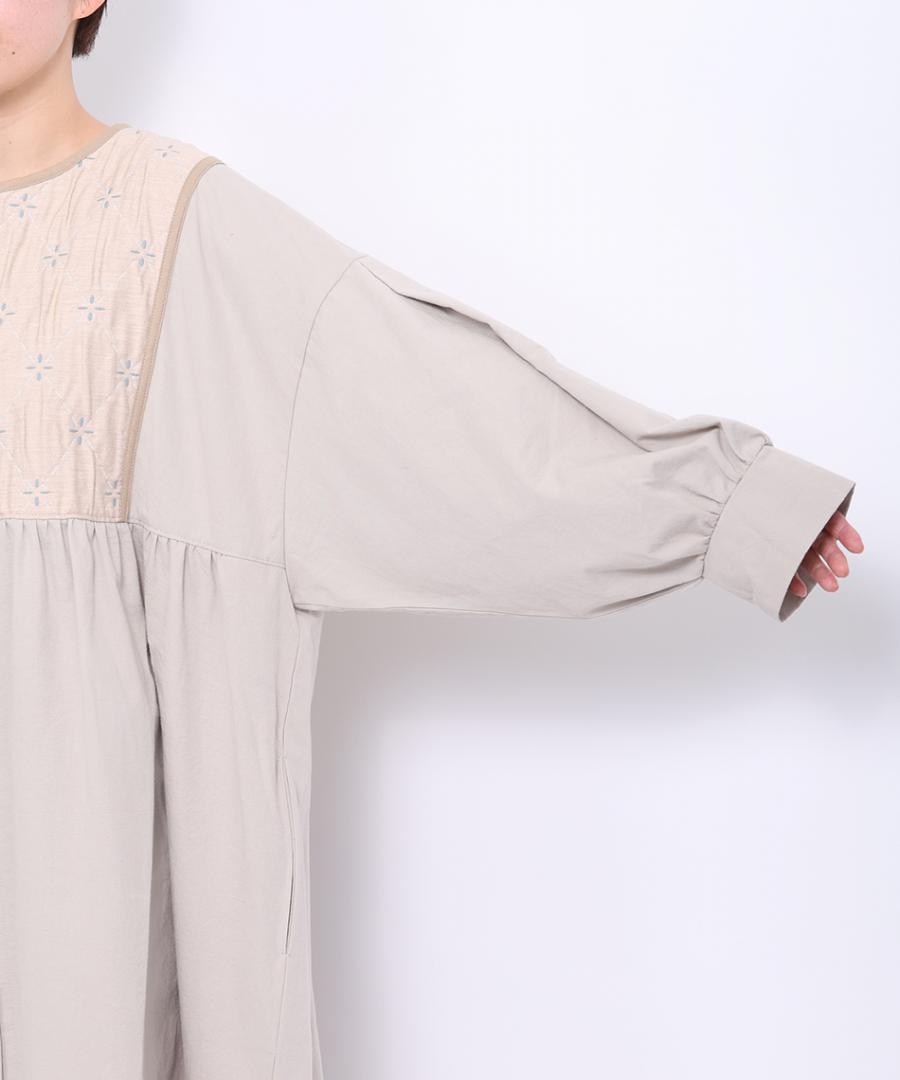 軽くてゆったりとした着心地で切替ギャザーから程よく広がる、綺麗なシルエット。