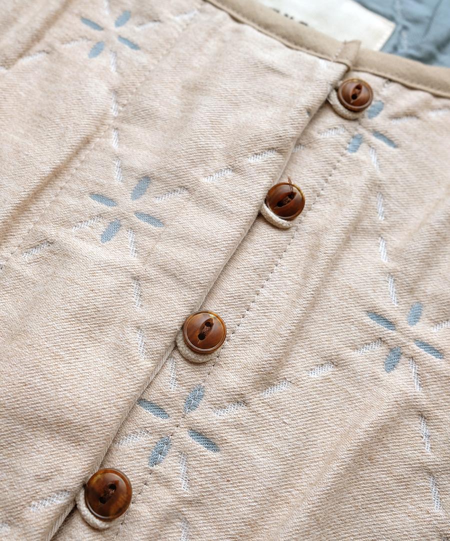 ぽこぽことした表面感に身頃にオリジナル生地をポイント使いしたデザイン性のアイテムに仕上がりました。