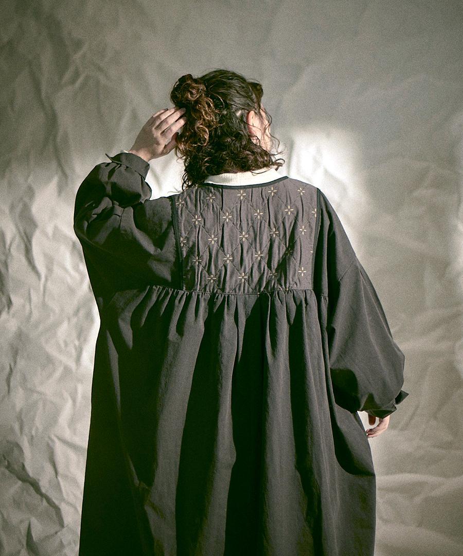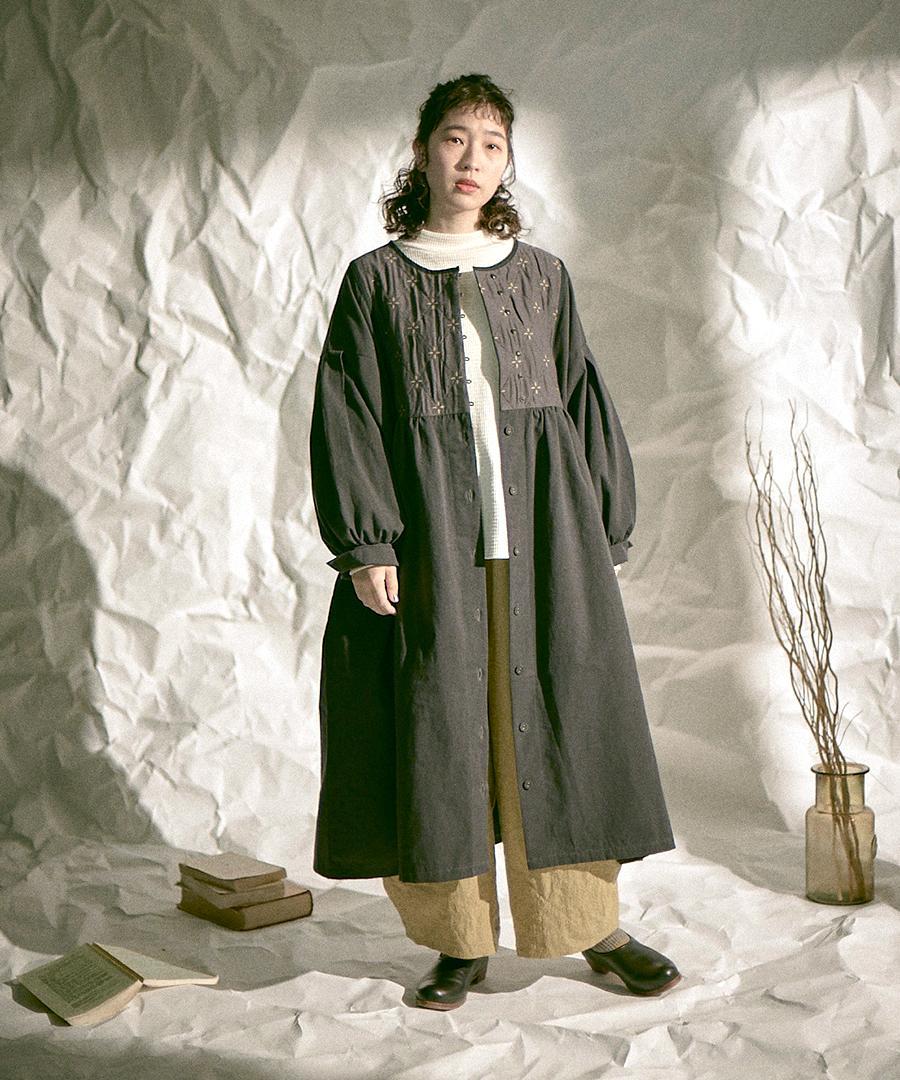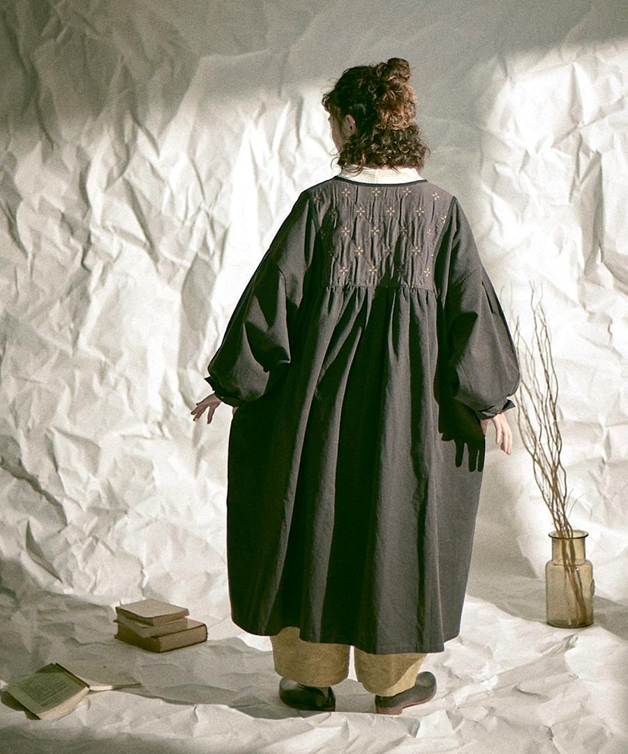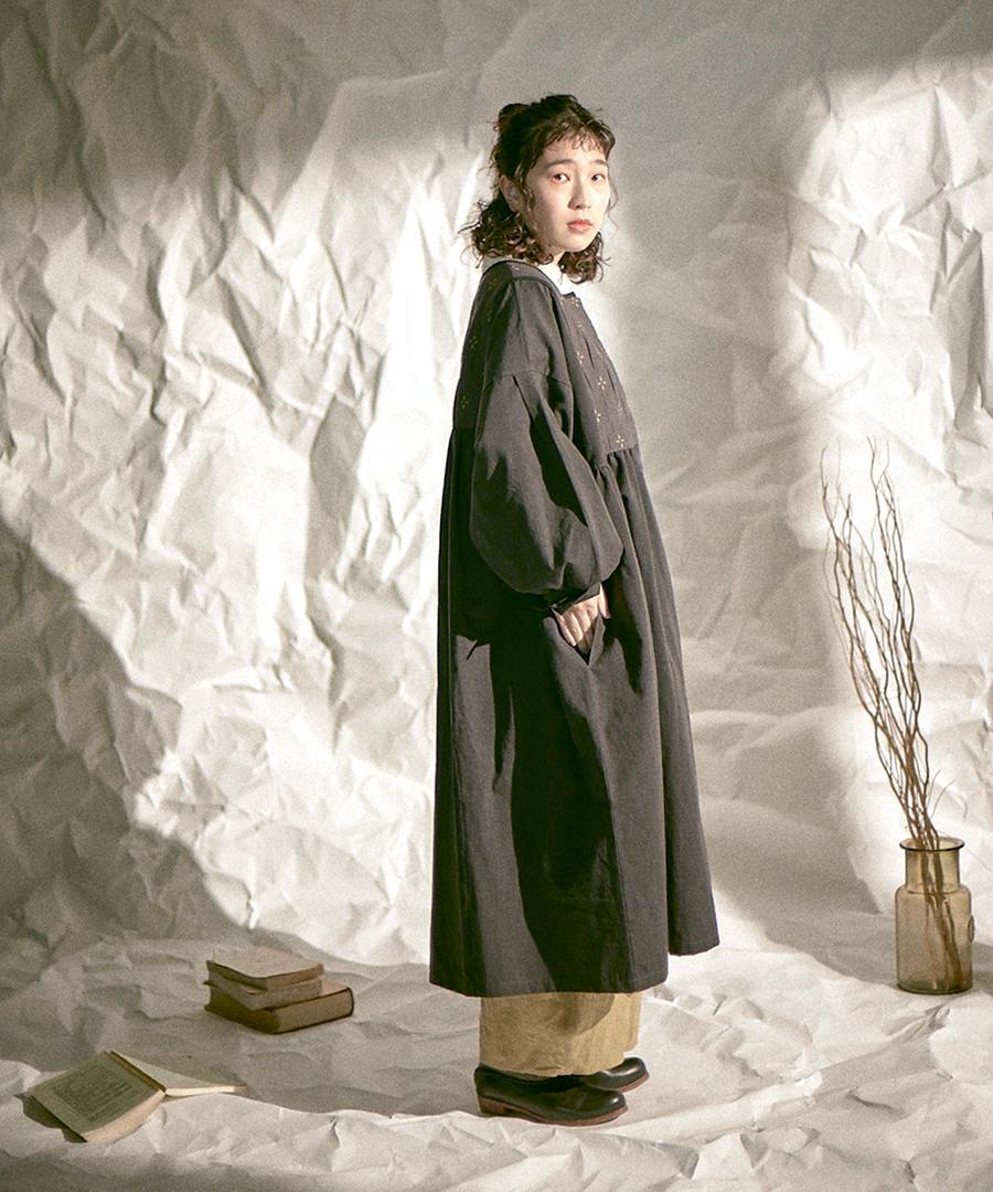ボタンを閉めればワンピースとして、ボタンを開けて秋のライトコートとしても大活躍ですよ。