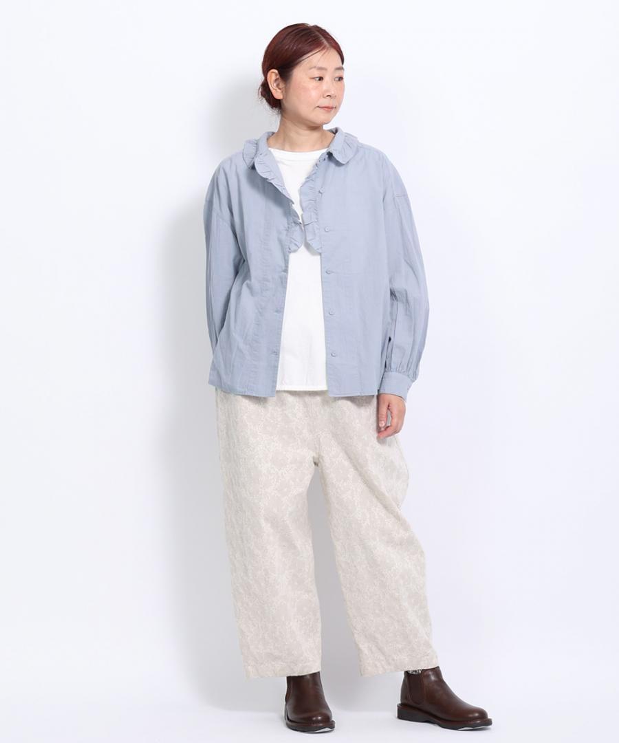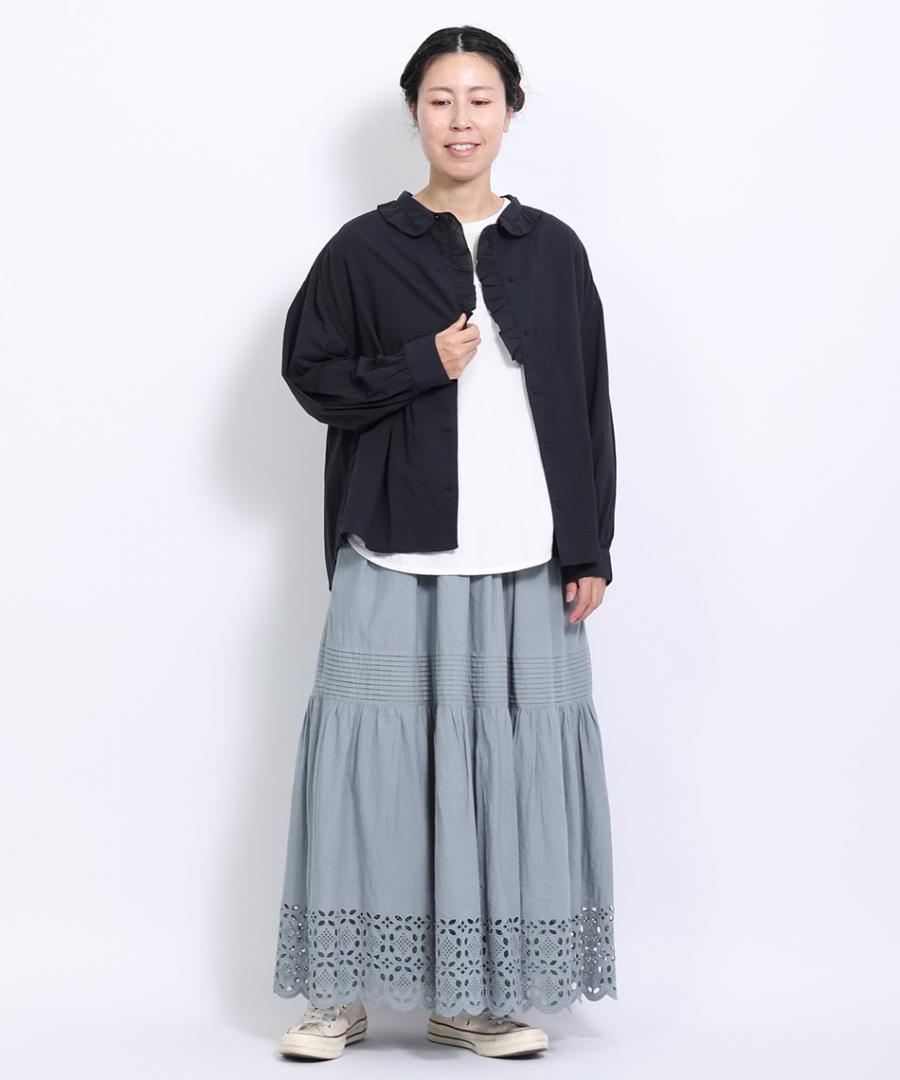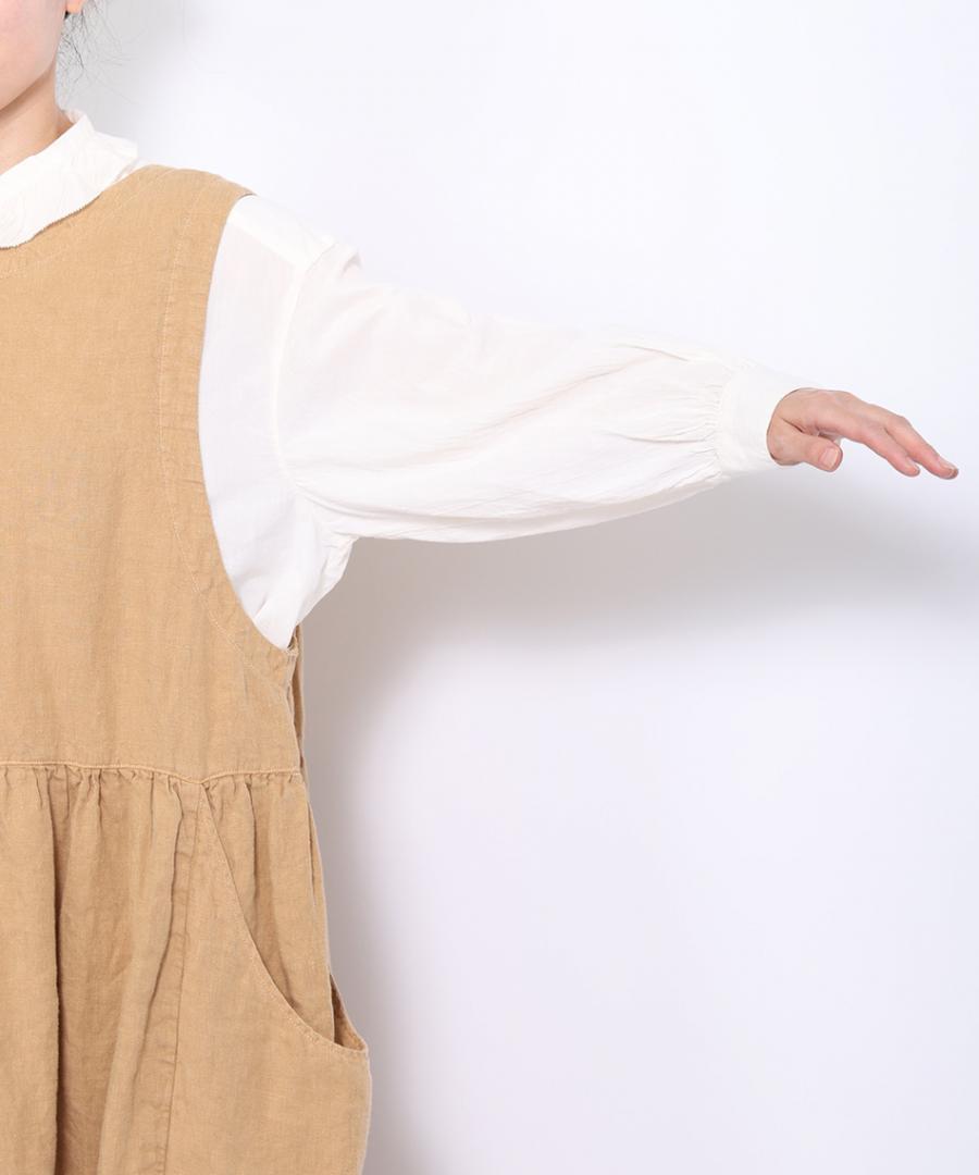 サロペットやジャンパースカートとのコーデもフリル襟がアクセントに。