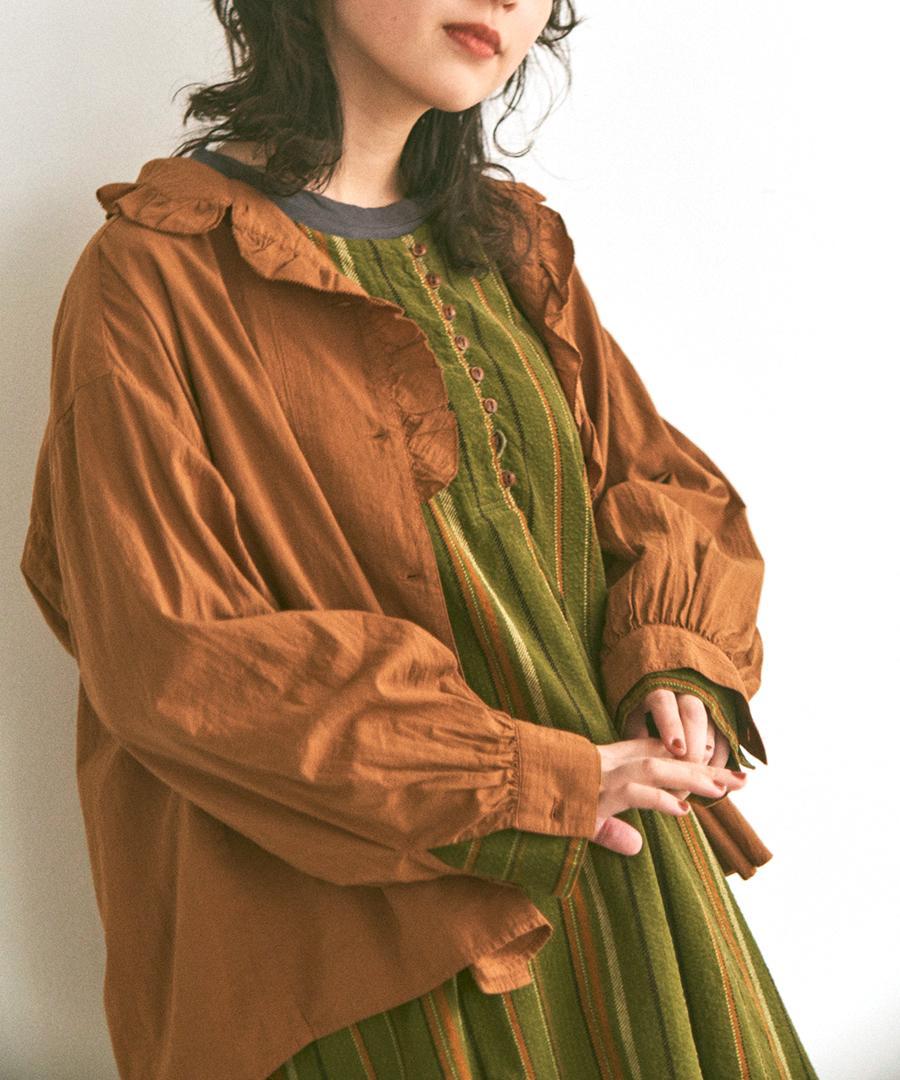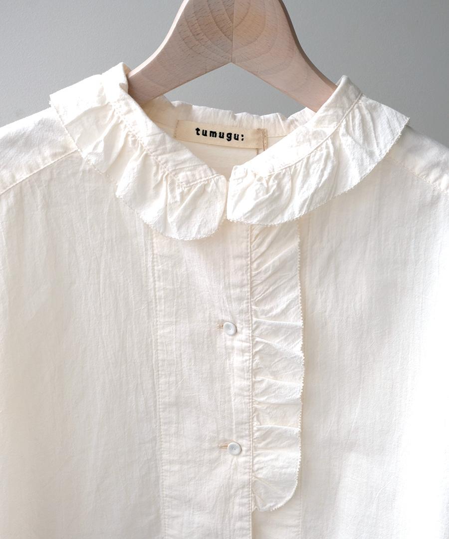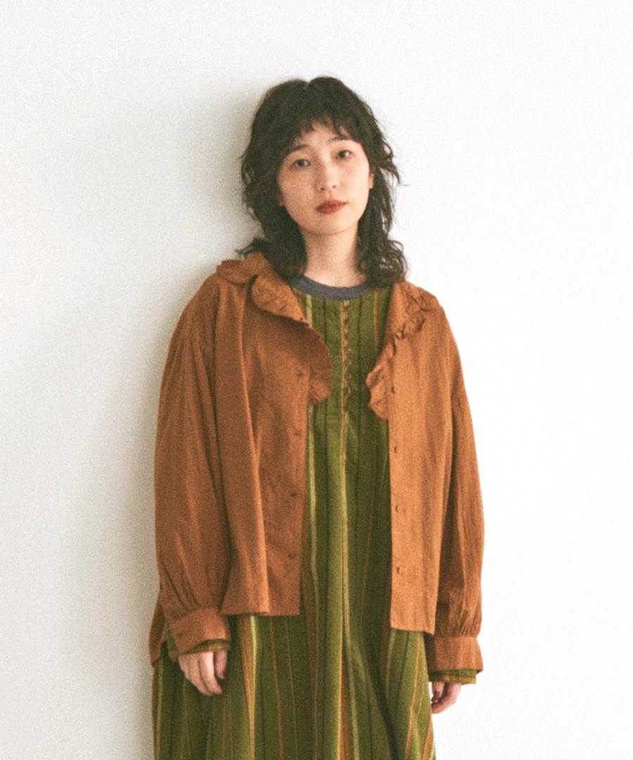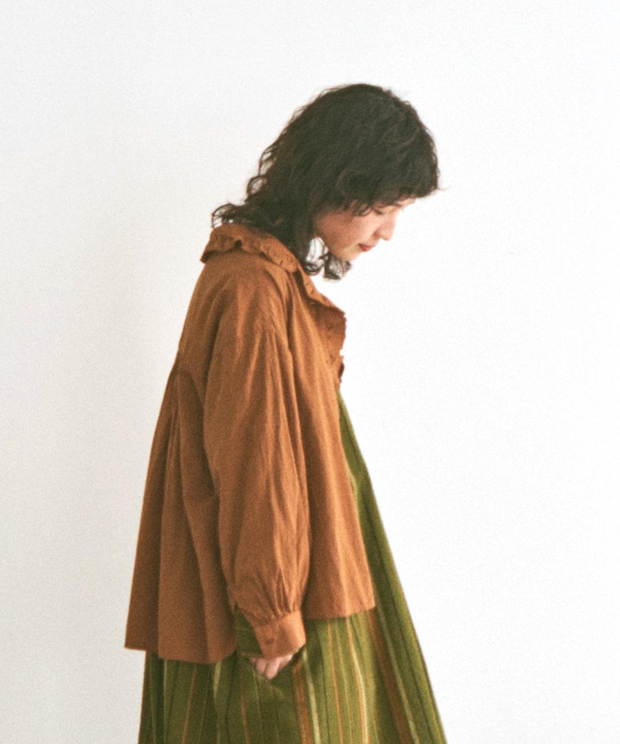 サロペットやジャンパースカートとのコーデもフリル襟がアクセントに。