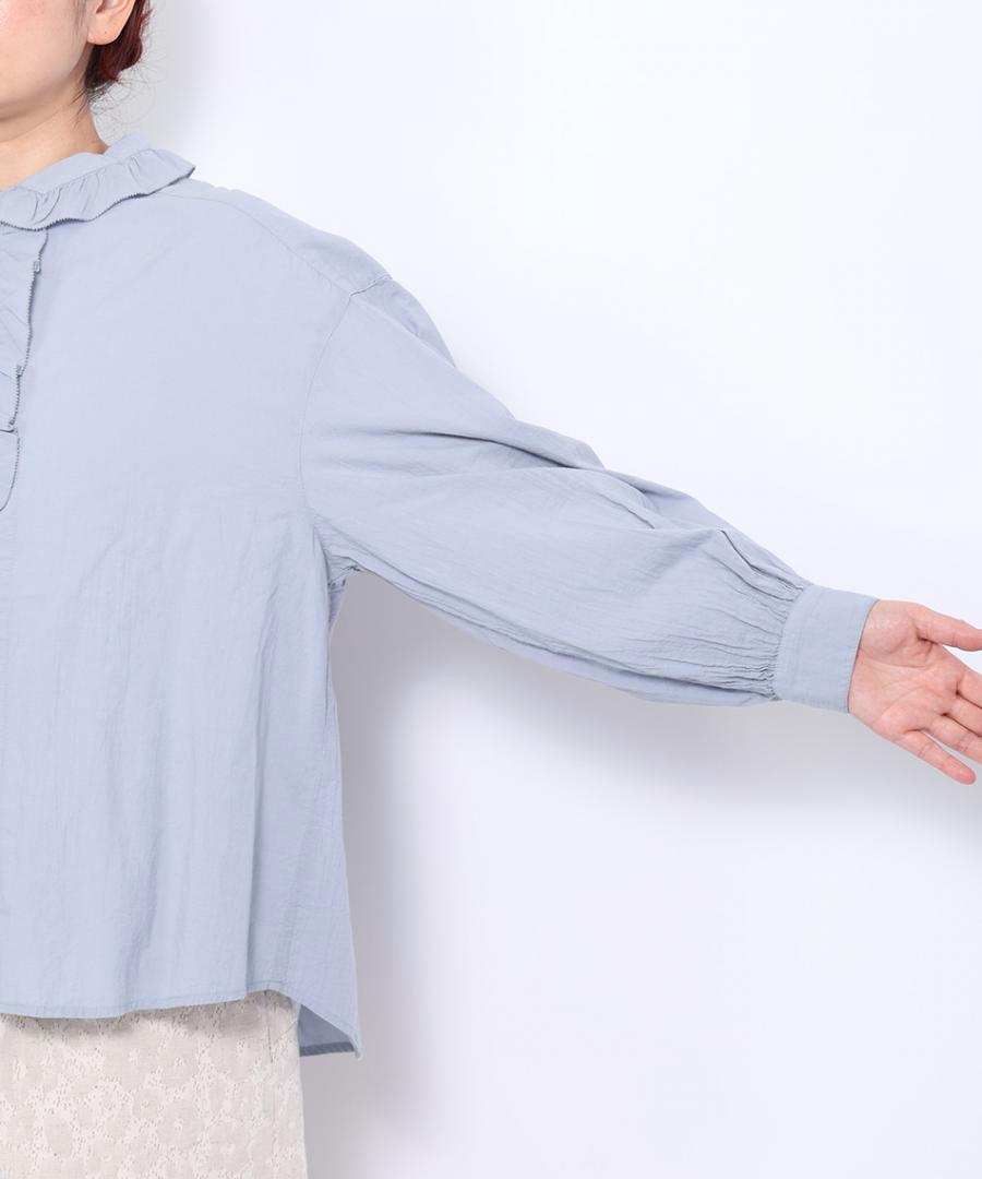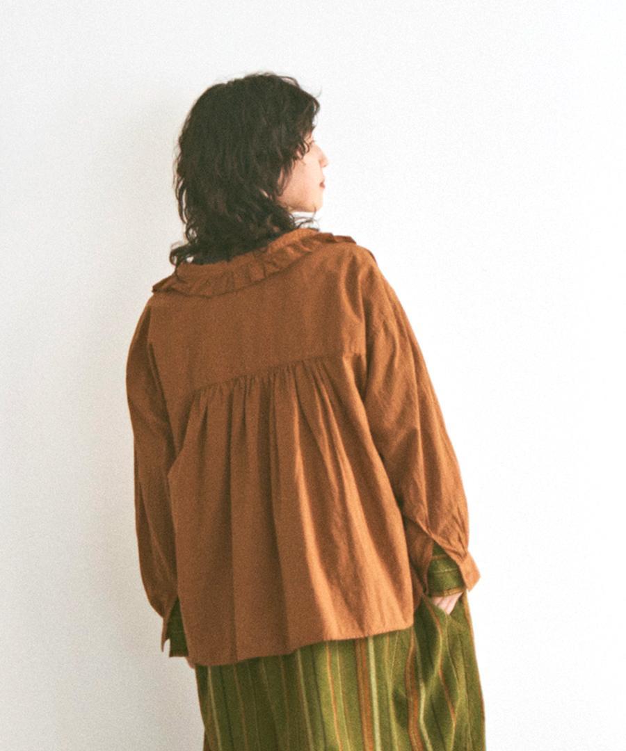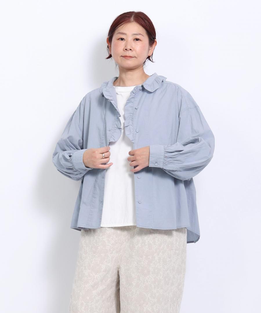 柔らかい薄手の生地で仕立てた、ふわふわと軽くて肌触り抜群ブラウス。