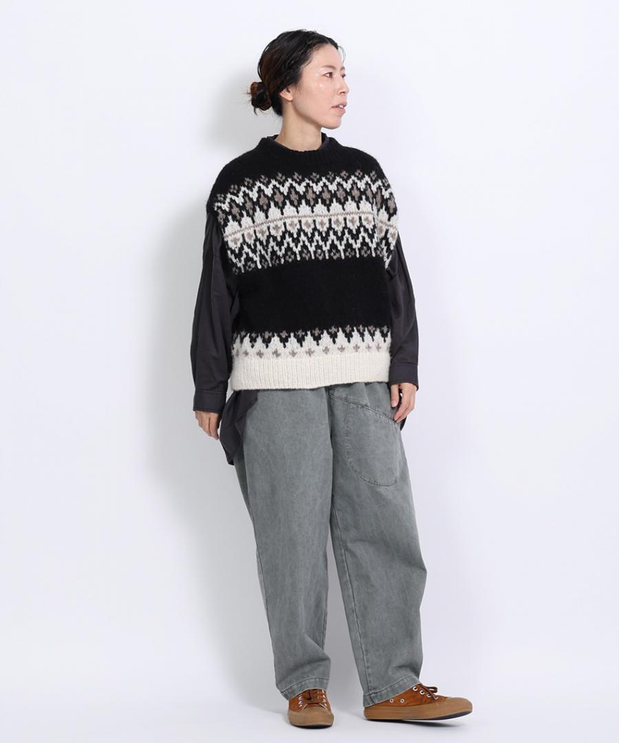 コットンリネンデニム ベスト付プルオーバー