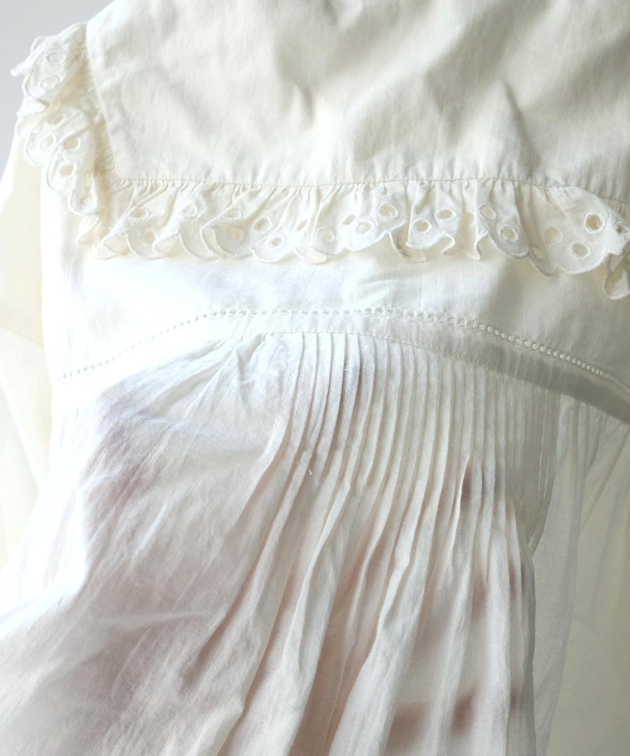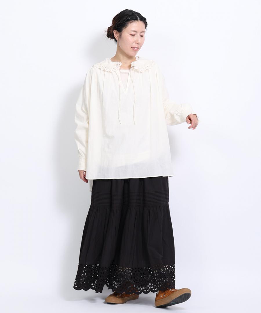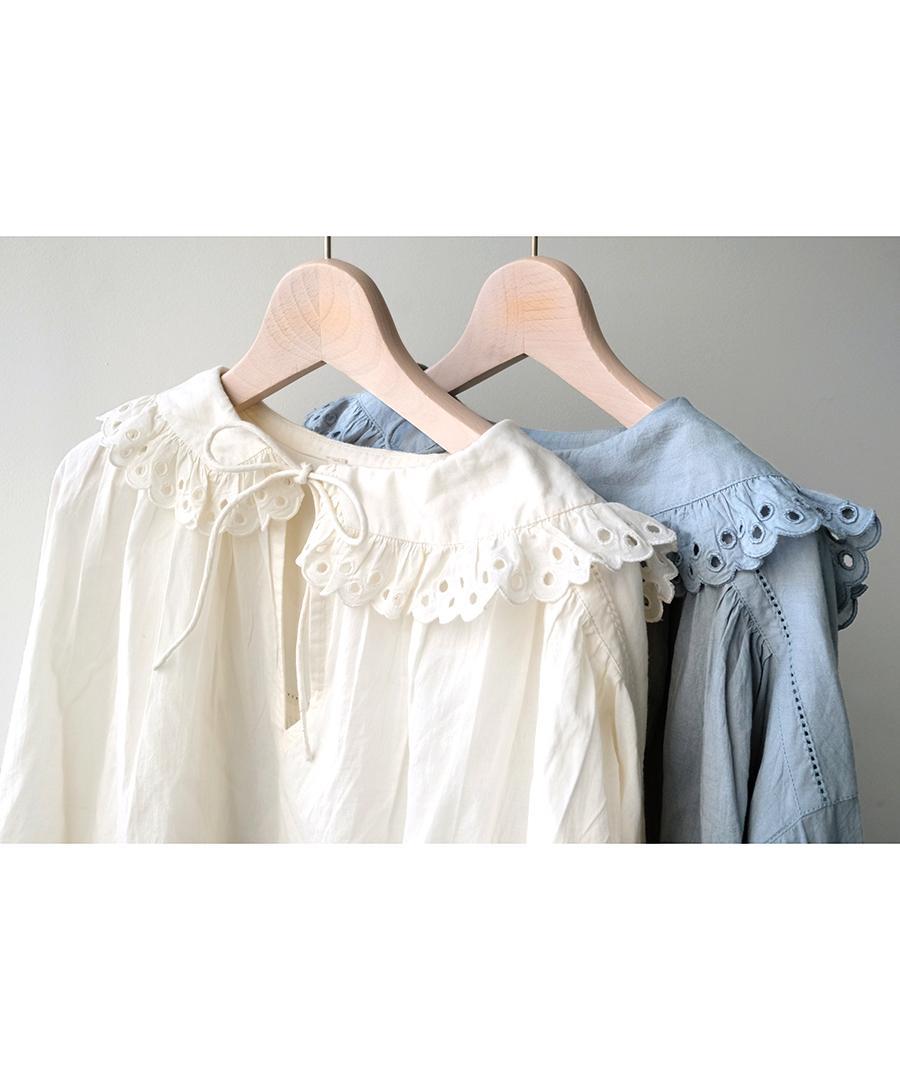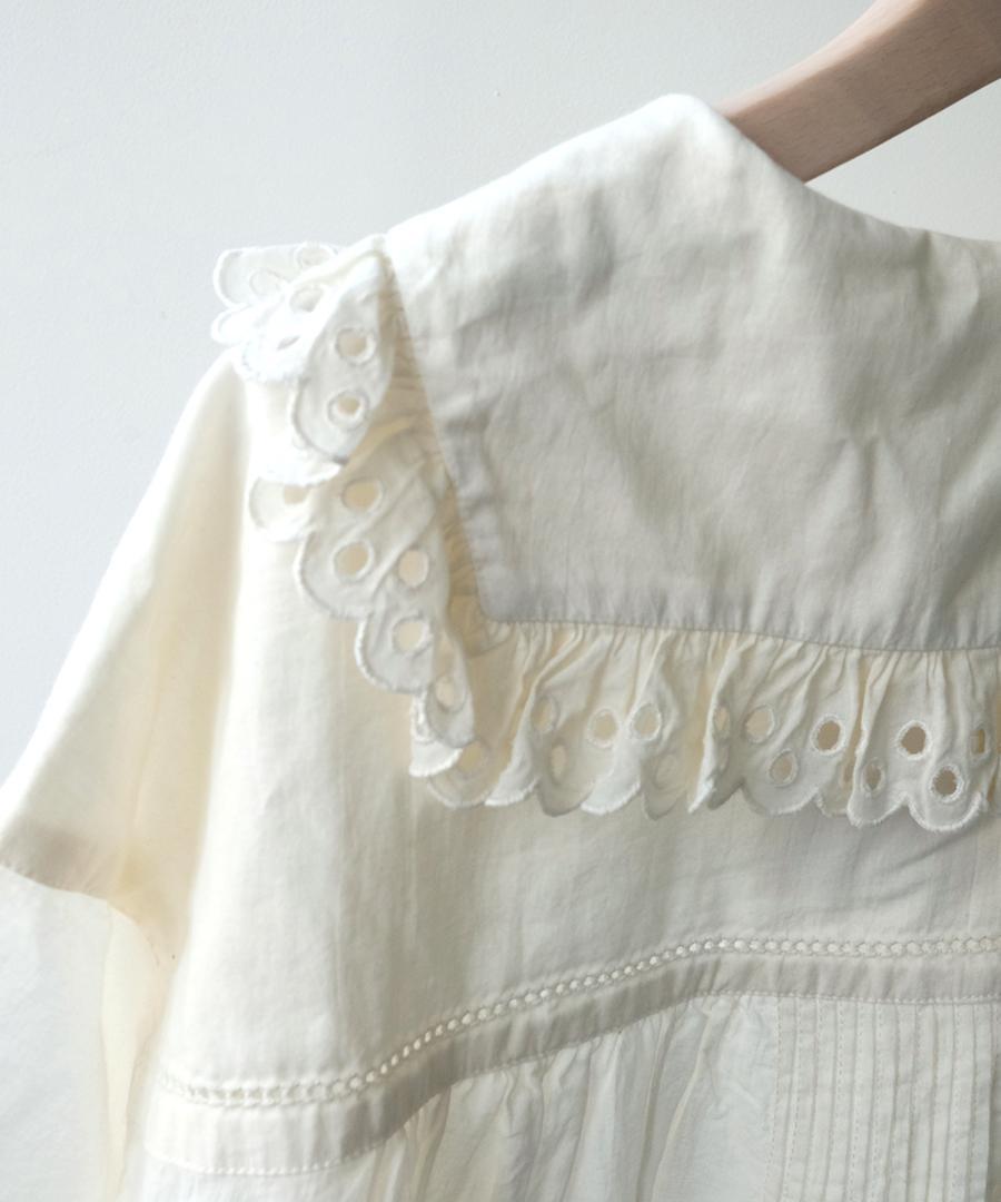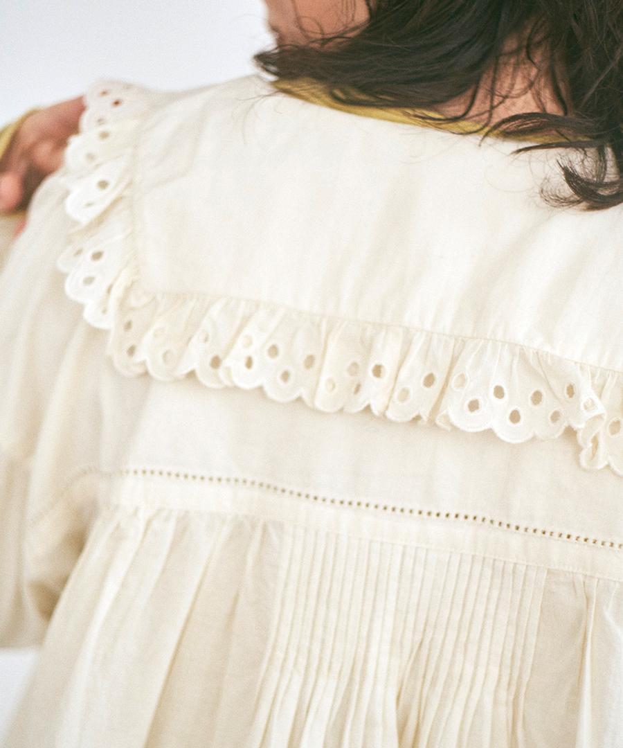 薄手のコットンキャンブリックにオリジナルのカットワーク刺繍を施したプルオーバー。