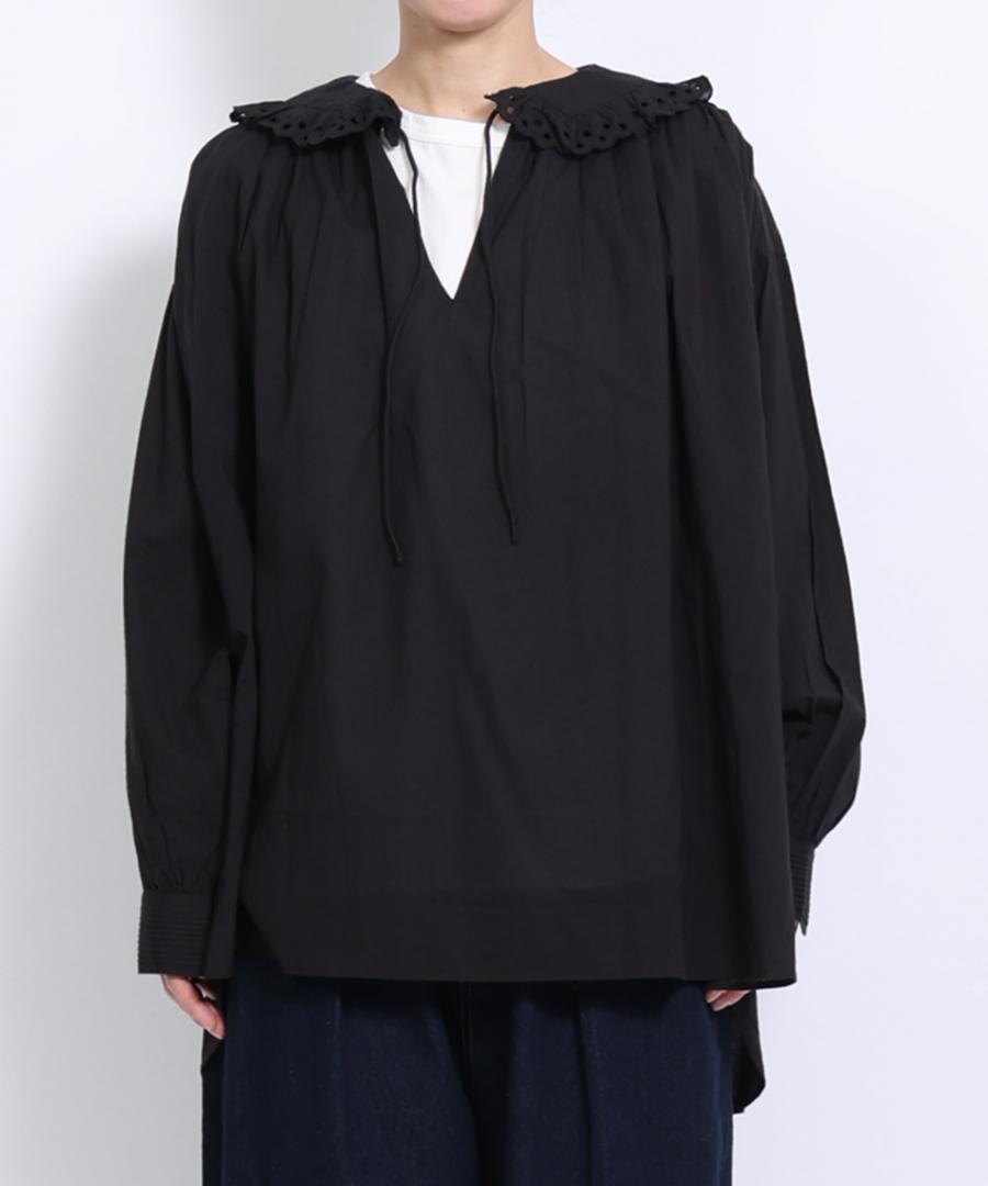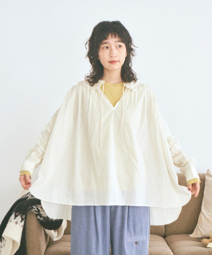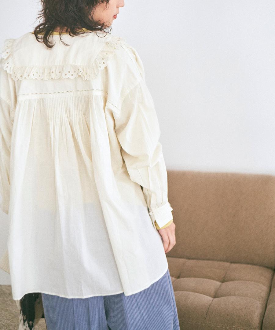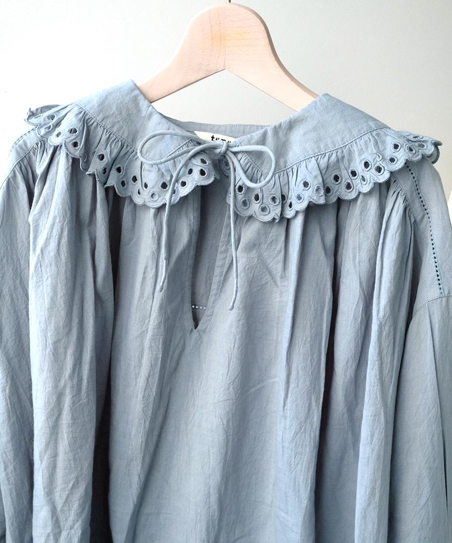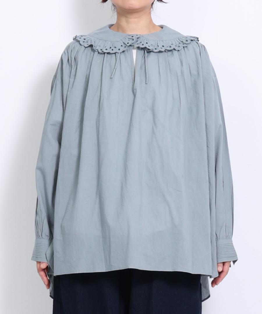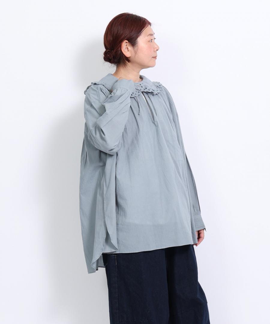 薄手のコットンキャンブリックにオリジナルのカットワーク刺繍を施したプルオーバー。