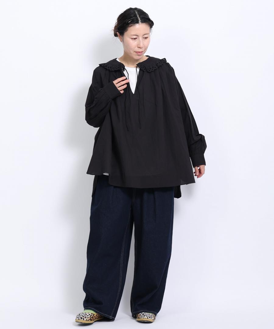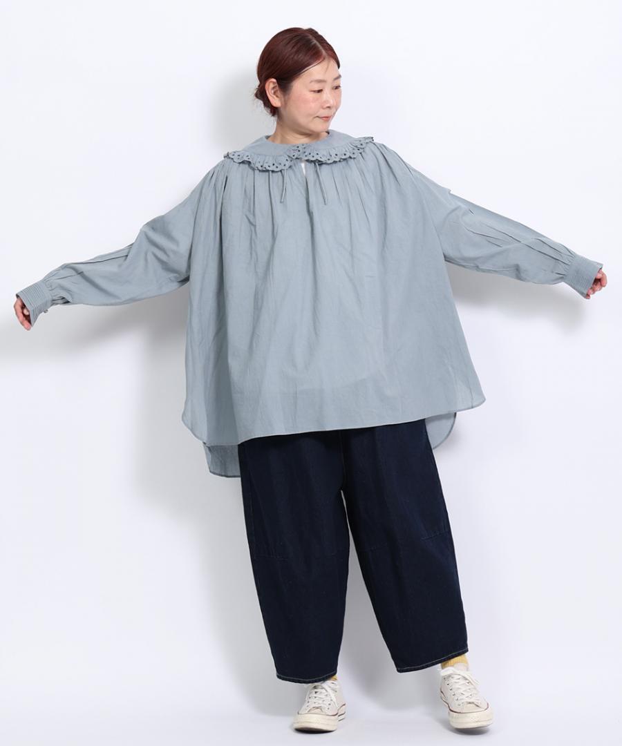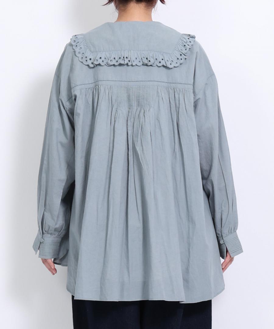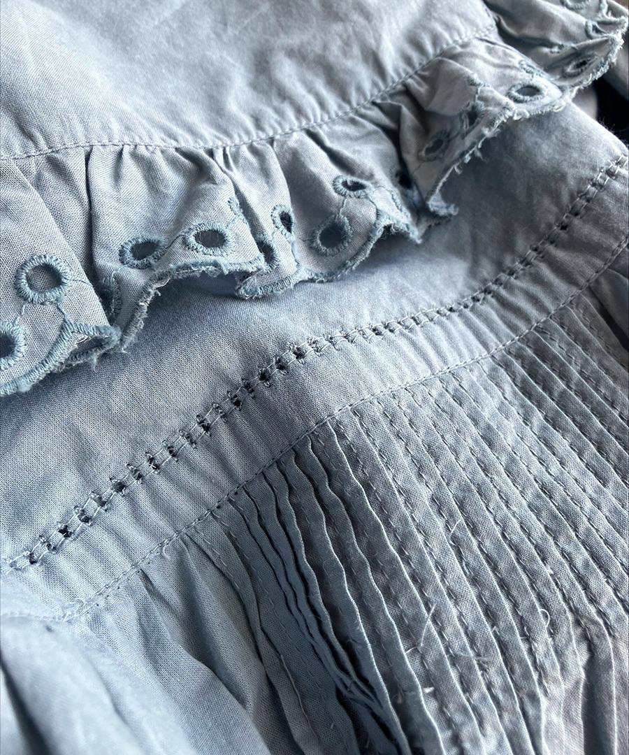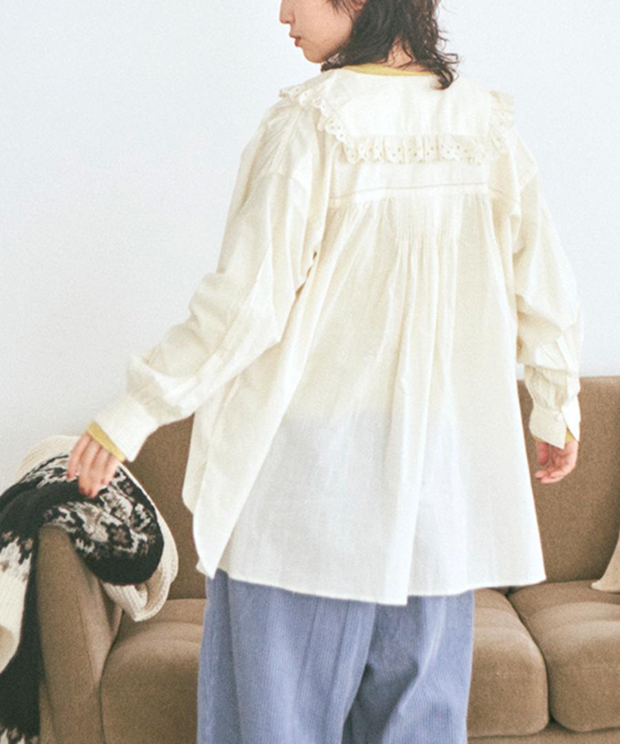 薄手のコットンキャンブリックにオリジナルのカットワーク刺繍を施したプルオーバー。