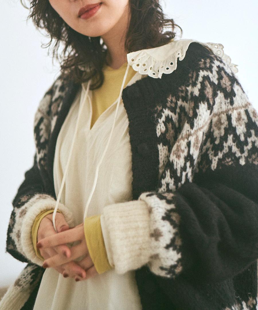 襟元の紐はそのまま垂らしても、リボン結びにしても違った表情を楽しめますよ。
