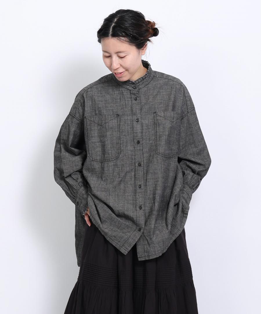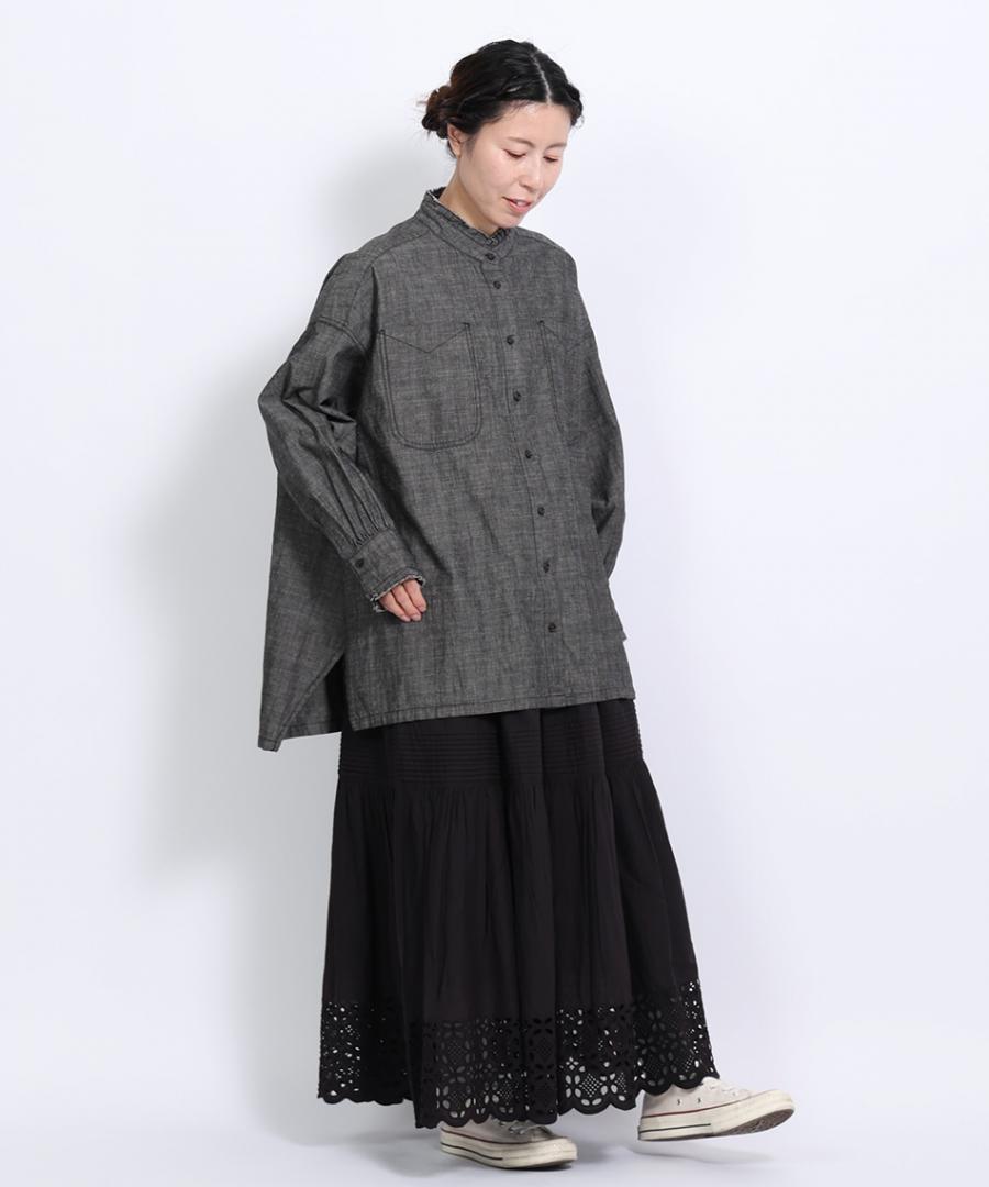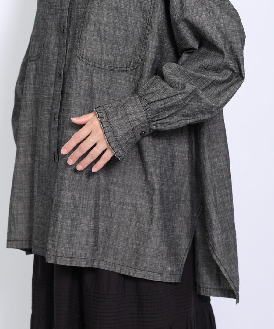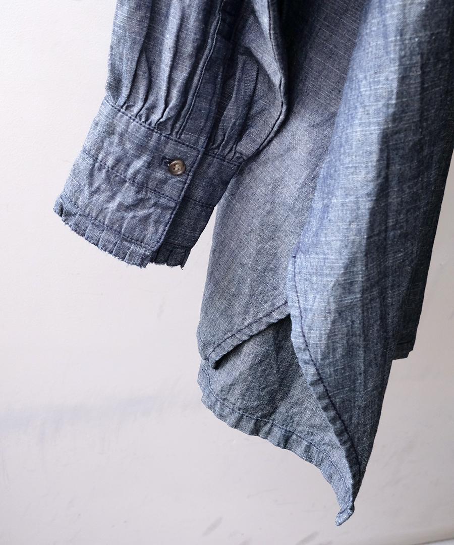 5ozコットンリネンスラブデニム ロングシャツ