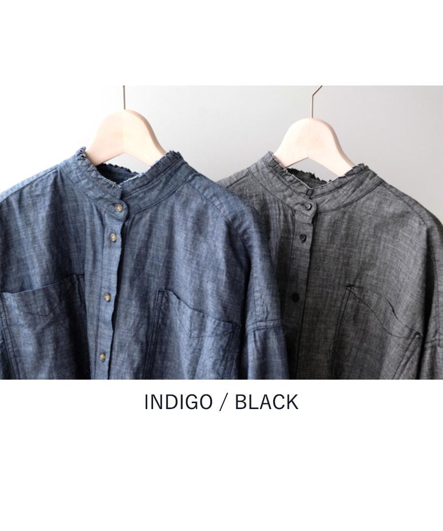 5ozコットンリネンスラブデニム素材で仕立てたロングシャツ。