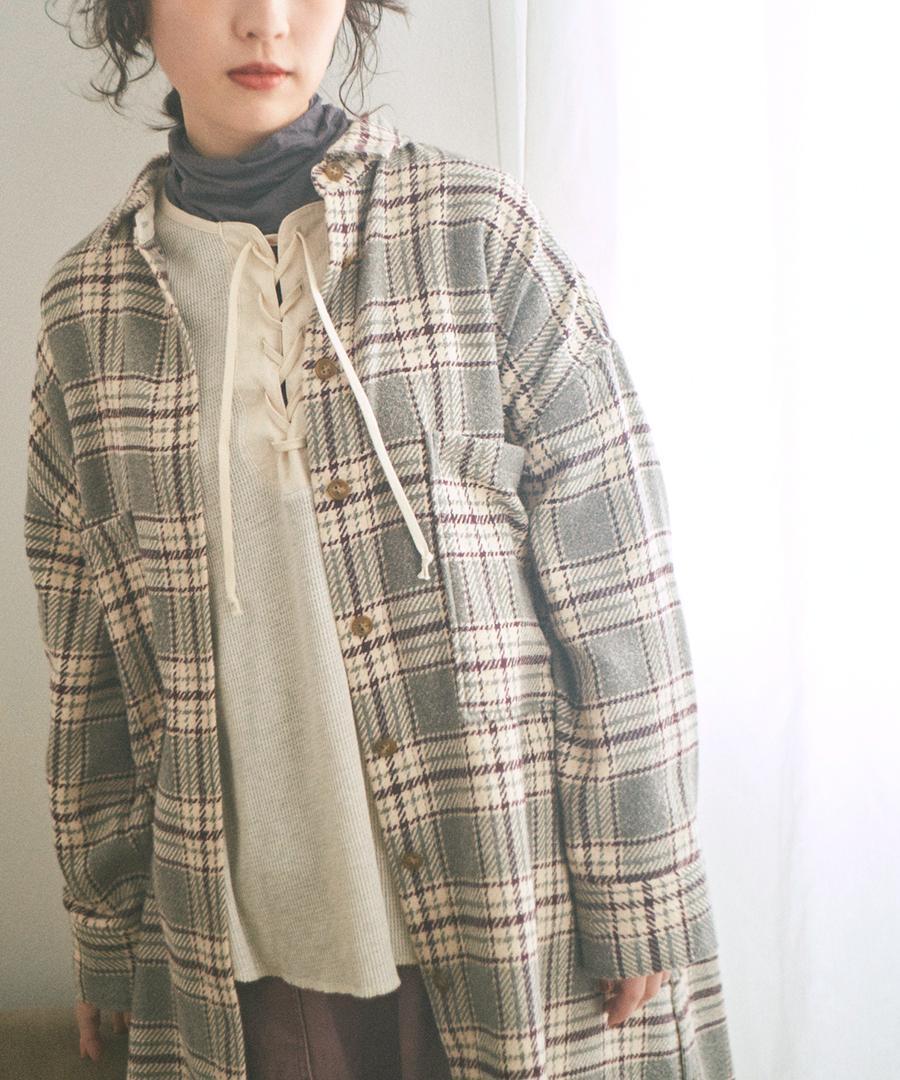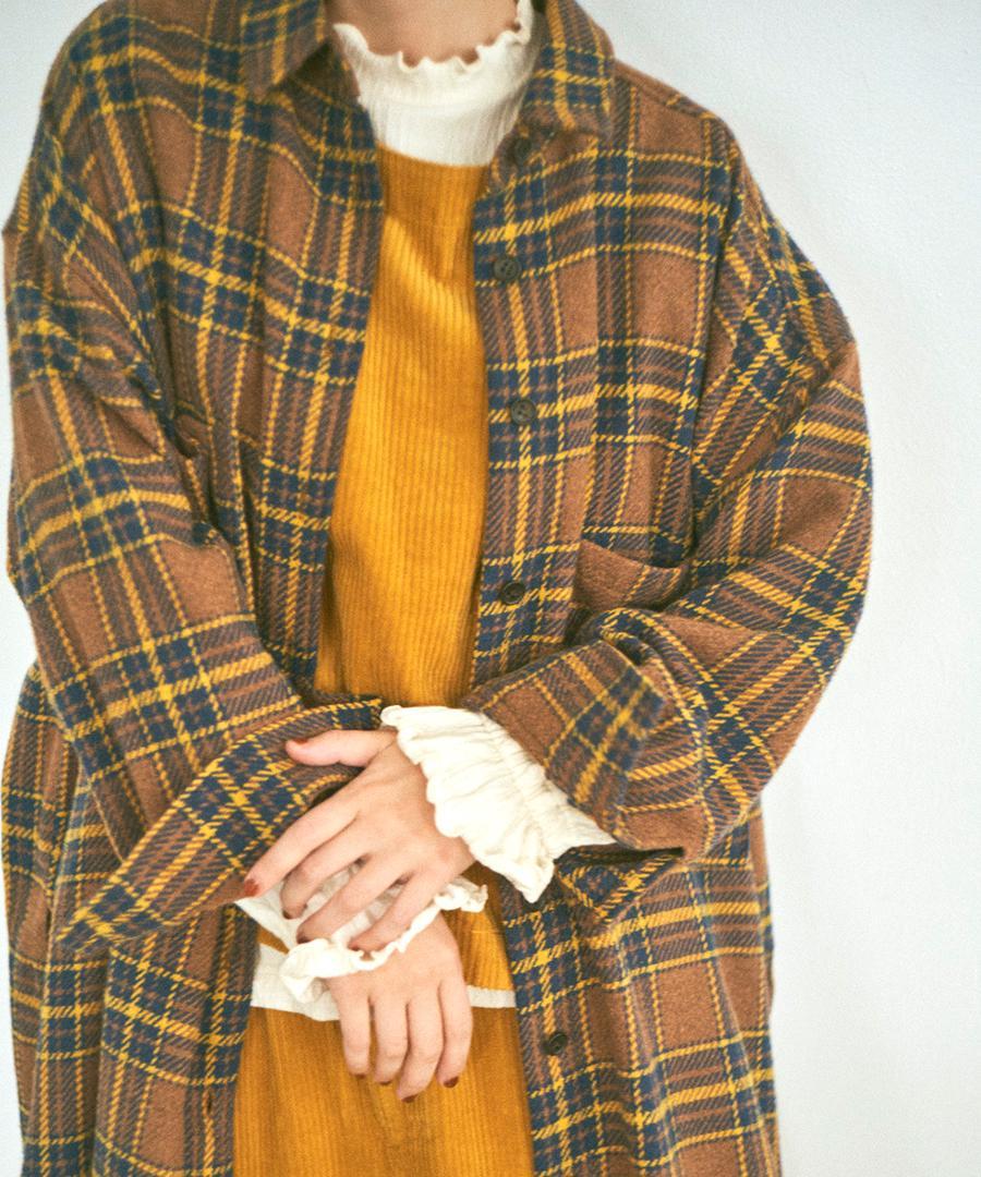 トレンド感たっぷりの大柄のタータンチェック生地が可愛いシャツジャケット。