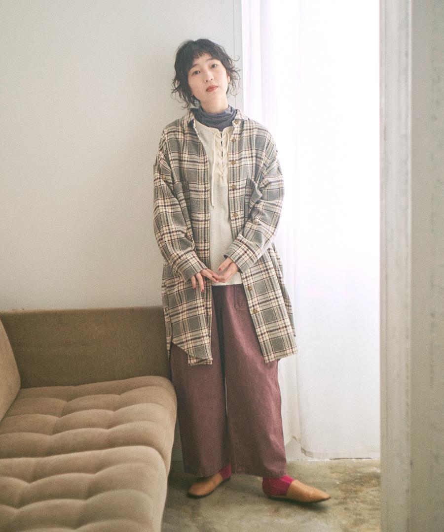 お手入れが簡単なウールライクコットンポリエステル生地で仕立て、日常使いのしやすさにこだわりました。
