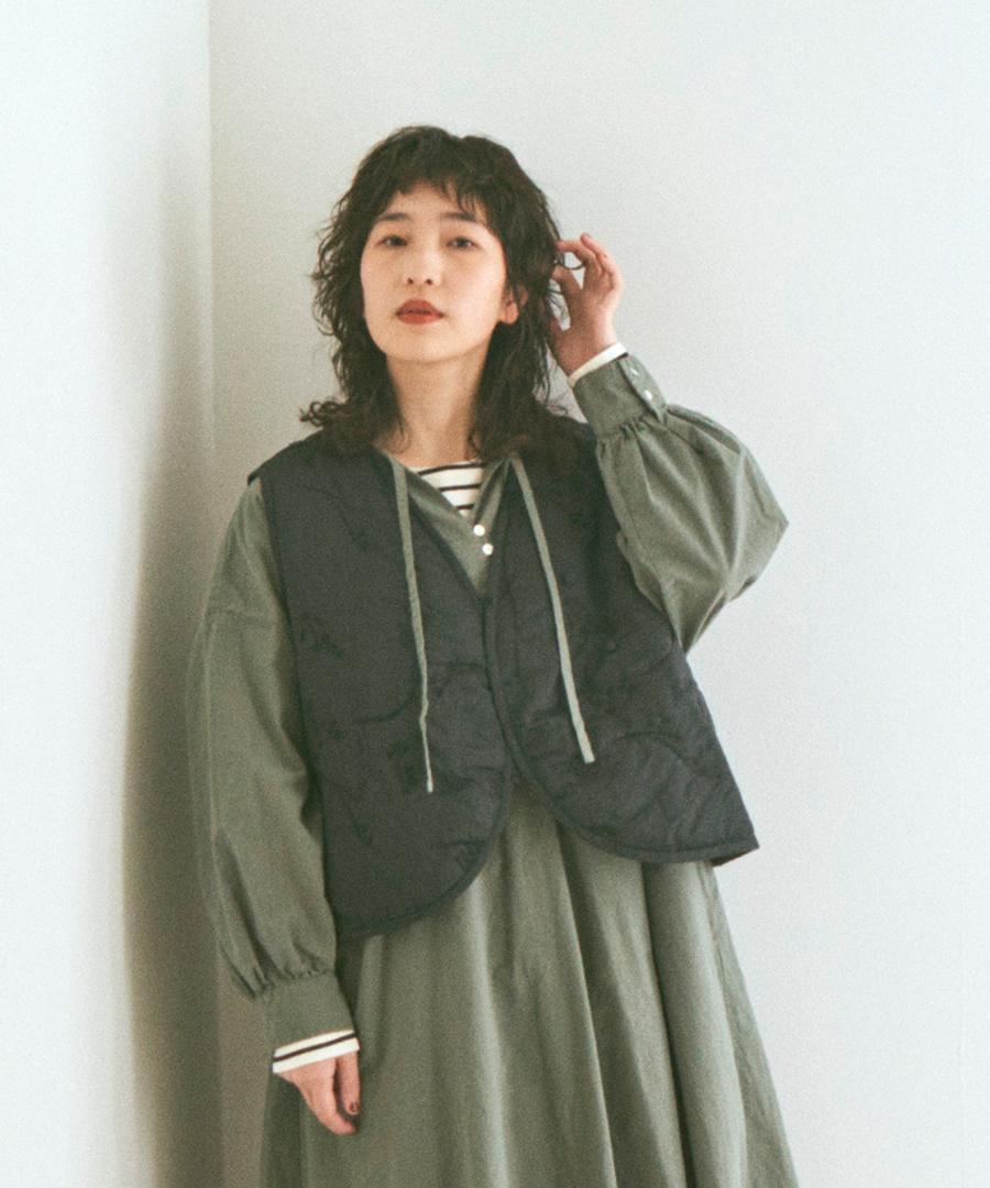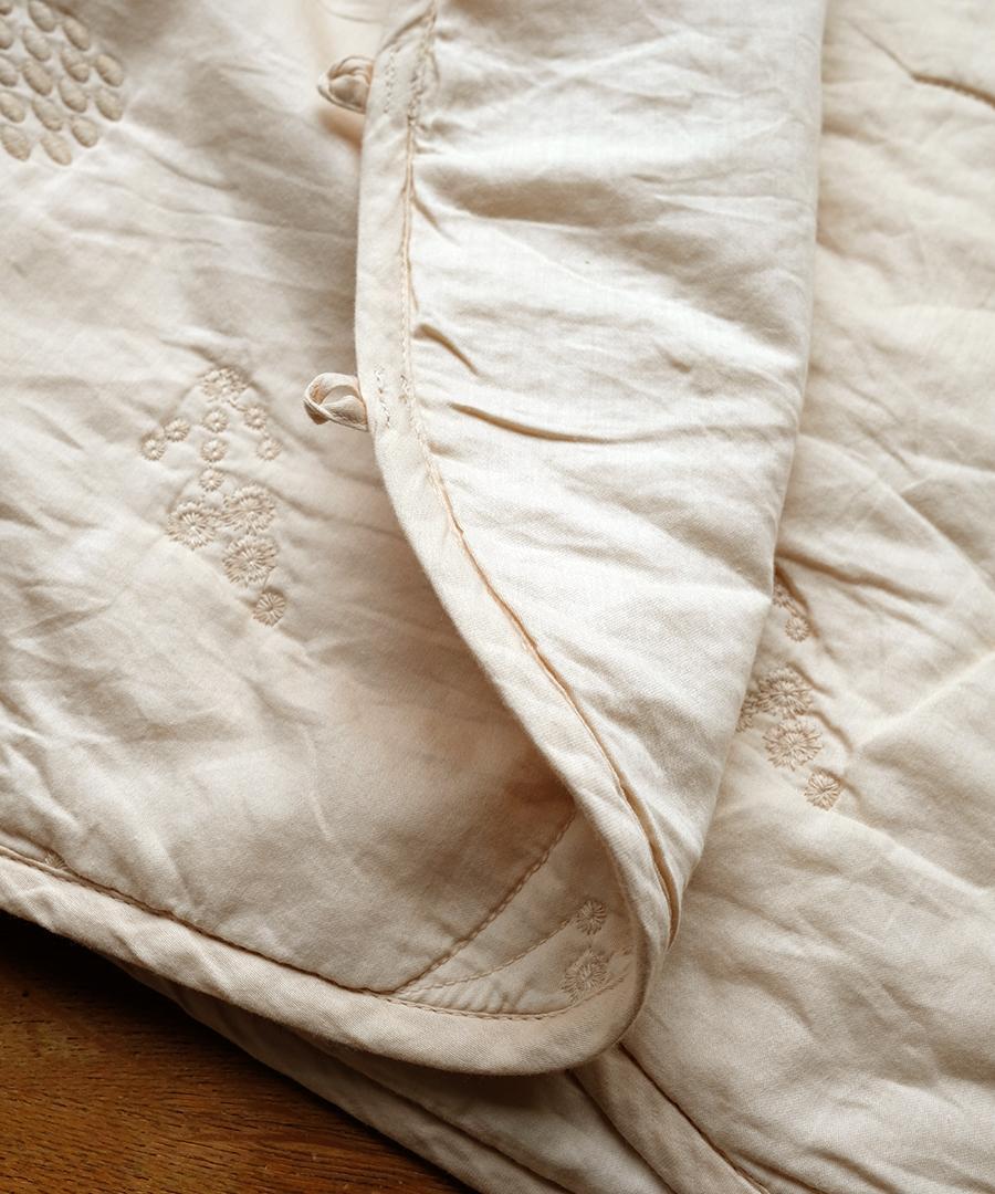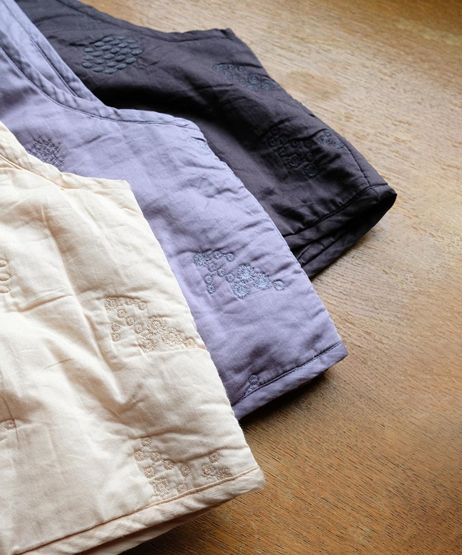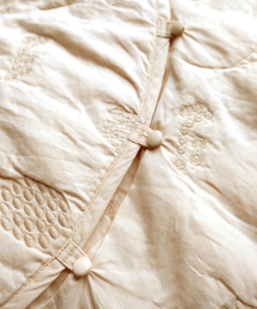 薄手の中綿を入れ、キルティング加工を施すことでふんわりと空気の含んだ仕上がりです。
