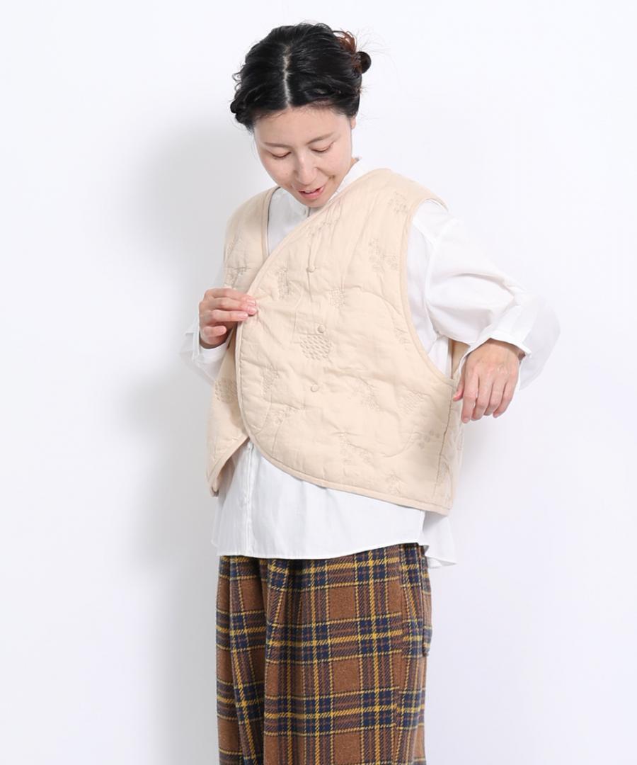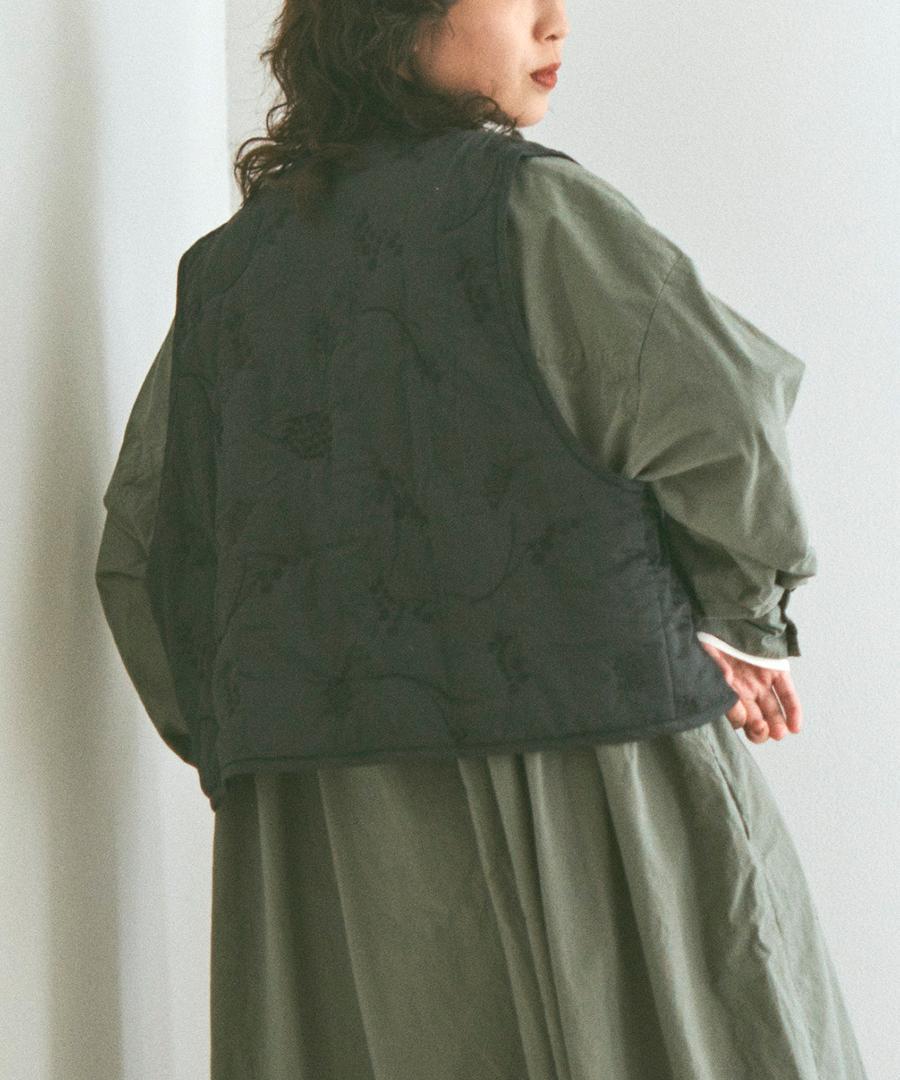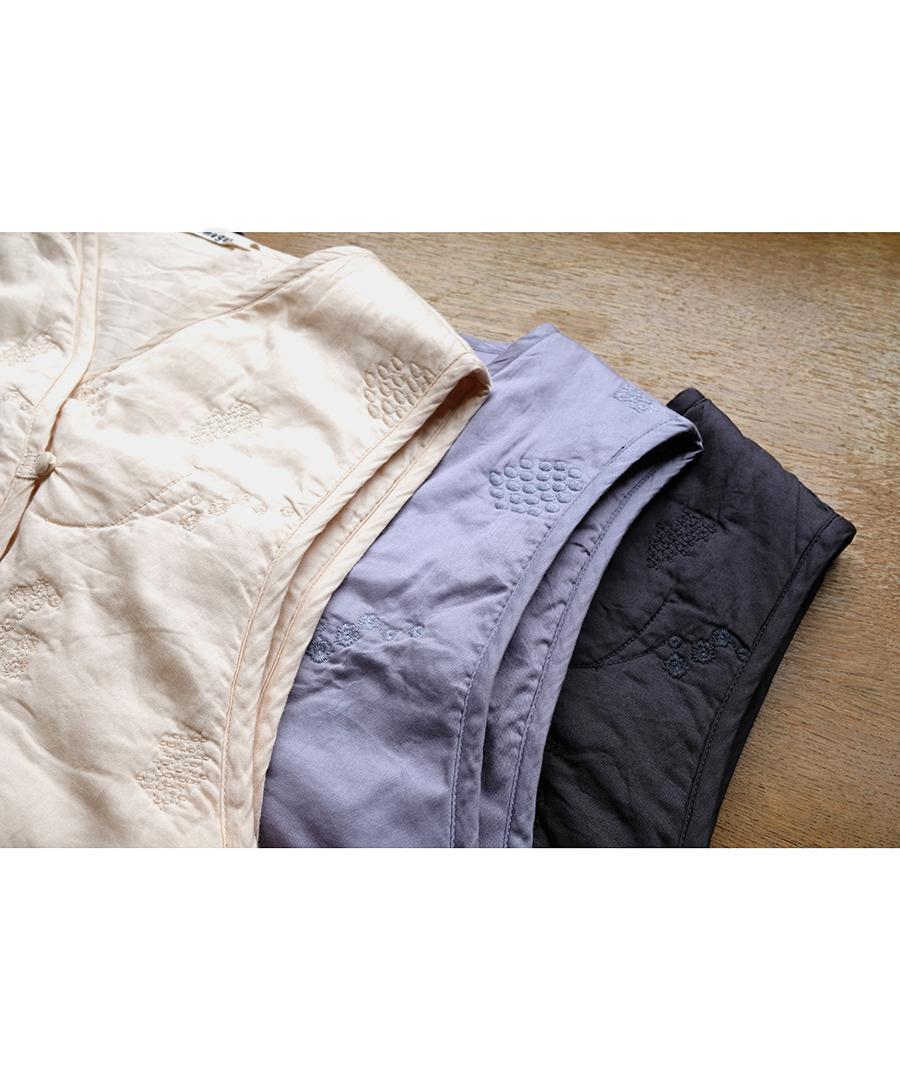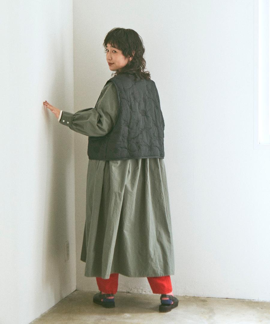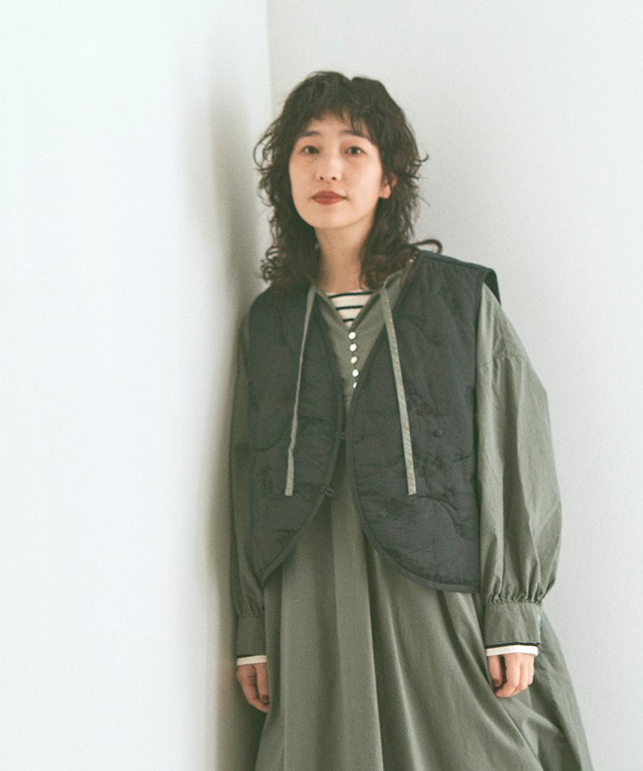 薄手の中綿を入れ、キルティング加工を施すことでふんわりと空気の含んだ仕上がりです。