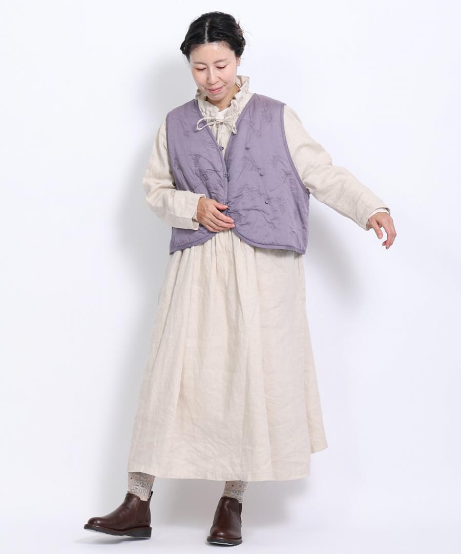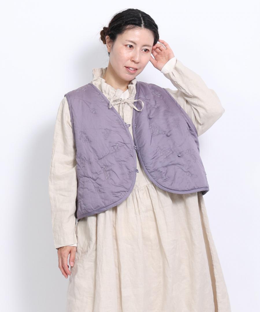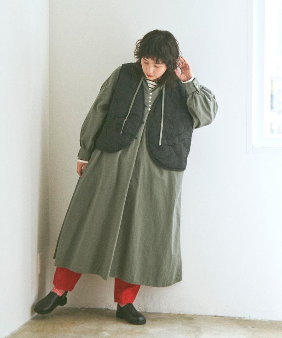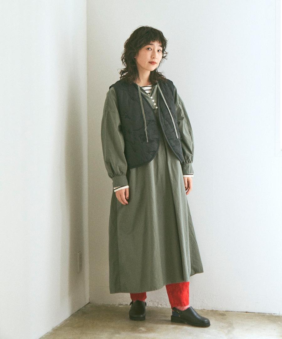 薄手の中綿を入れ、キルティング加工を施すことでふんわりと空気の含んだ仕上がりです。