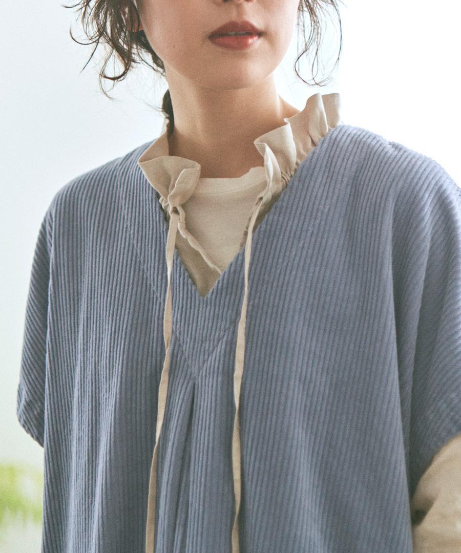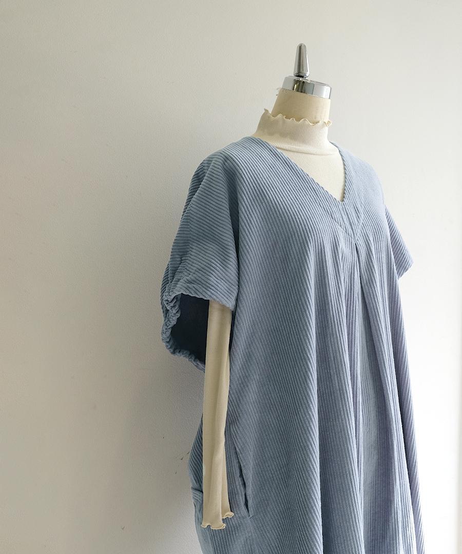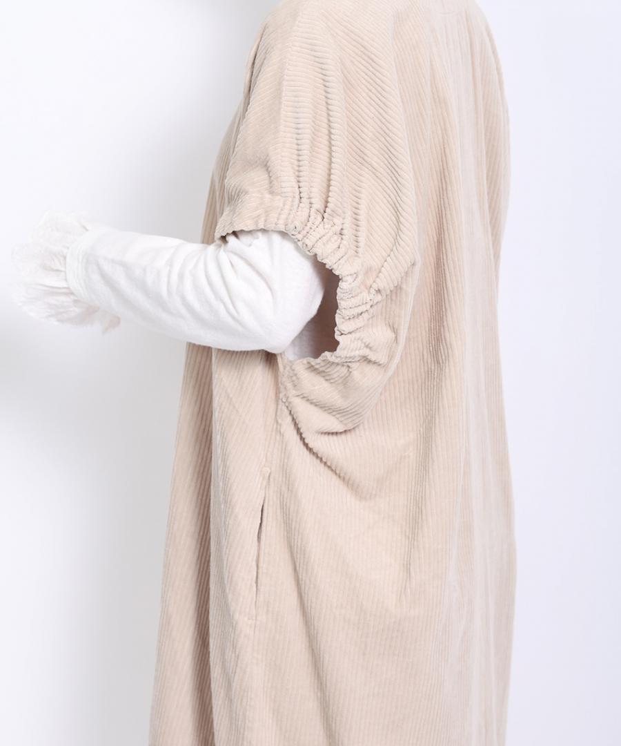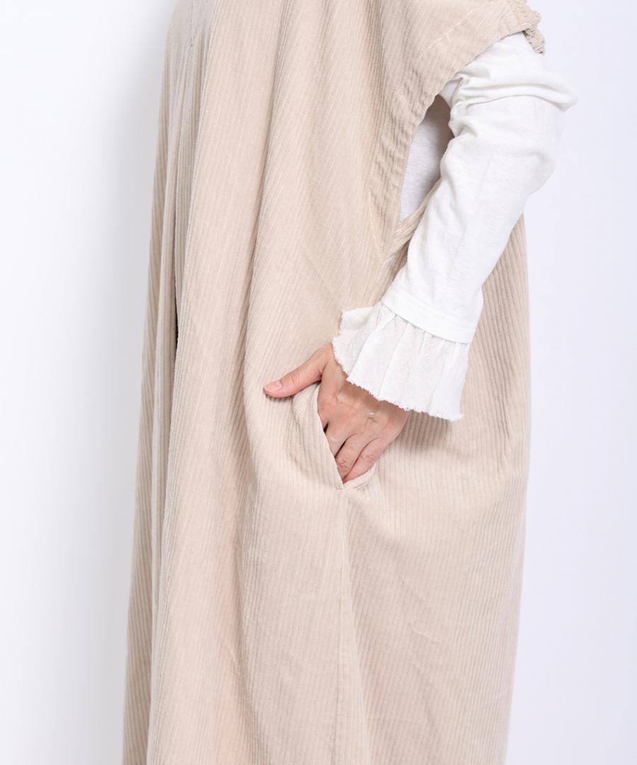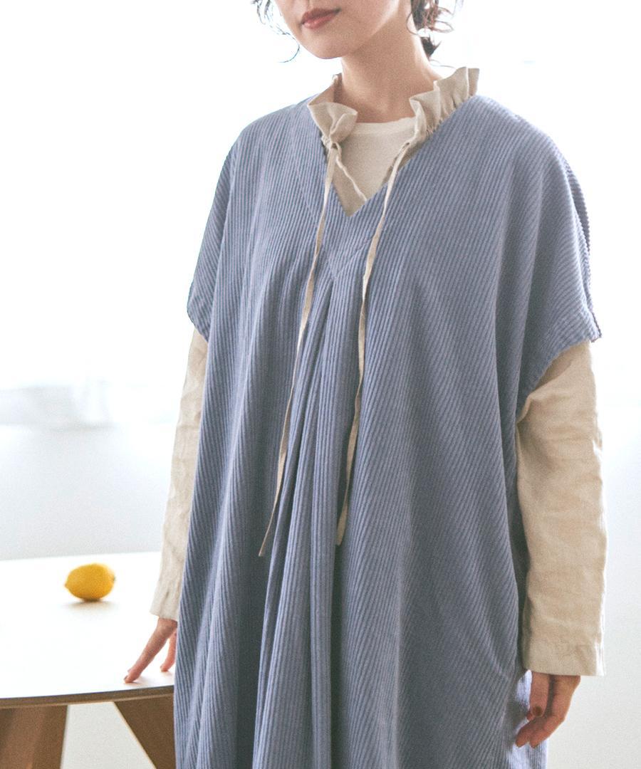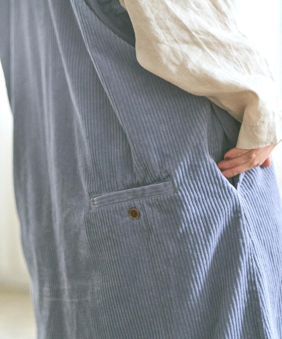 柔らかな風合いで肌に心地よい太畝コーデュロイ素材で仕立てたワンピース。