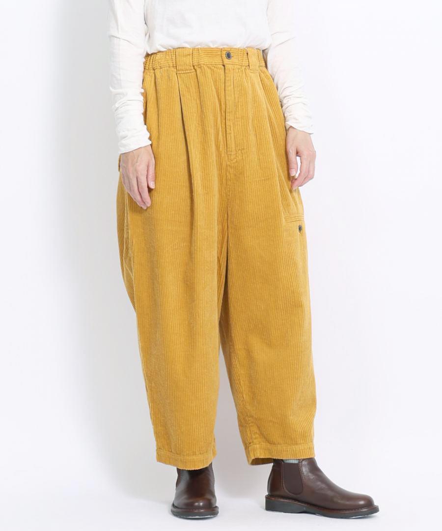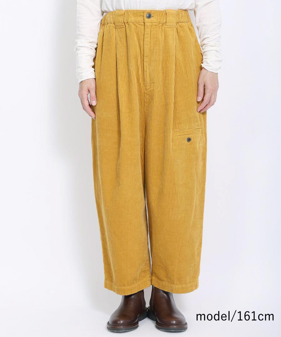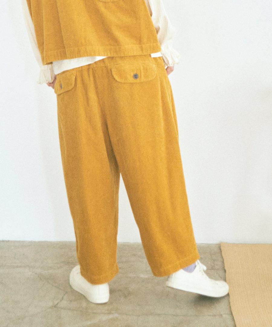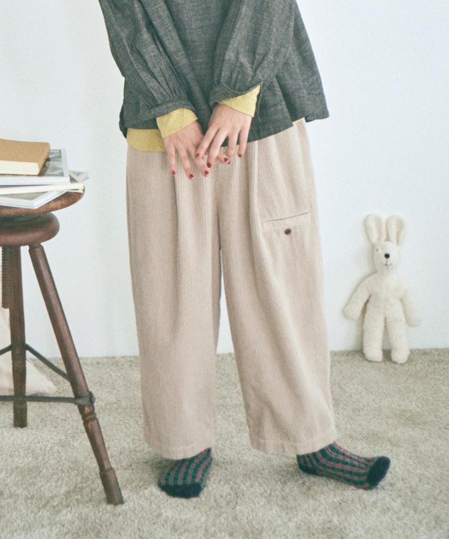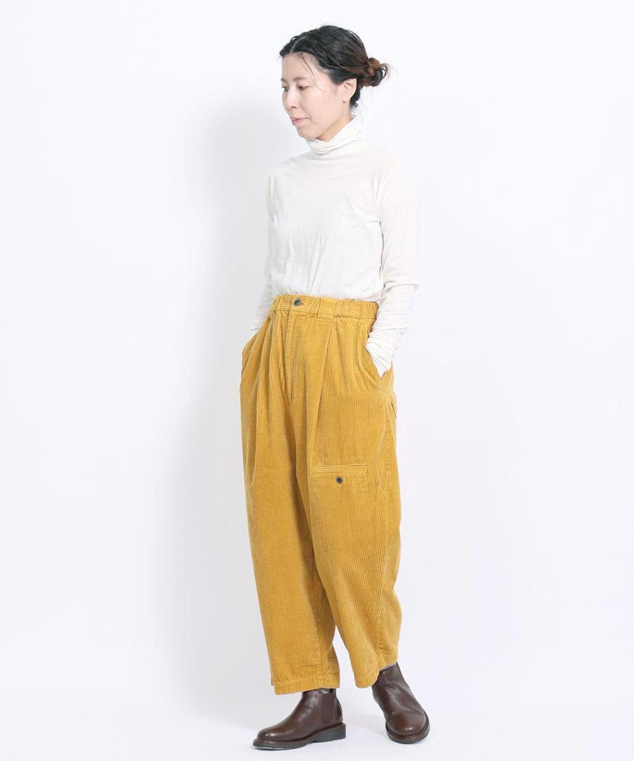 柔らかな風合いで肌に心地よい太畝コーデュロイ素材で仕立てた9分丈パンツ。