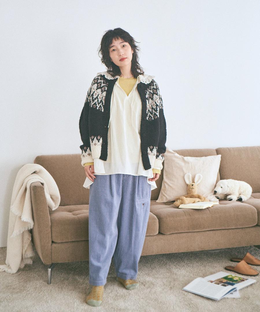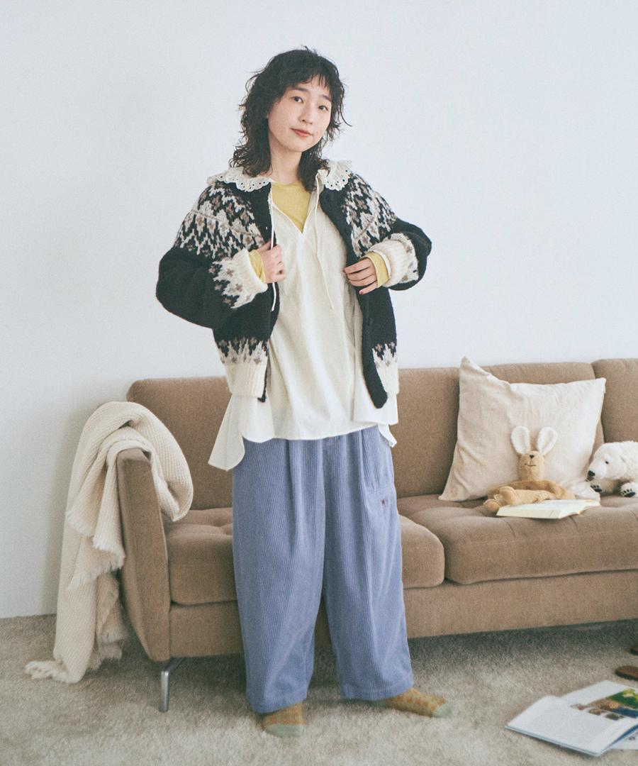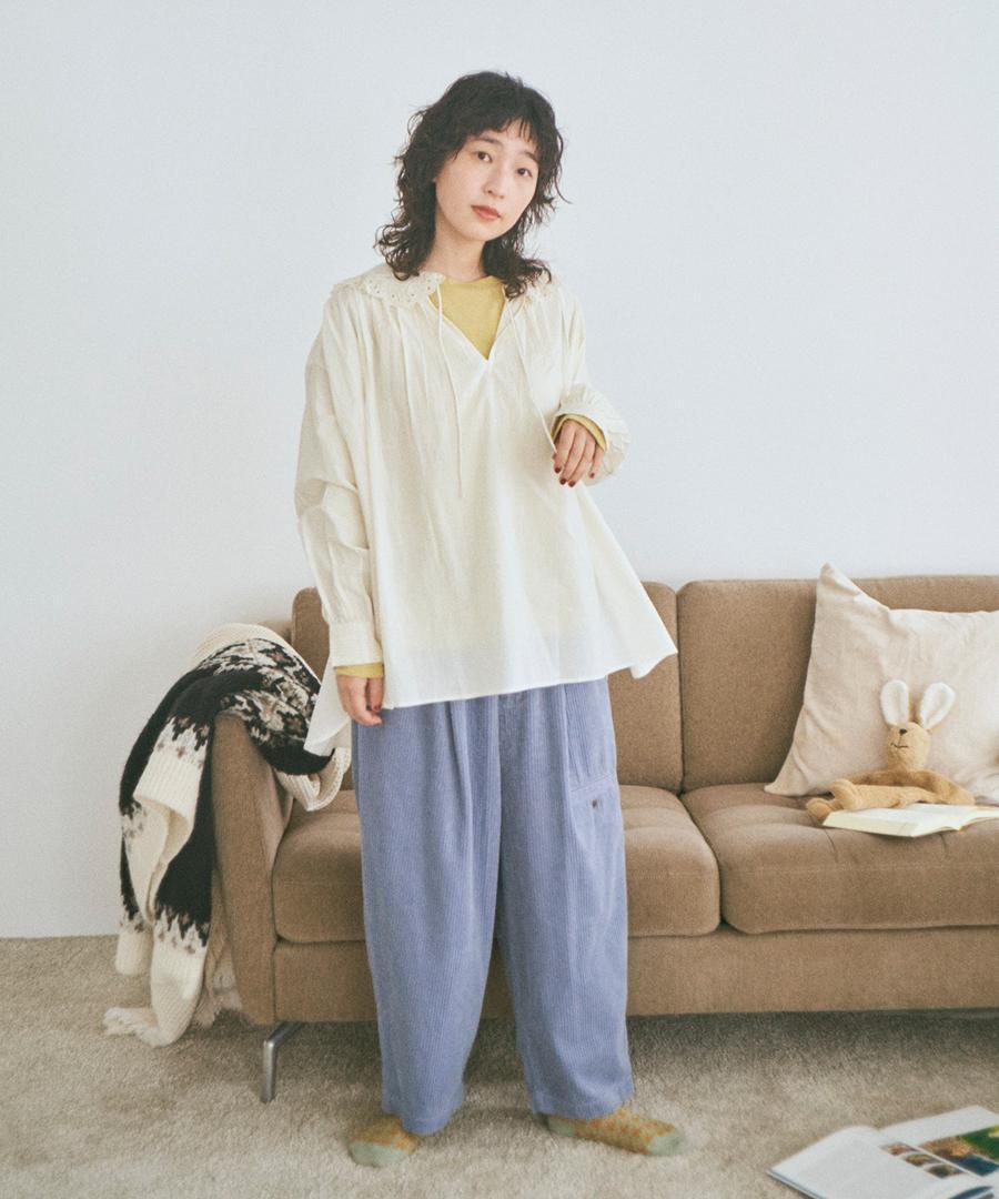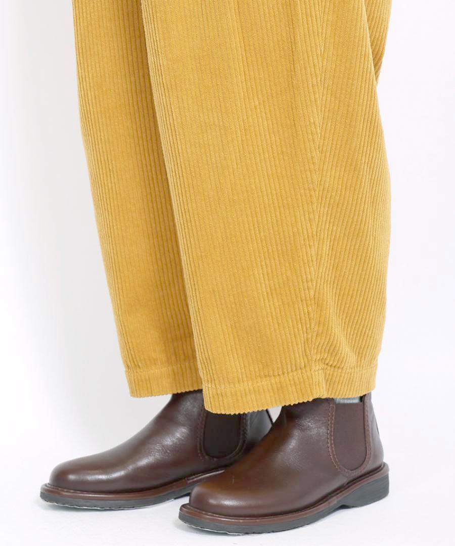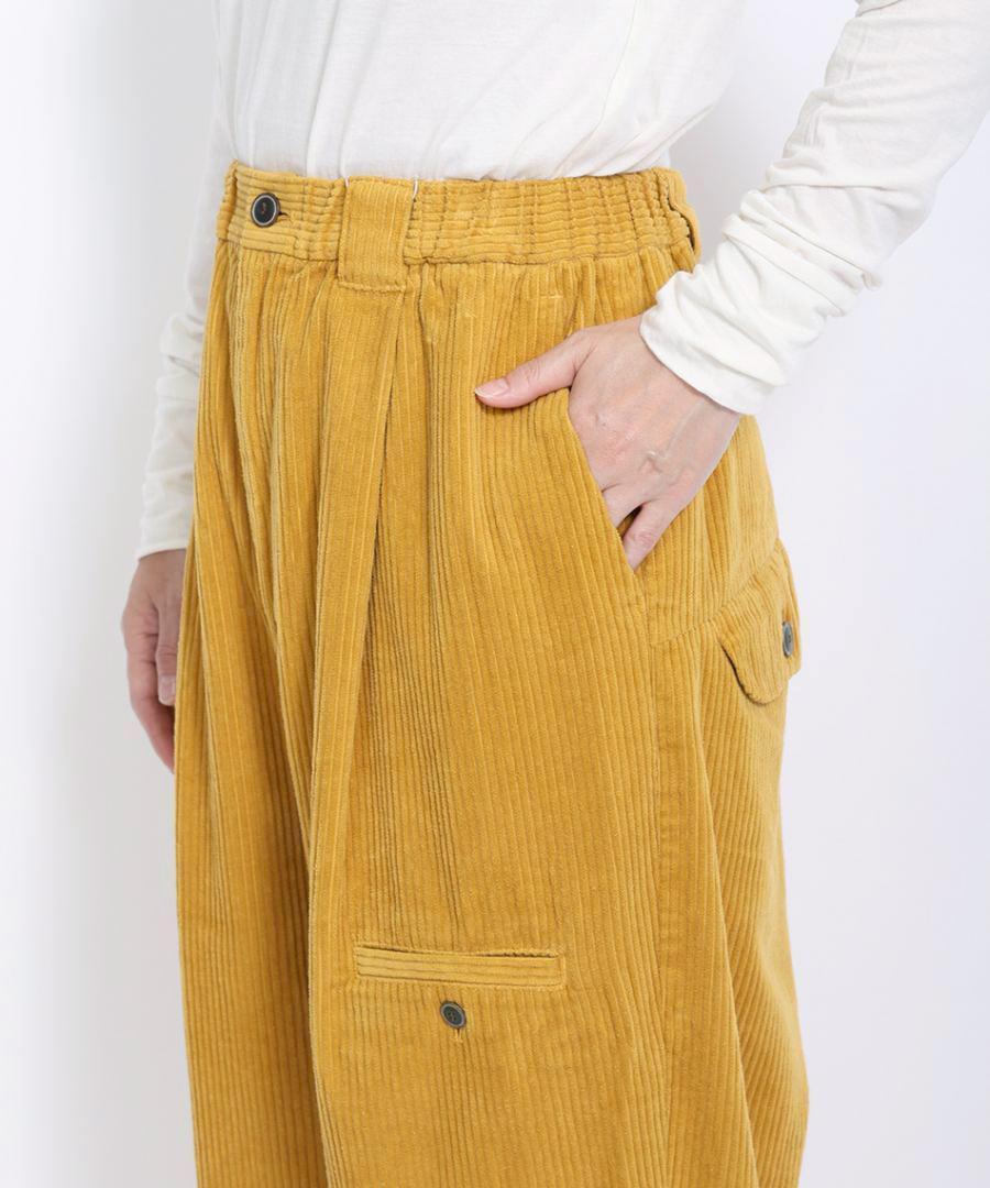 柔らかな風合いで肌に心地よい太畝コーデュロイ素材で仕立てた9分丈パンツ。