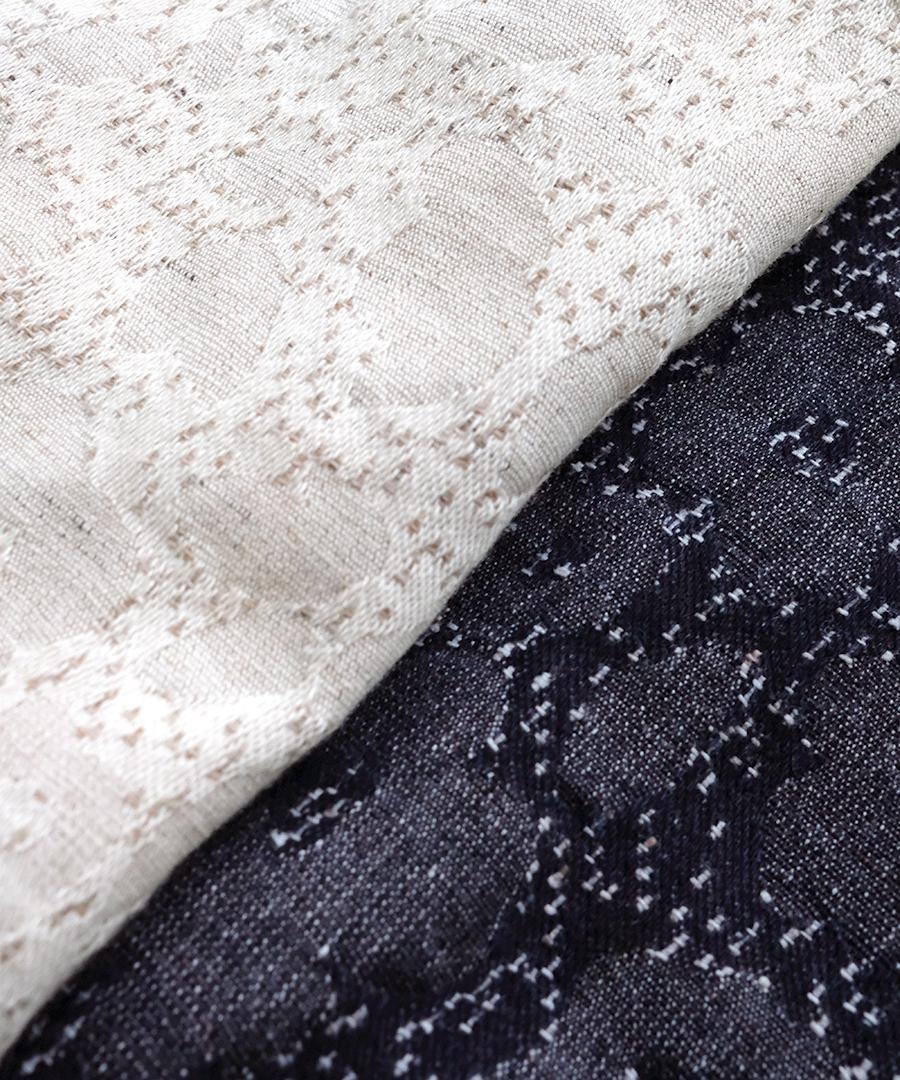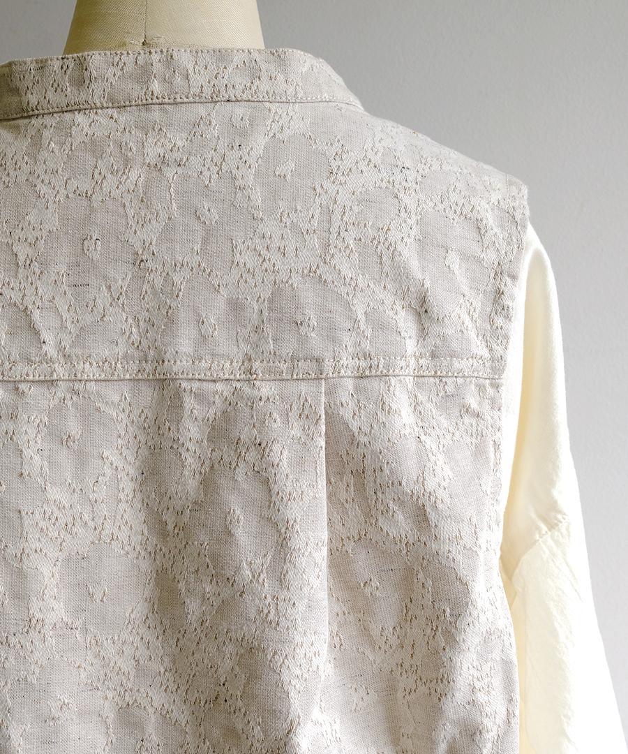 ジャズネップを使用することで、クラシカルな花柄にカジュアルなエッセンスをプラスし、デイリーコーディネートにも取り入れやすい一着に仕上げました。