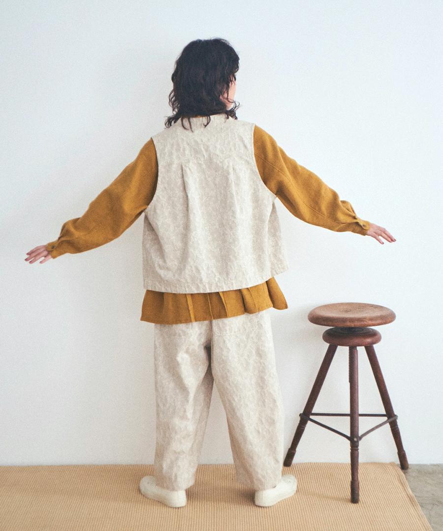 ドビー織りと花柄が特徴のオリジナルジャガード生地で仕立てたベスト。