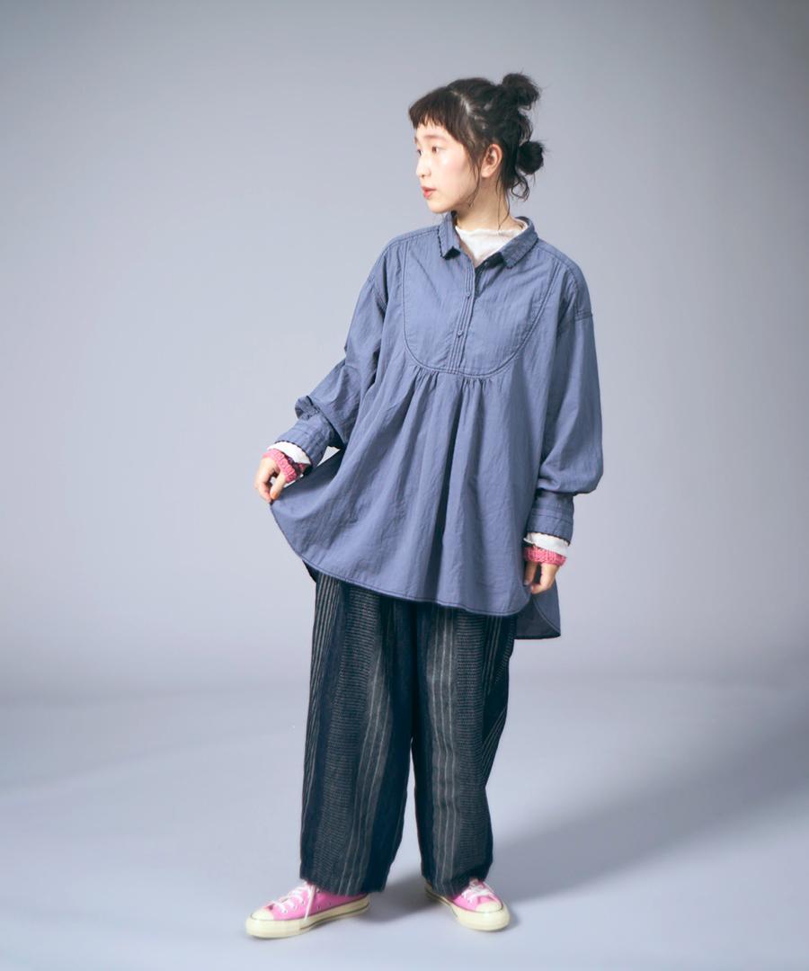 シーズンレスで活躍するコットン生地でとても心地よい肌触りです。