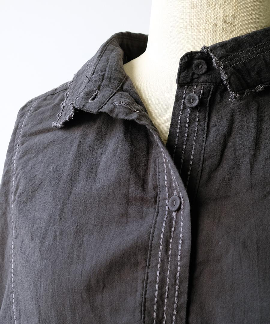 製品染め加工を施すことで、生地に独特の風合いと深みのある色合いで味わい深い印象に。