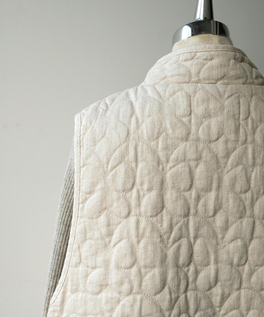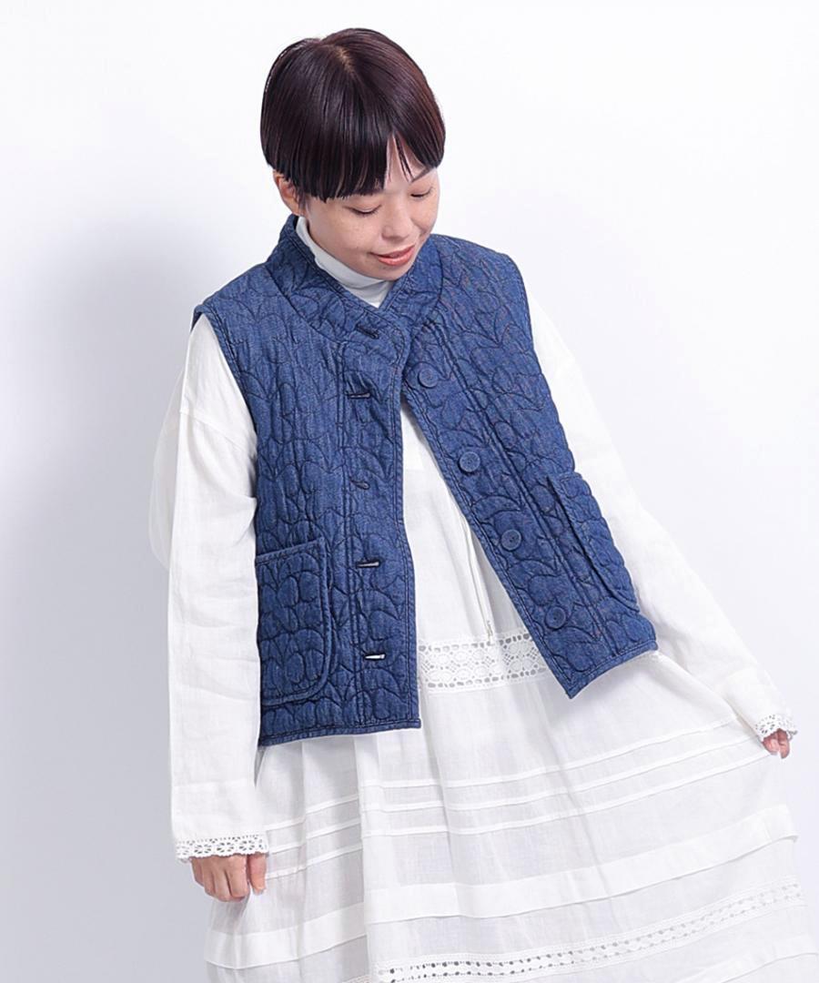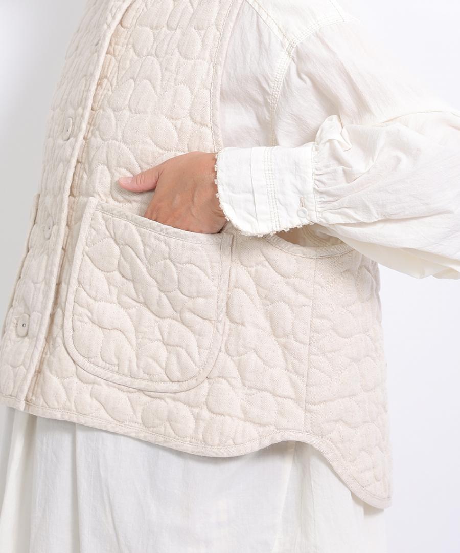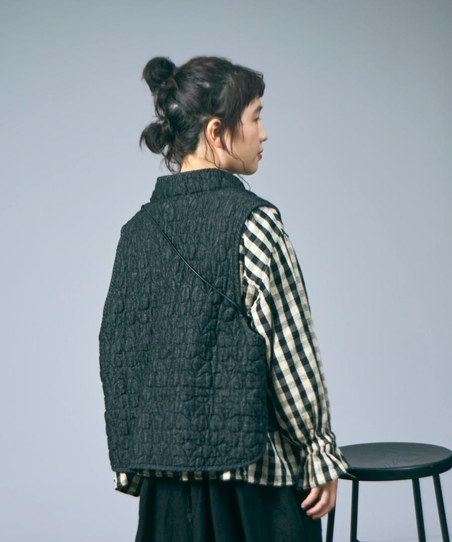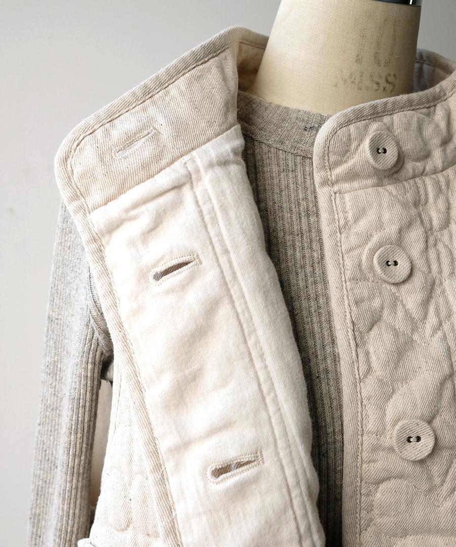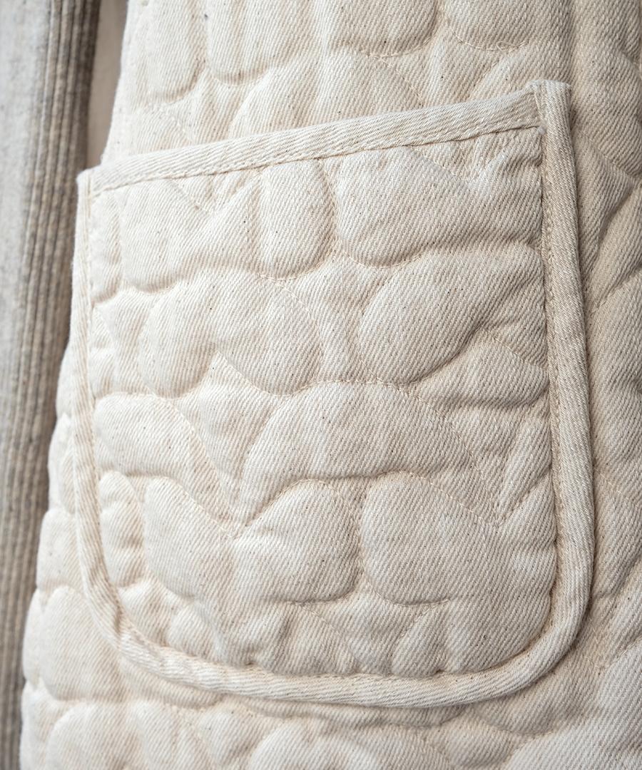 柔らかな風合いのコットンリネンデニムにオリジナルのちょうちょう柄のキルティングを施しました。