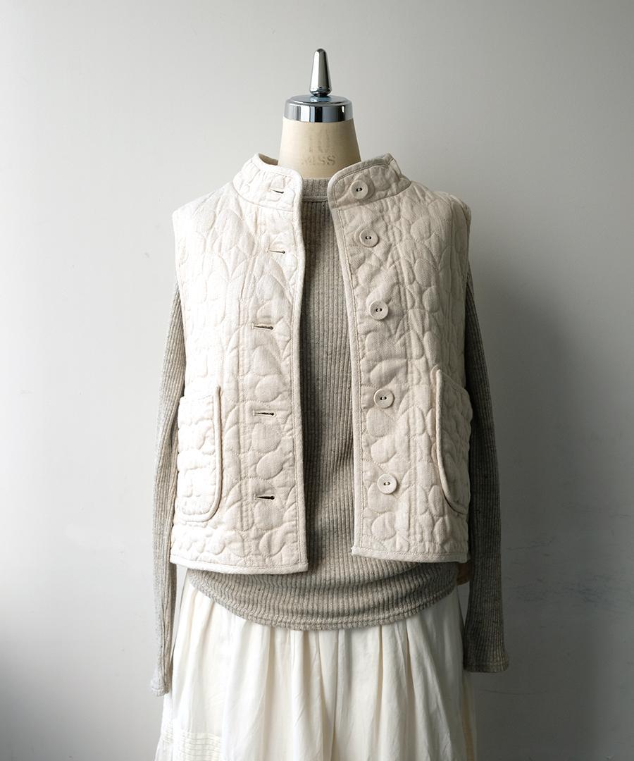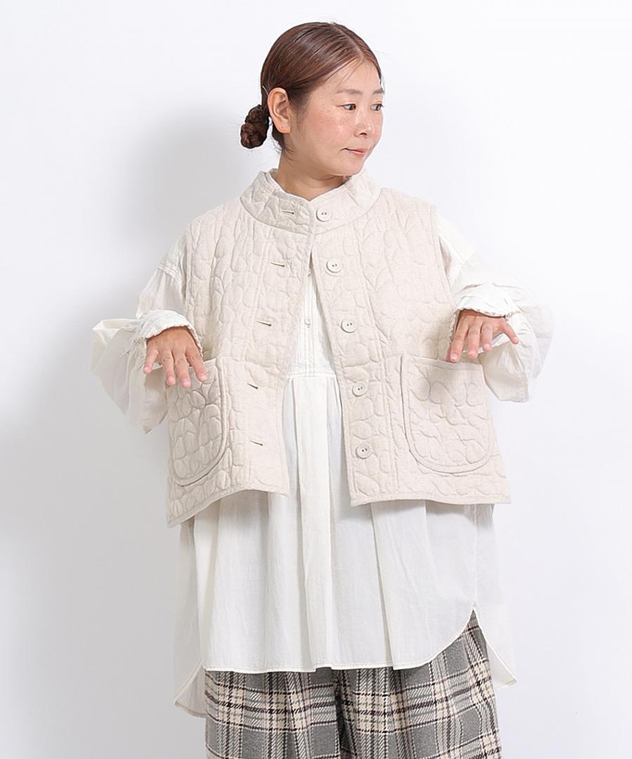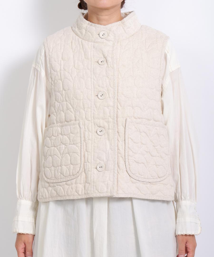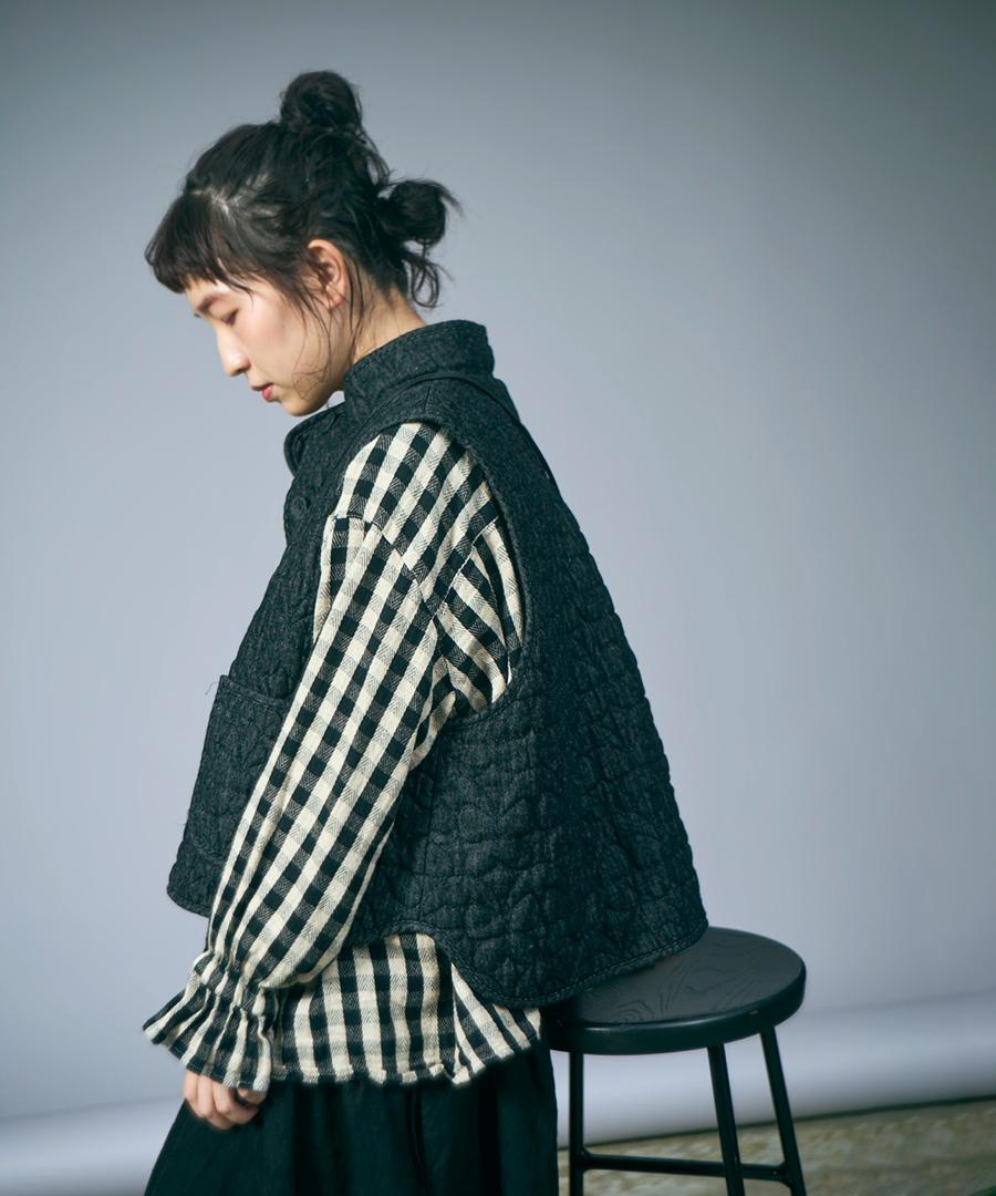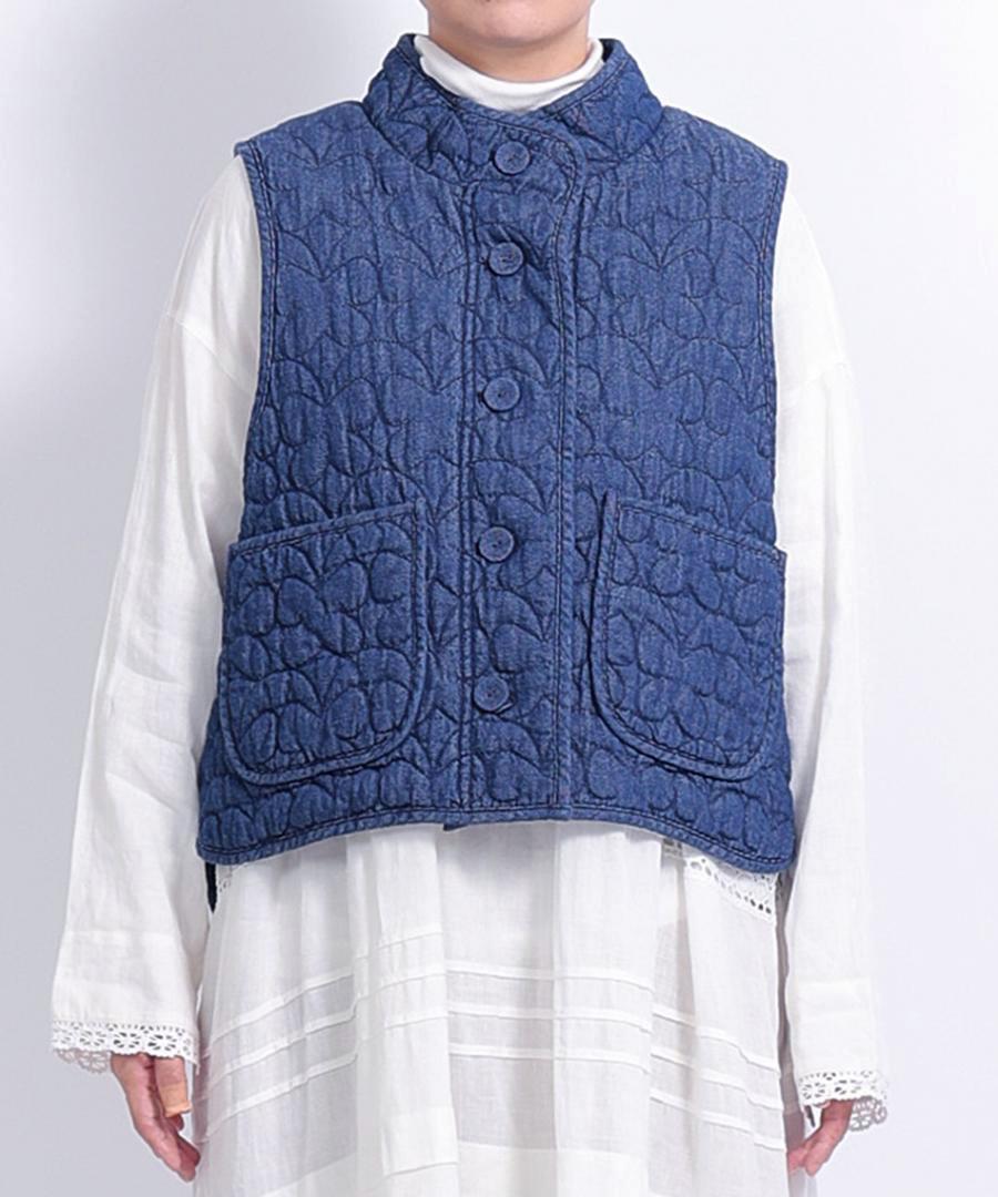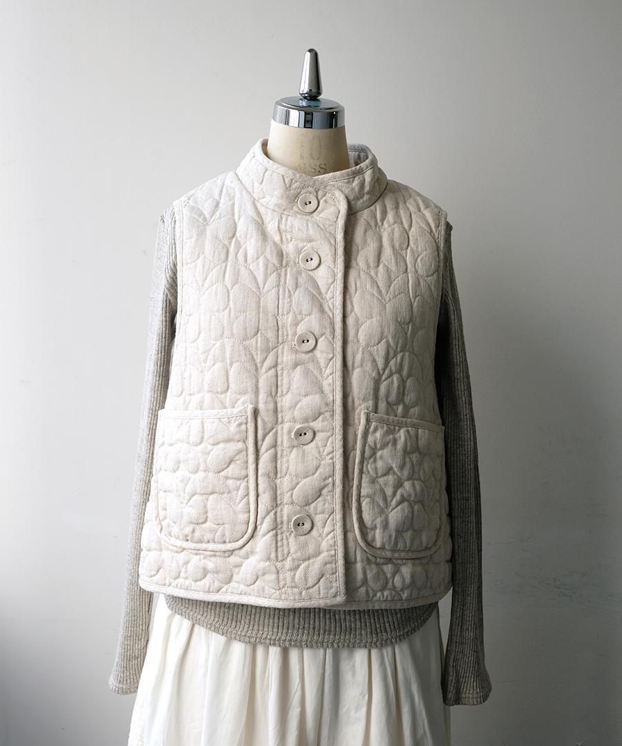 柔らかな風合いのコットンリネンデニムにオリジナルのちょうちょう柄のキルティングを施しました。