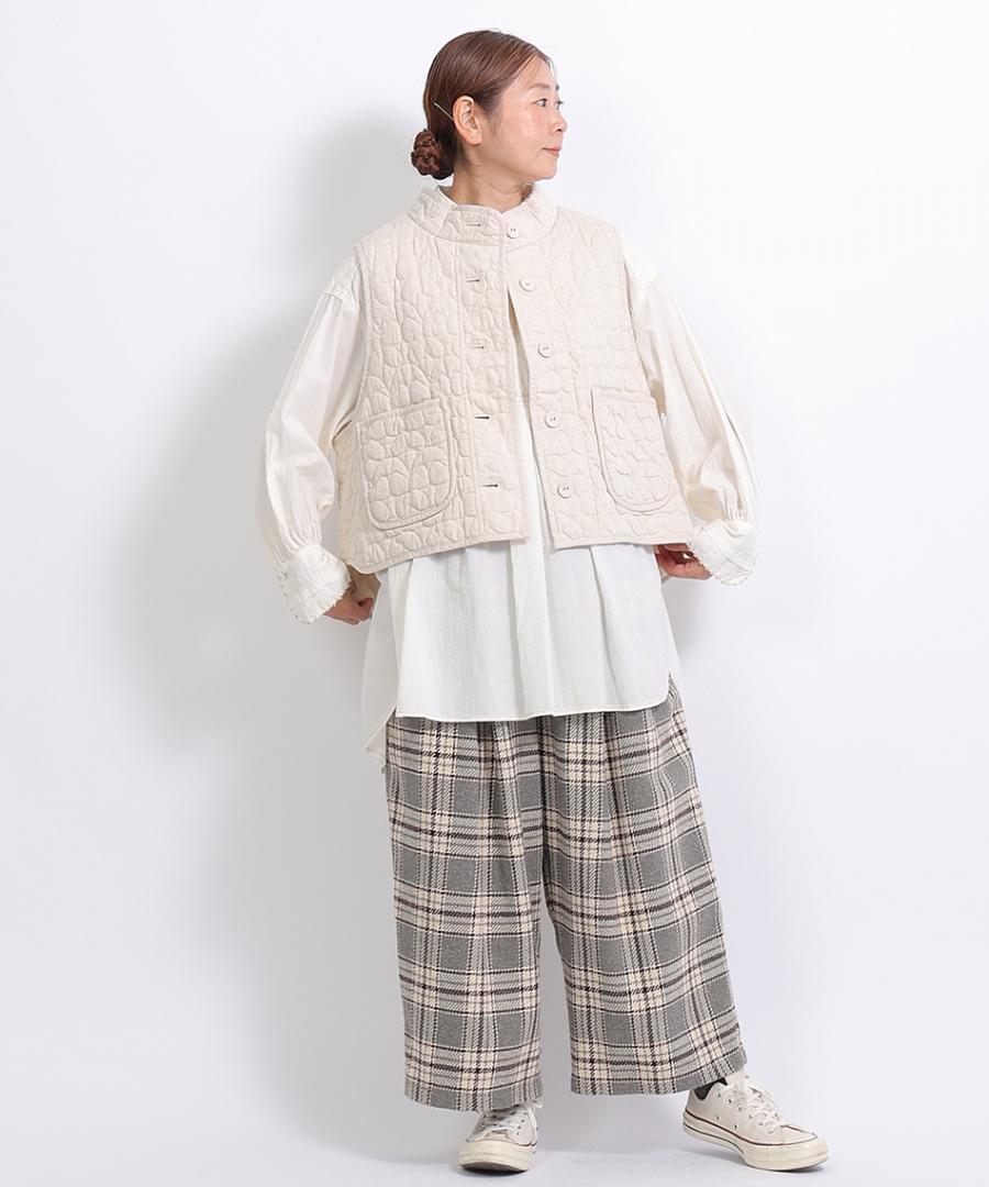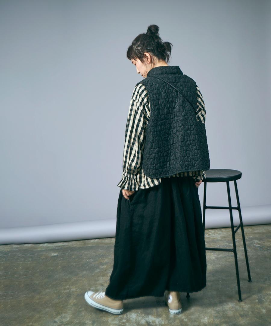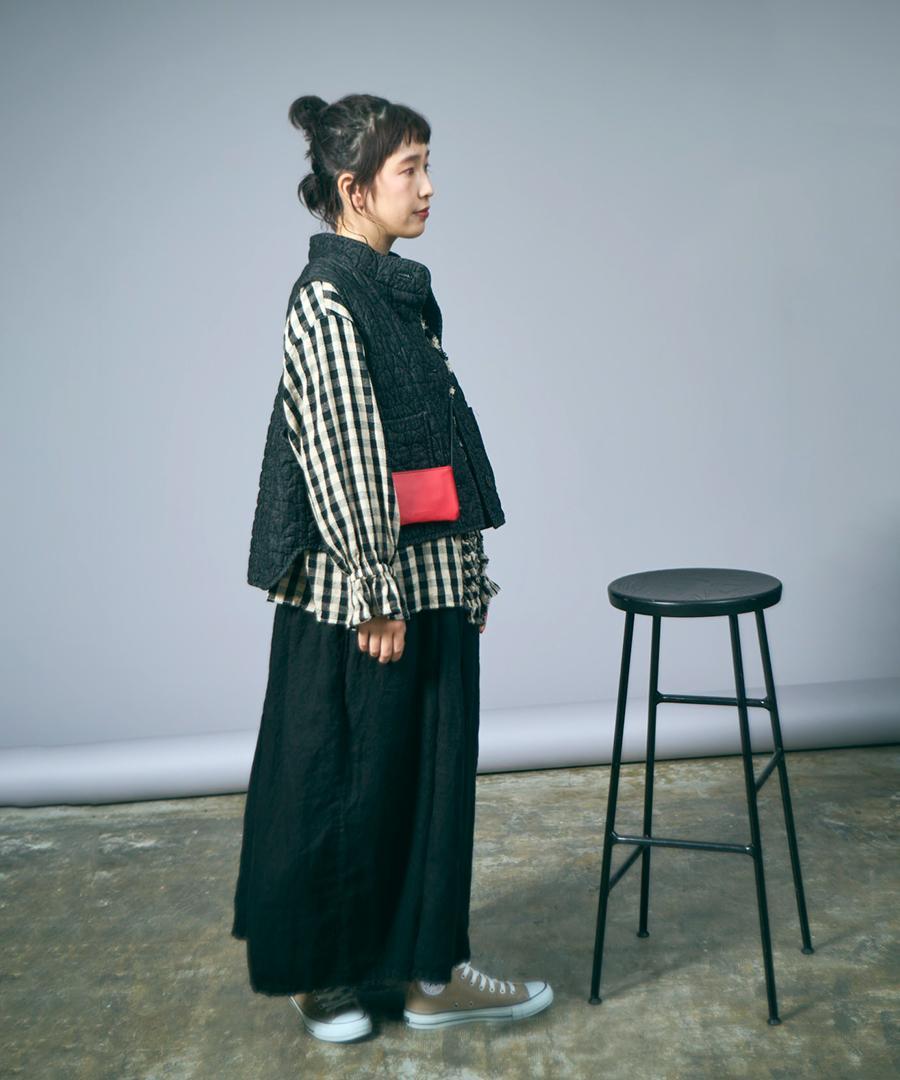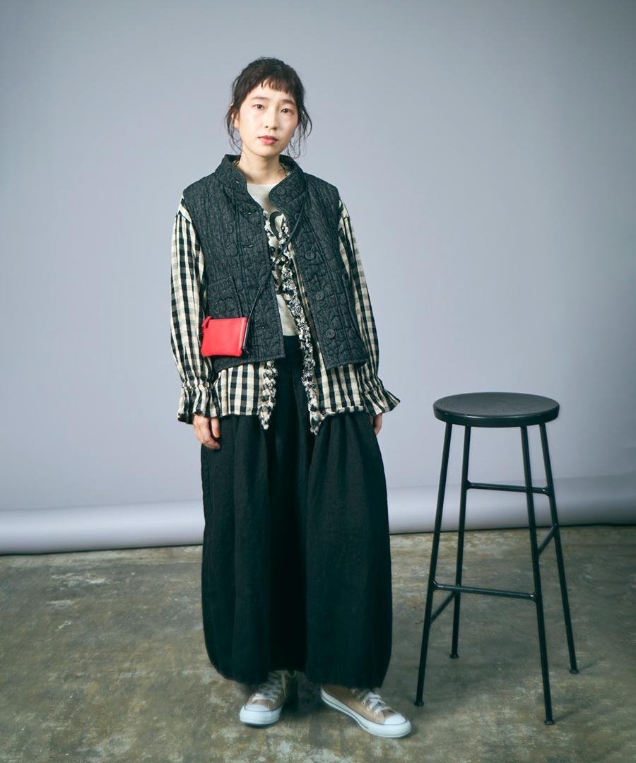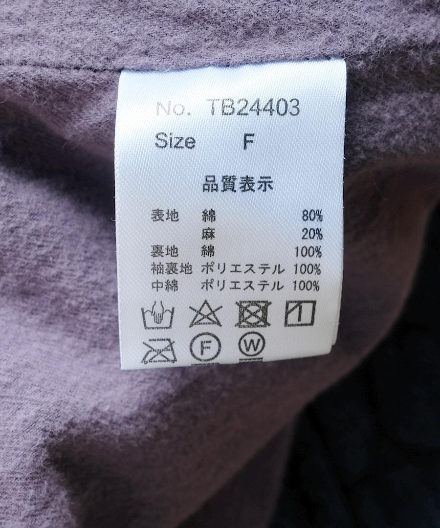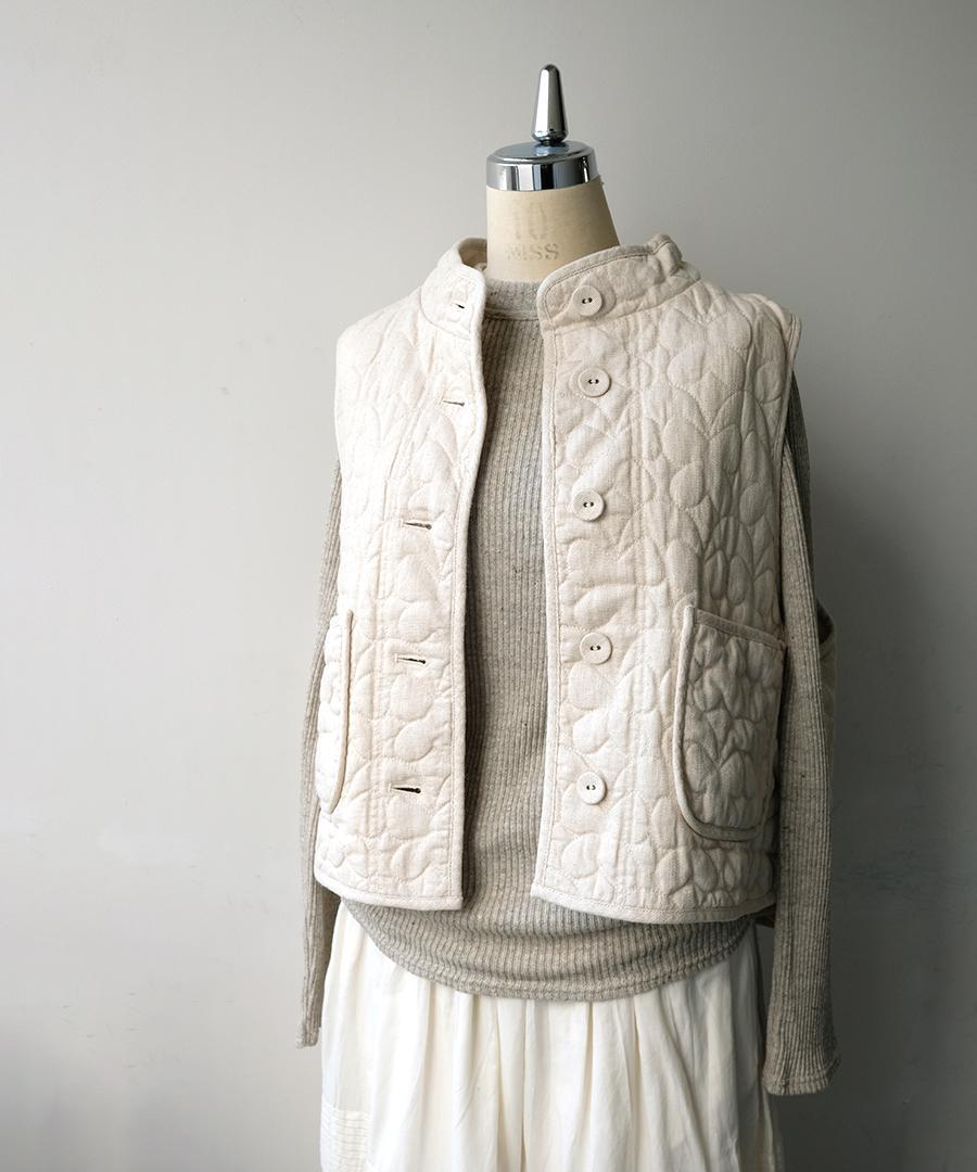 柔らかな風合いのコットンリネンデニムにオリジナルのちょうちょう柄のキルティングを施しました。