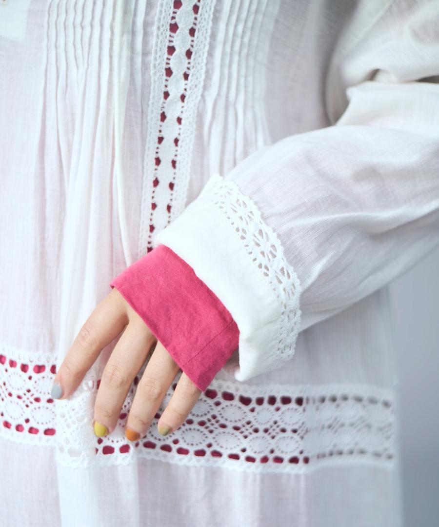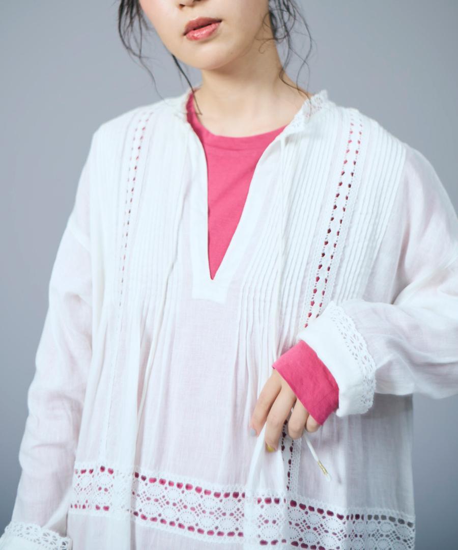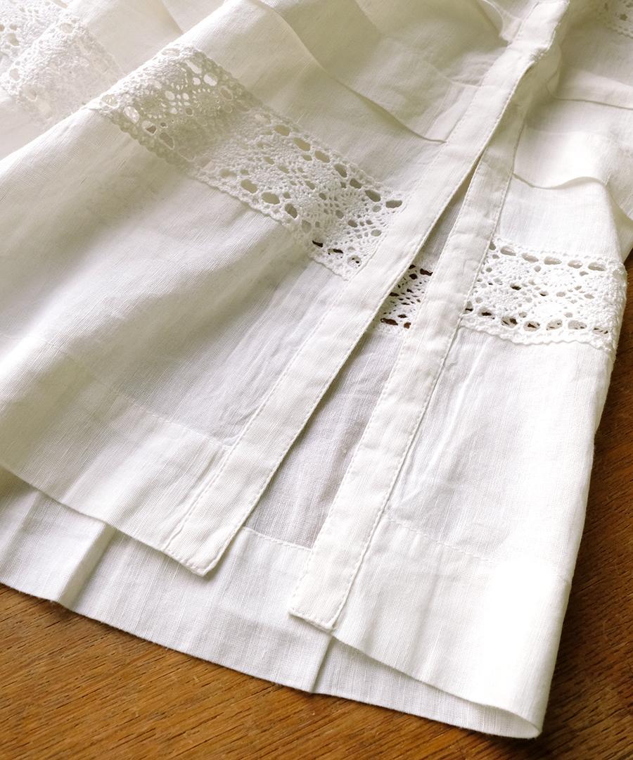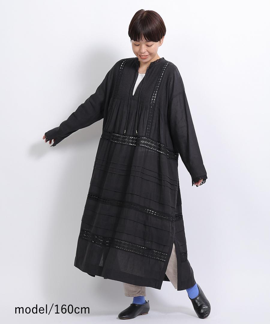 インドならではのレースやピンタック使いが贅沢な、アンティークな雰囲気のワンピース。
