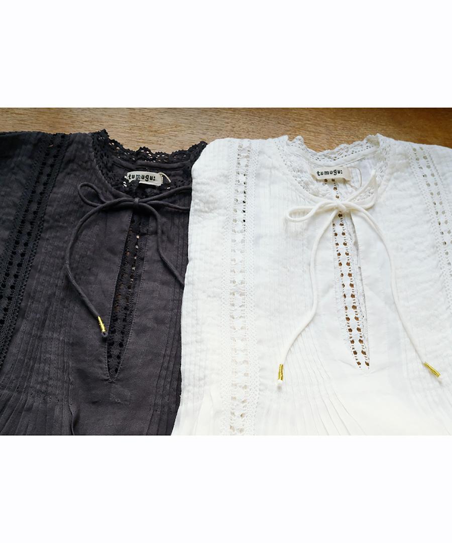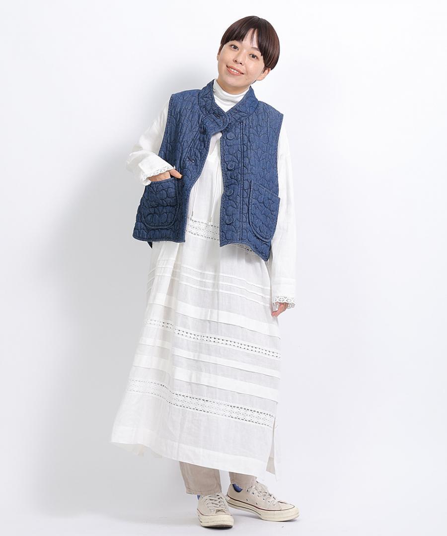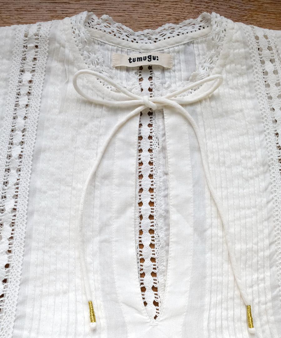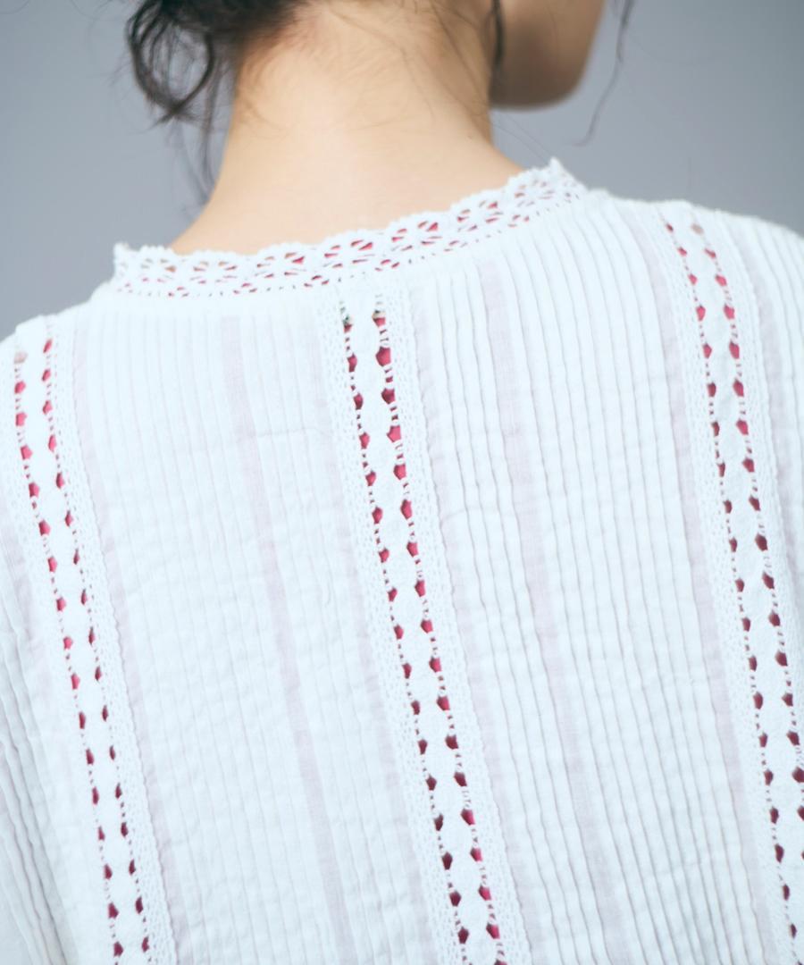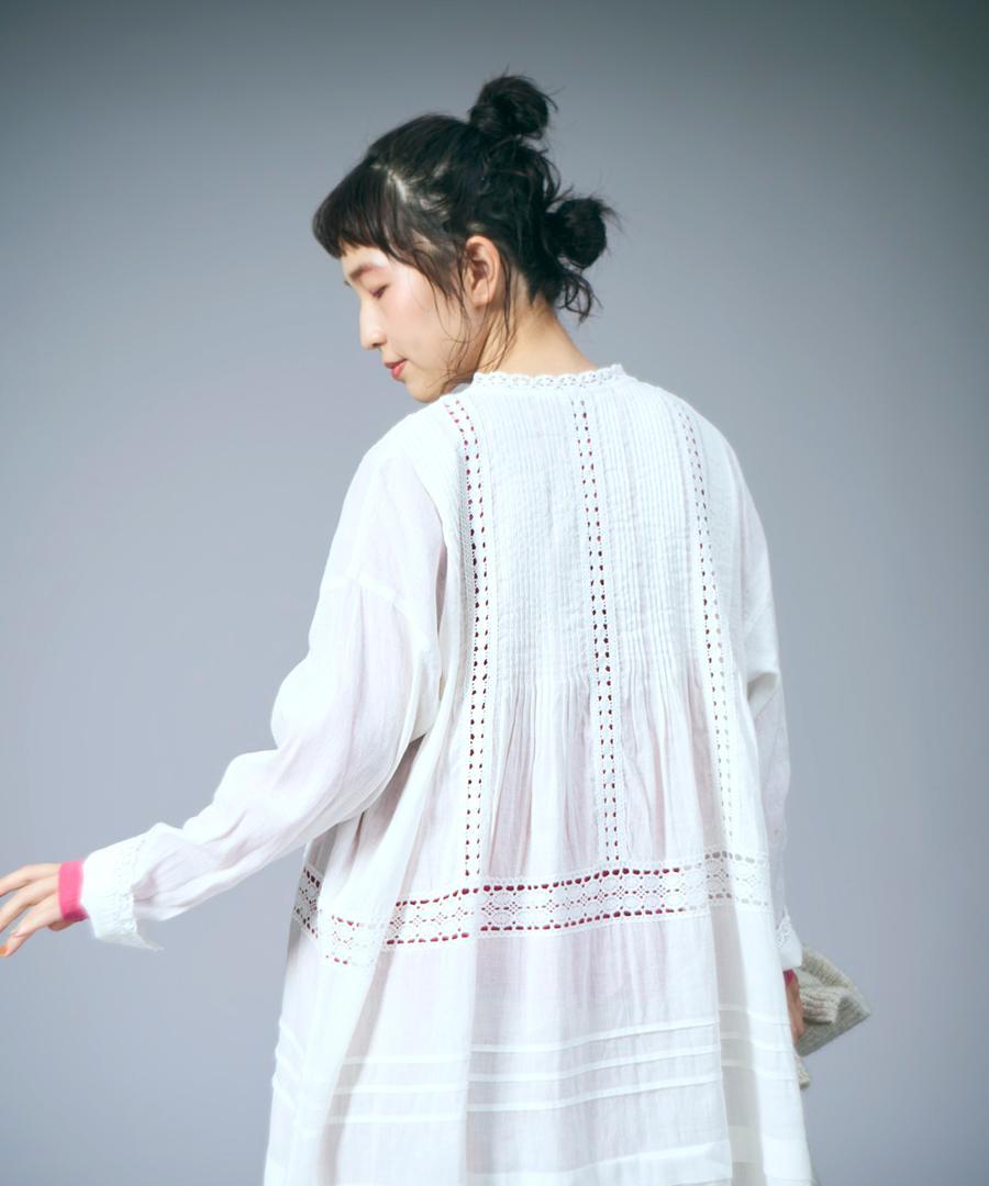 インドならではのレースやピンタック使いが贅沢な、アンティークな雰囲気のワンピース。