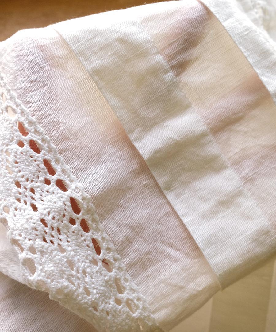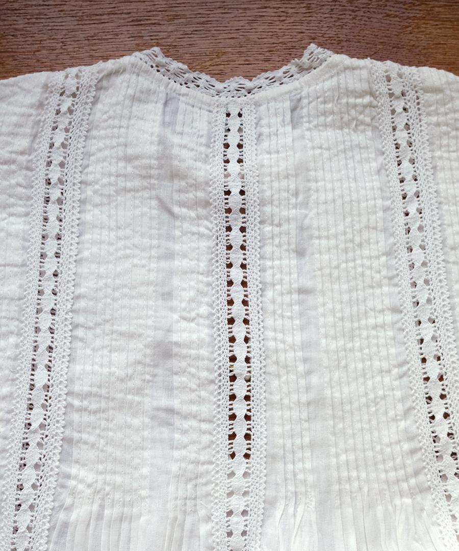細やかなピンタックや梯子レースをふんだんに使用し、贅沢で上品な印象に仕上がりました。