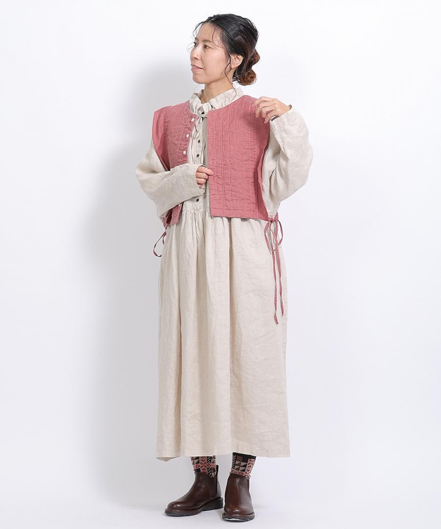 自然素材ならではの風合いと淡い色合いが魅力の2wayベスト。