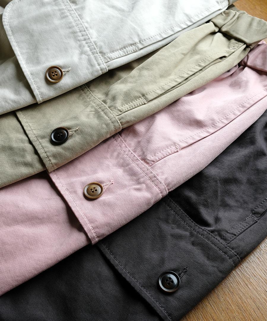 マットな光沢感のある、しっかりとしたハリコシのあるタフな生地感で上品さとカジュアルさを併せ持っています。