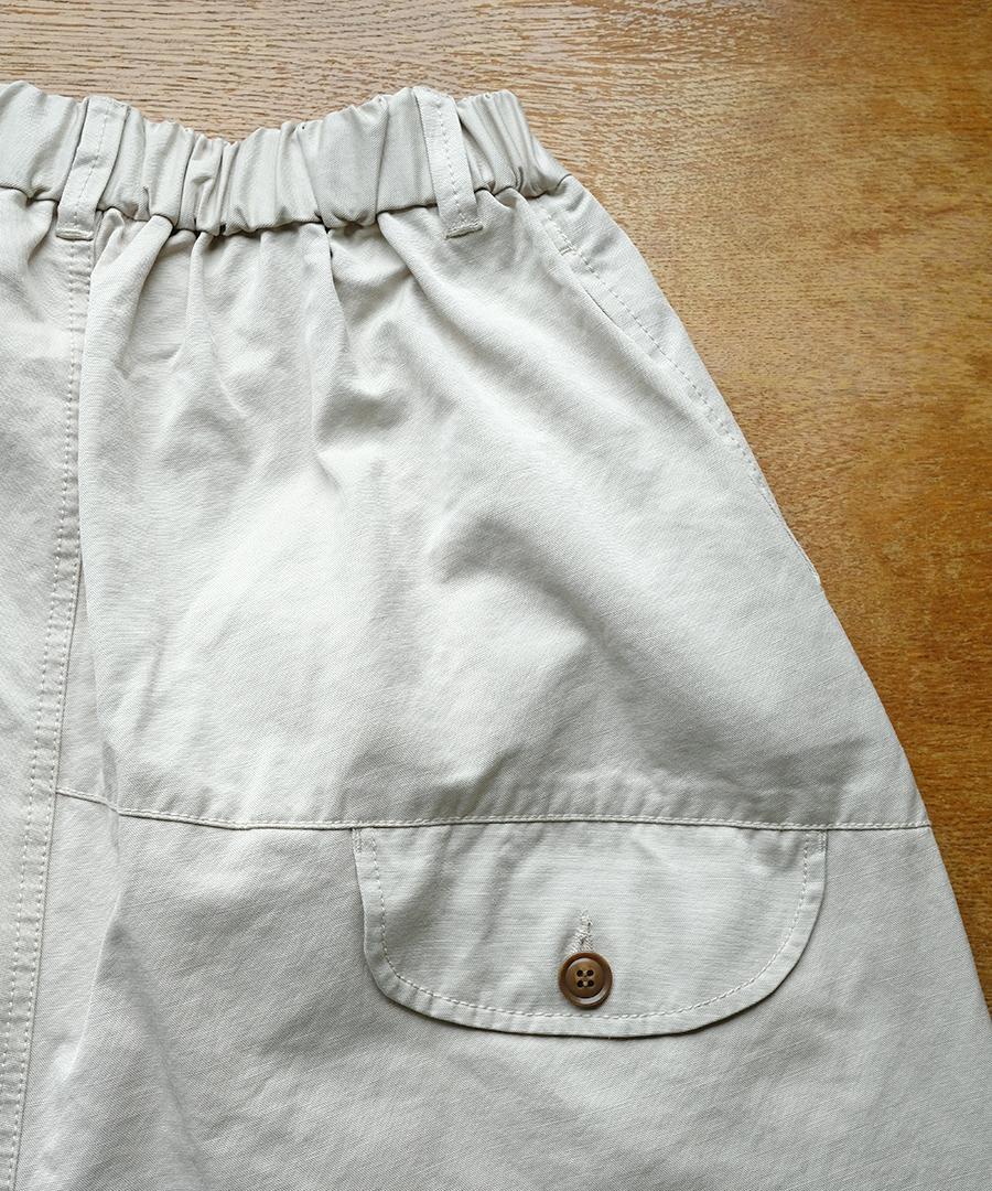 カーゴパンツの様に片側の大きいポケットが実用性のあるアクセントになっています。