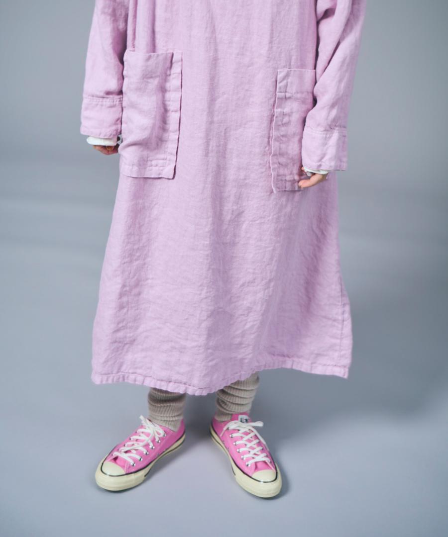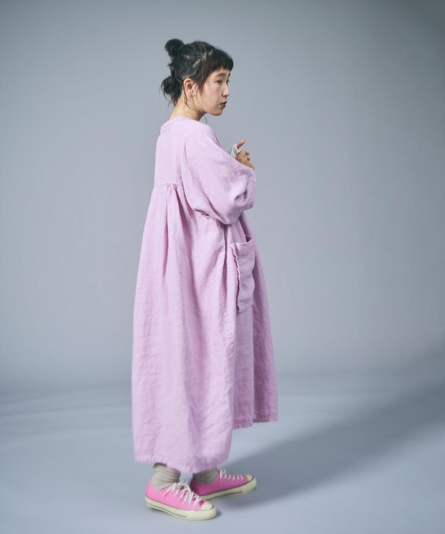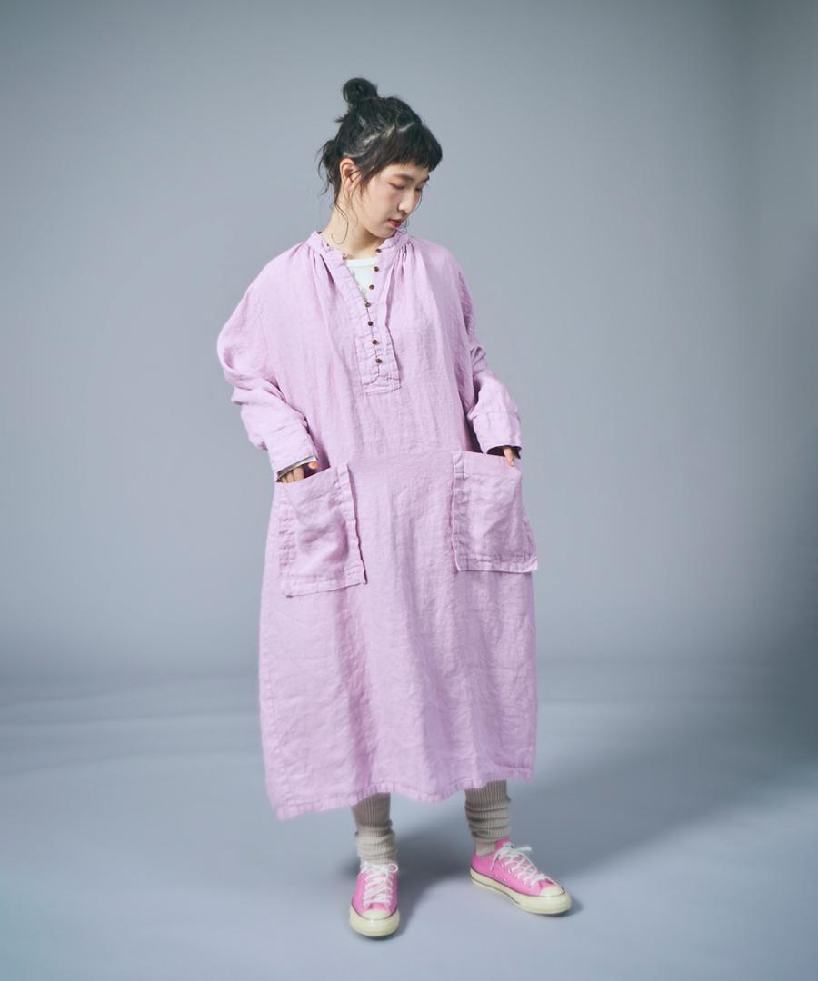 洗いざらしのナチュラルな風合いが魅力のリネンワンピース。