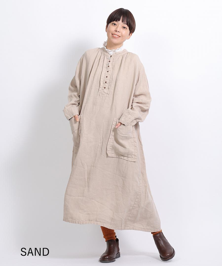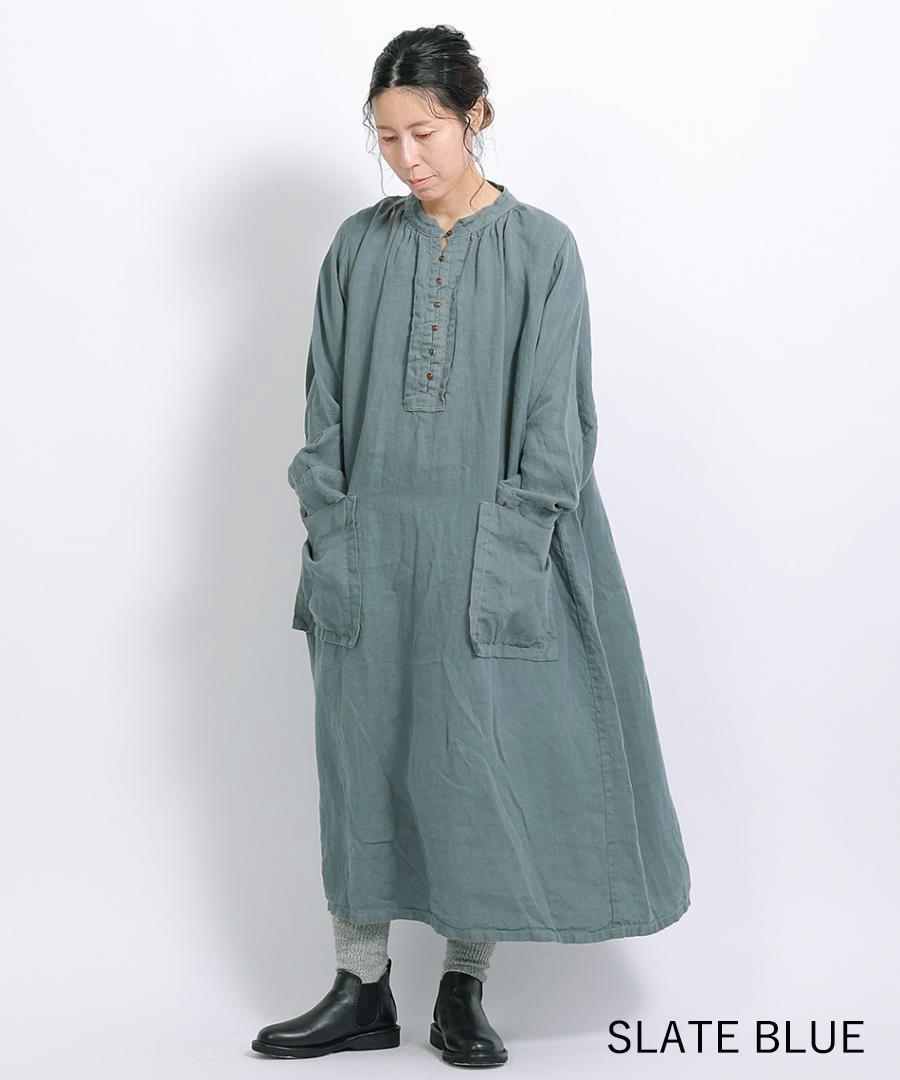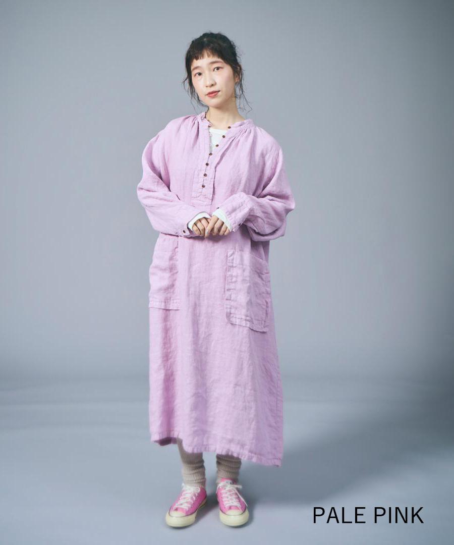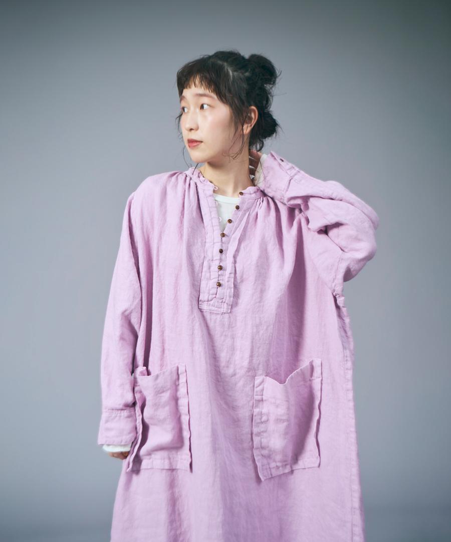 洗いざらしのナチュラルな風合いが魅力のリネンワンピース。