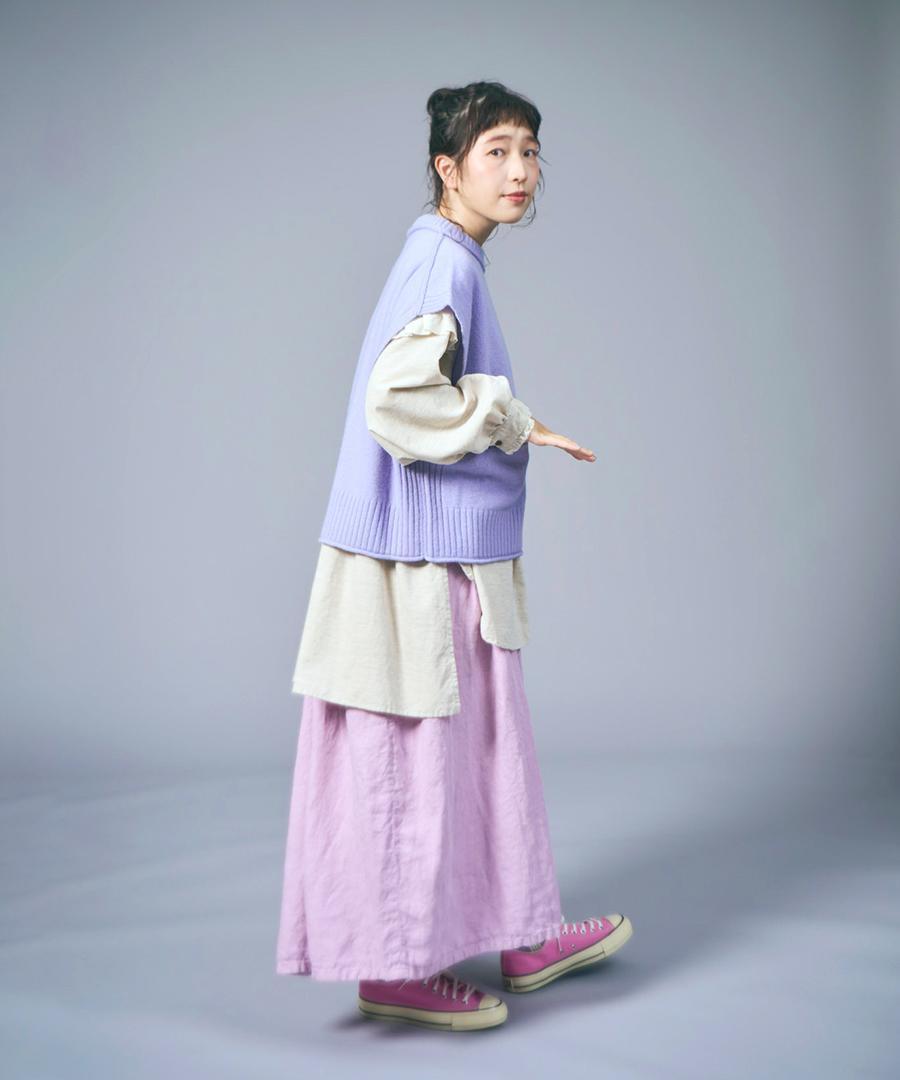 寒い日にはタートルインしたり、ベストやニットを重ねて。