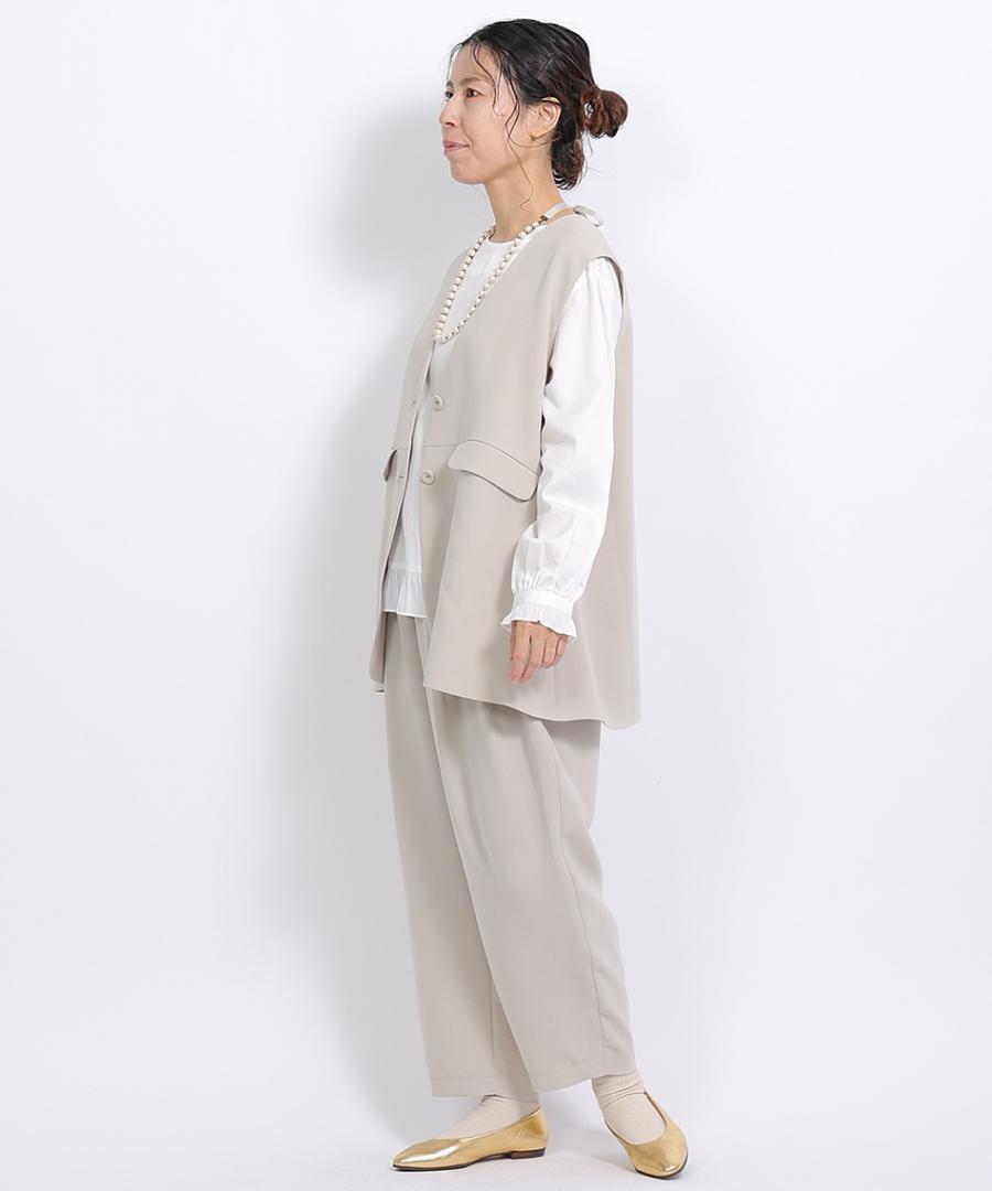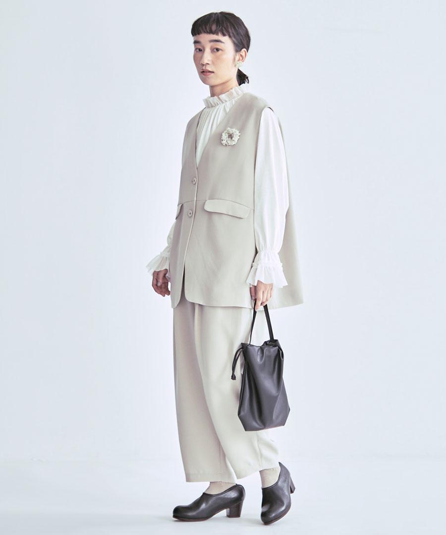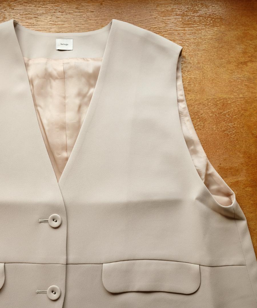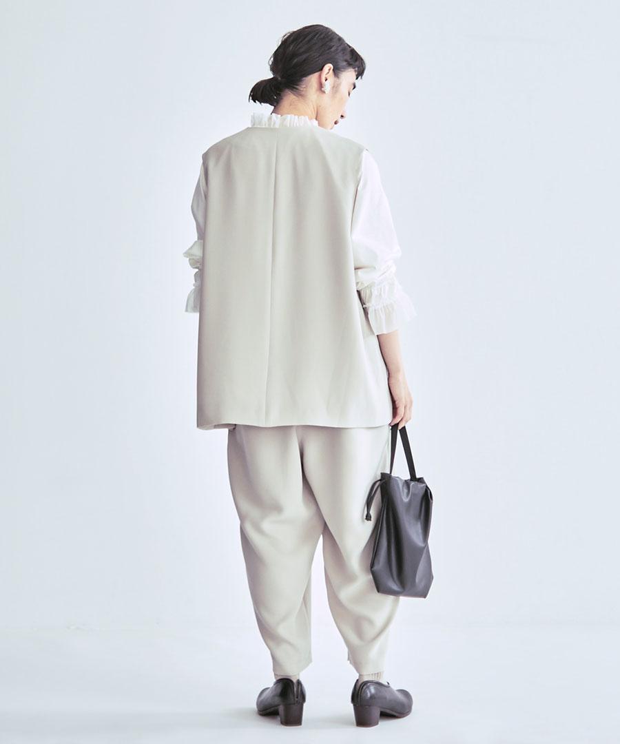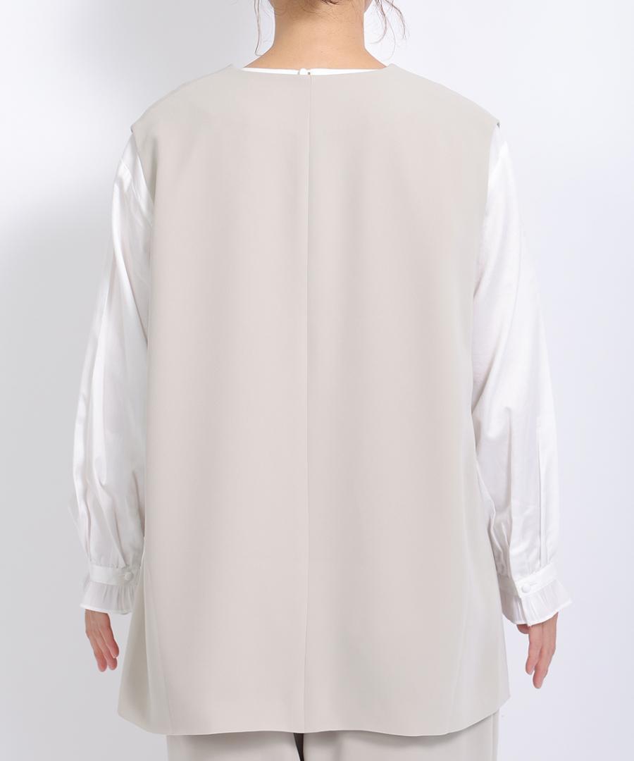 トリアセテート特有のドレープ感にパウダリー感とふくらみを兼ね備えた、上品な質感のベストジャケット。