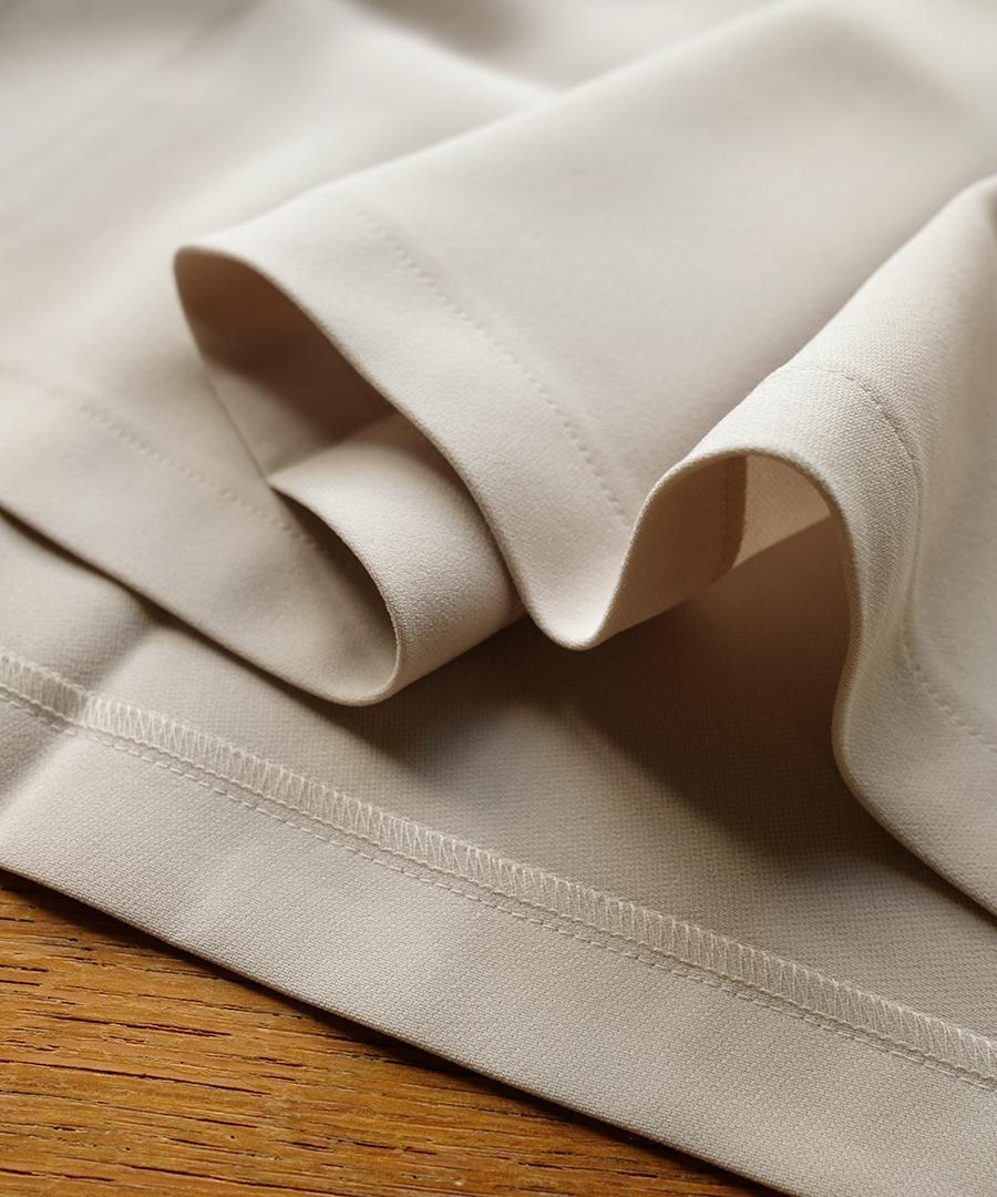 2重織の程よい肉感の生地感でシワになりにくく、シワになってもスチームなどですぐに直せる点も魅力です。