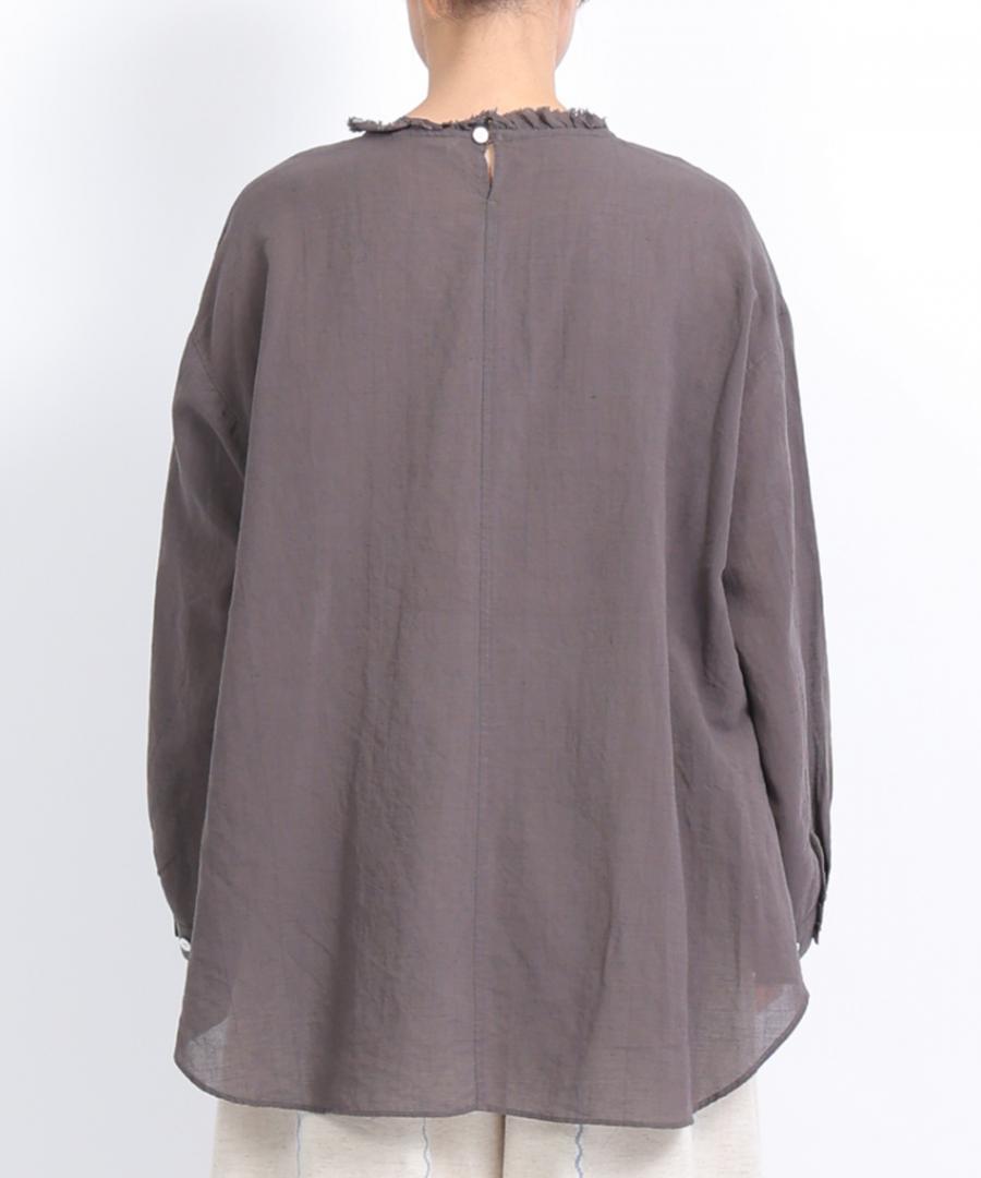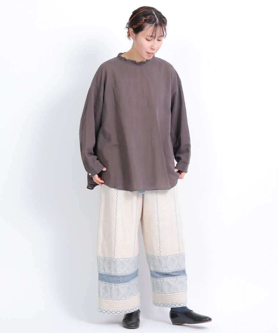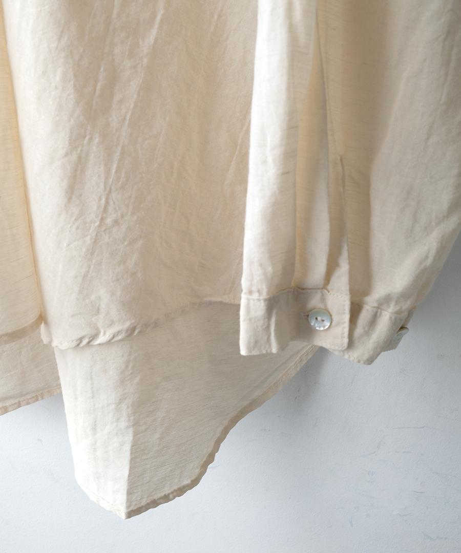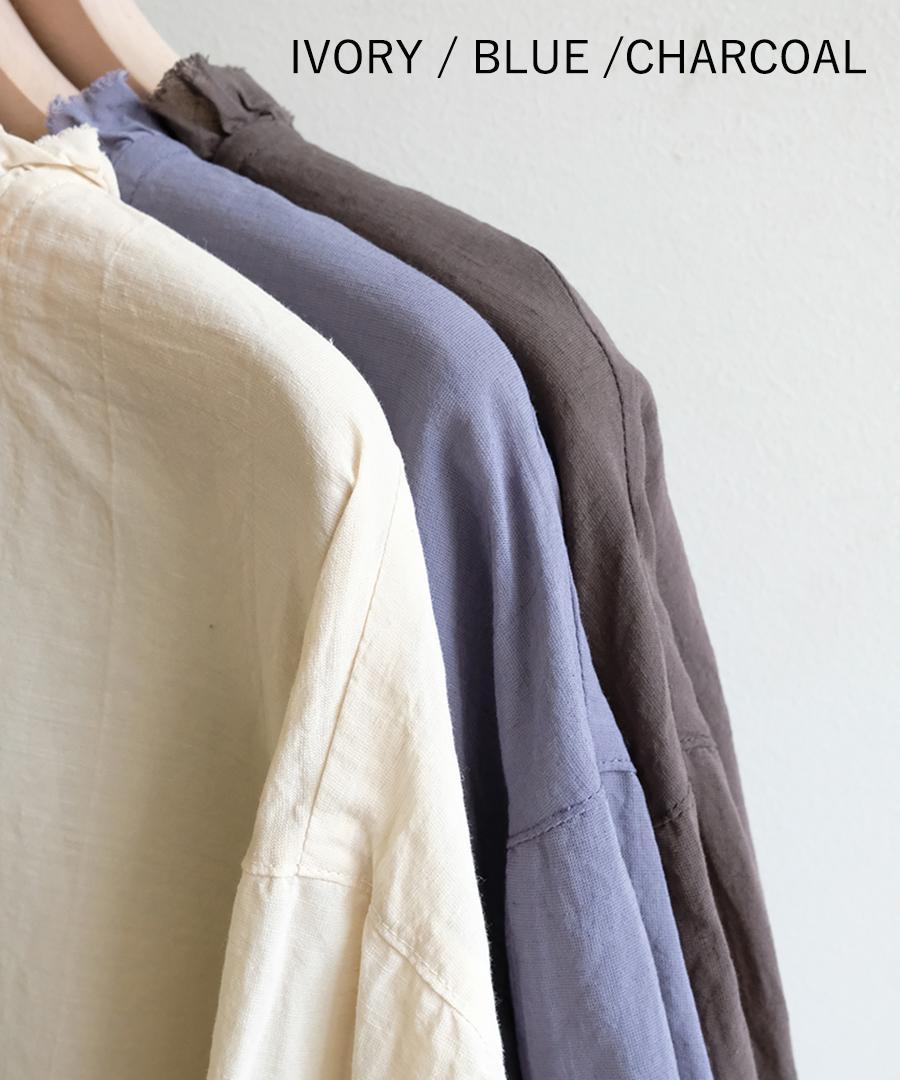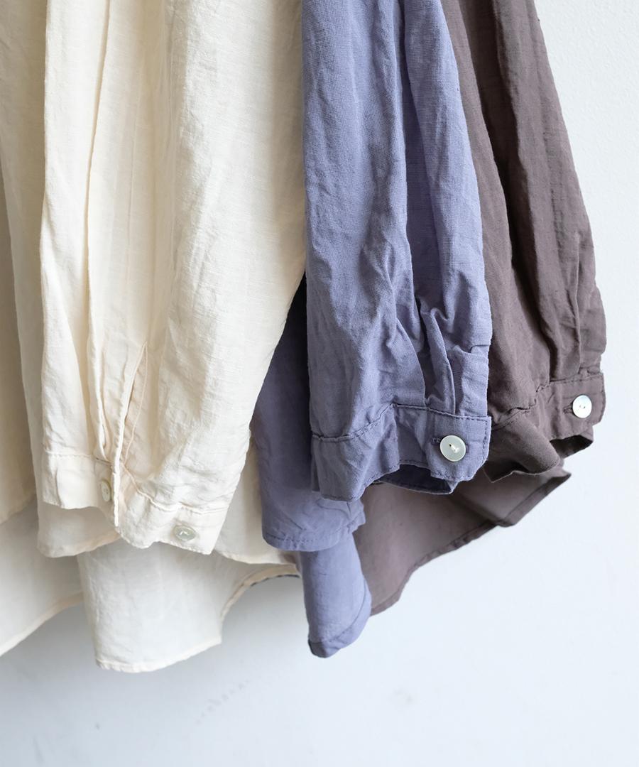 綿コーマの強撚糸にリネンを加えたこの生地は、シャリ感とシボ感のある豊かな表情が魅力の一枚です。