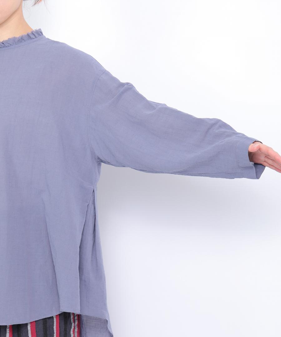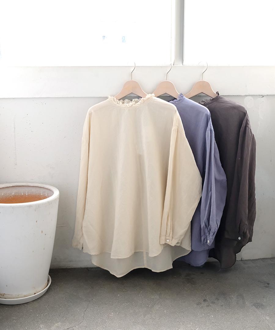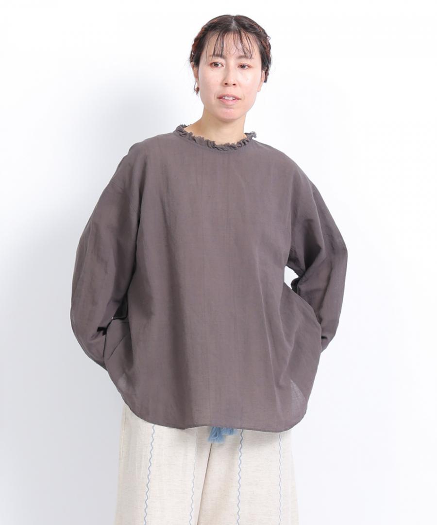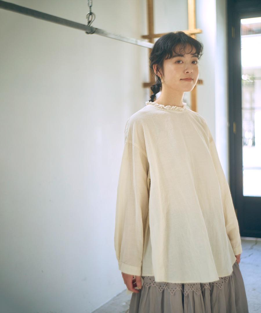涼しげな薄手のシアー生地で仕立てたフリルプルオーバー。