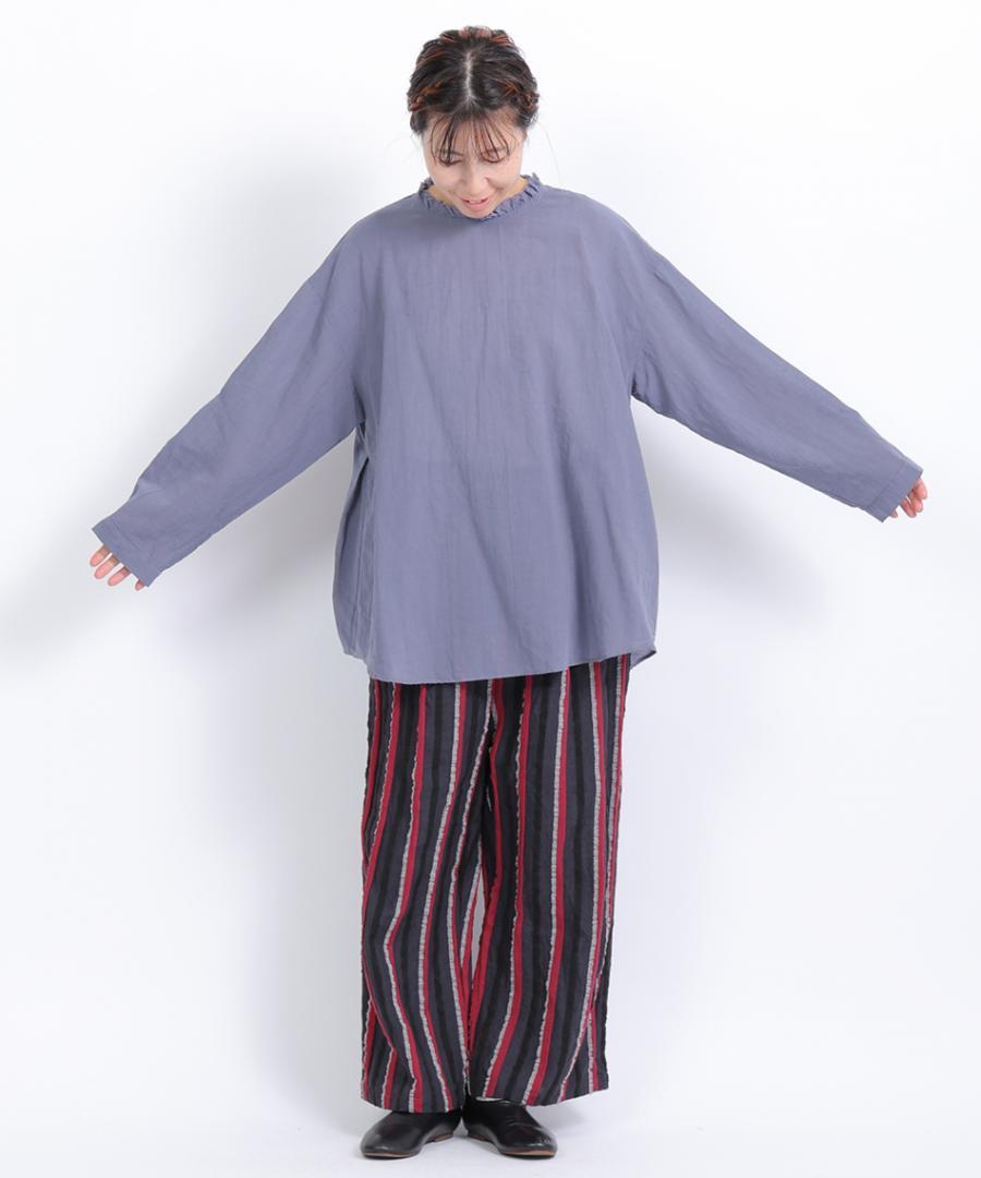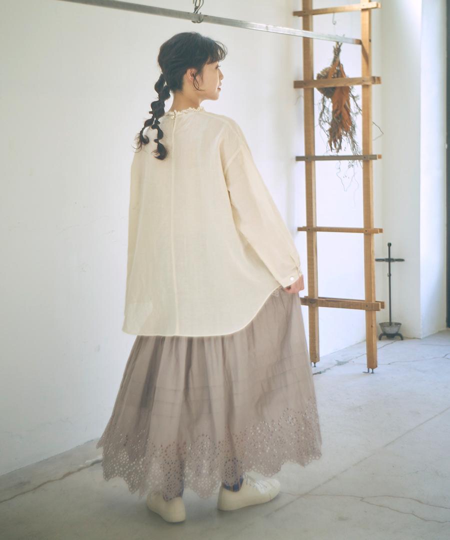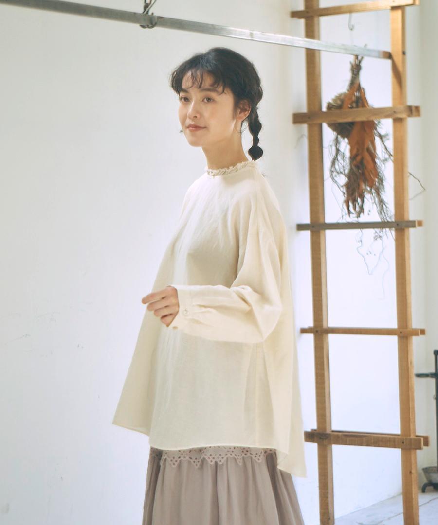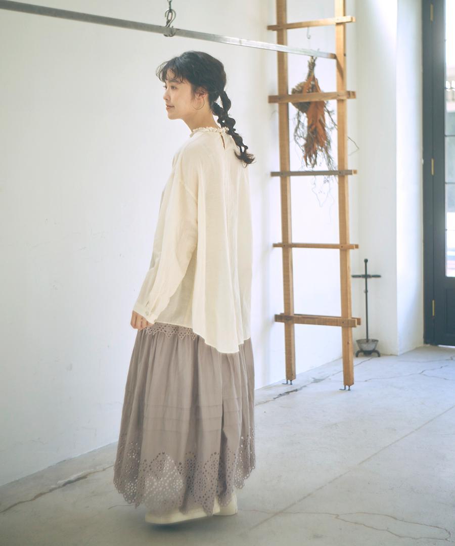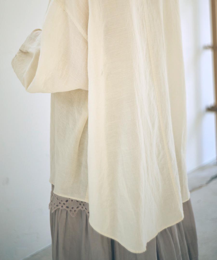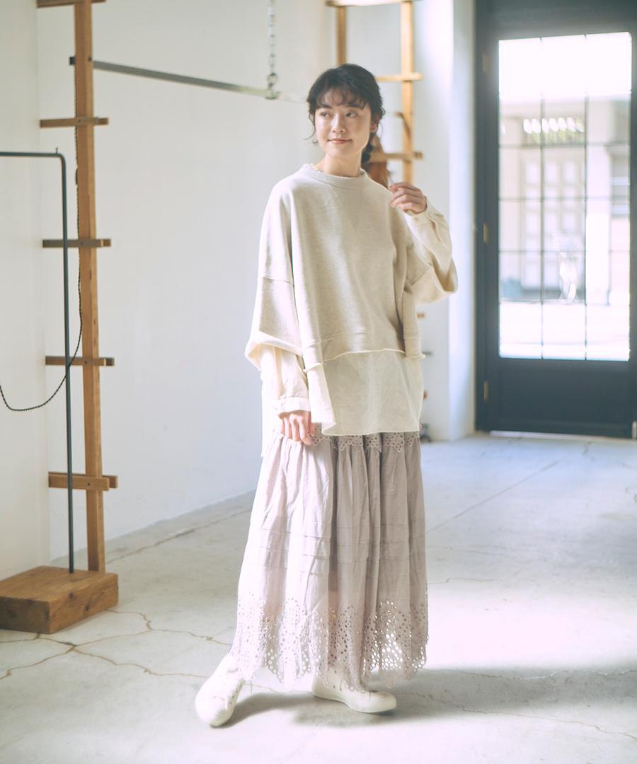さりげなくウェスト周りをカバーしつつ、軽やかでリラックス感のある着心地になっています。