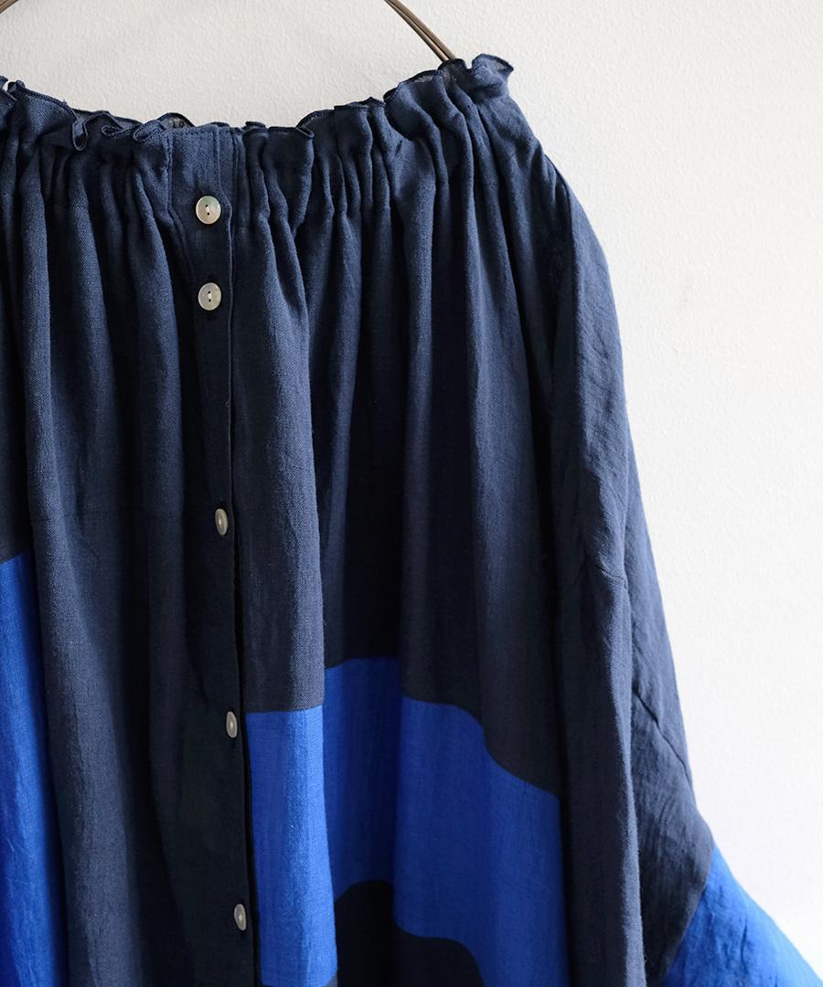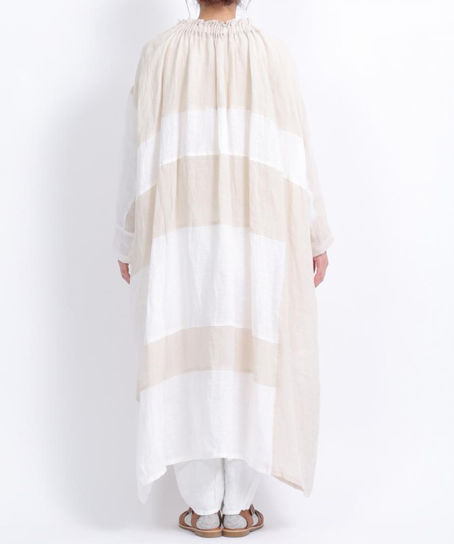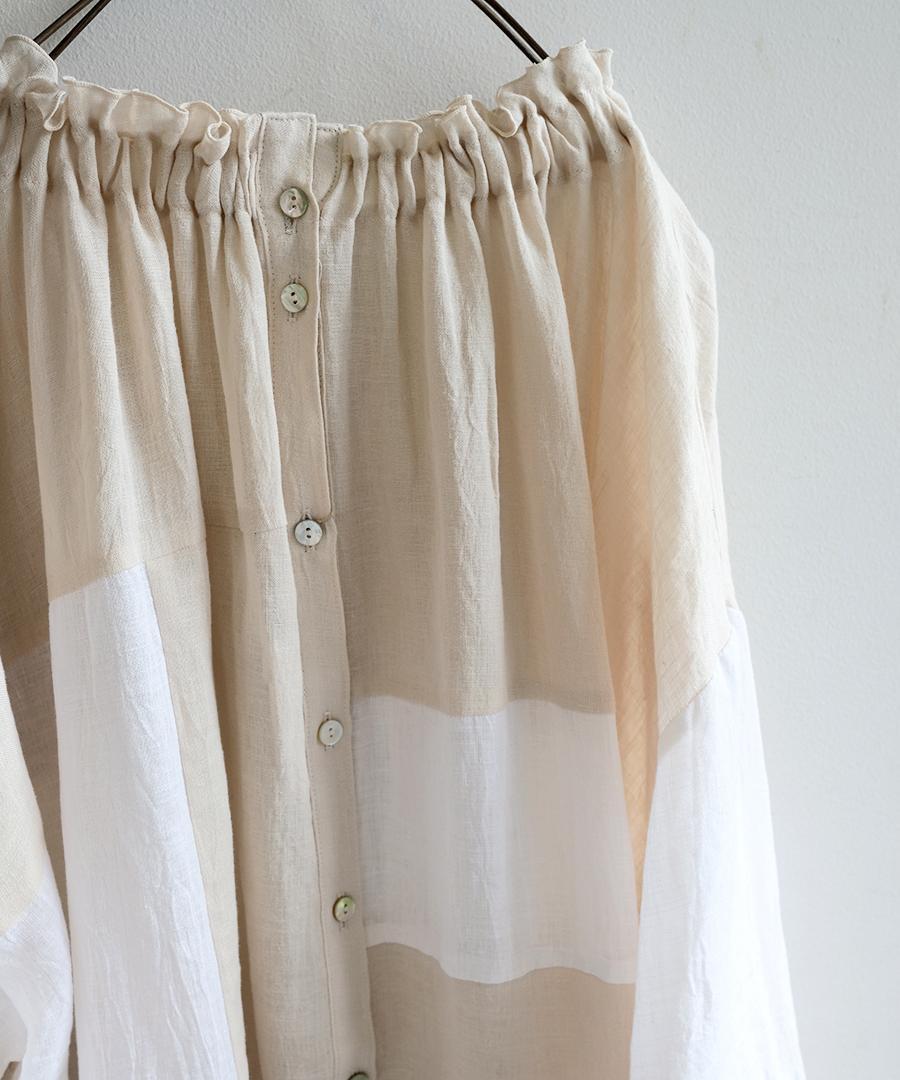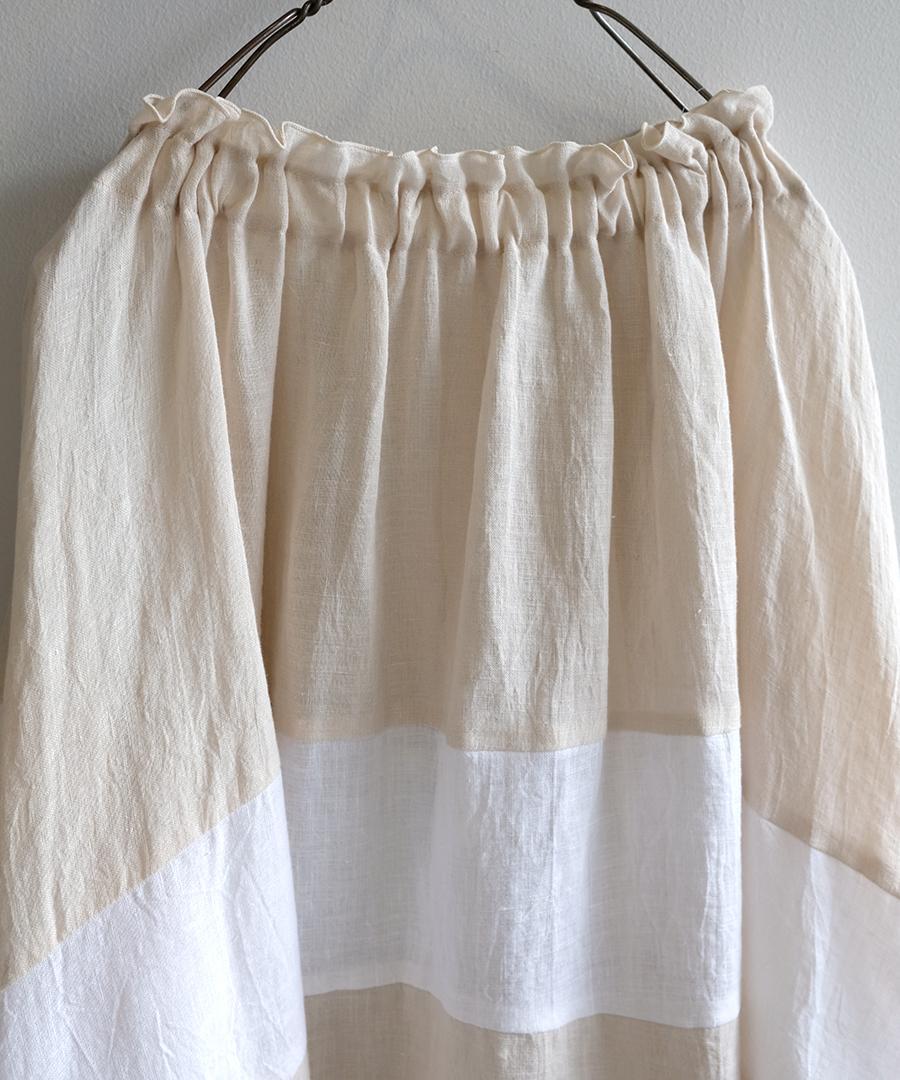 リネン生地をたっぷりと贅沢に使用し、ゆったりとしたフォルムからサイドに緩やかに落ちるシルエット。