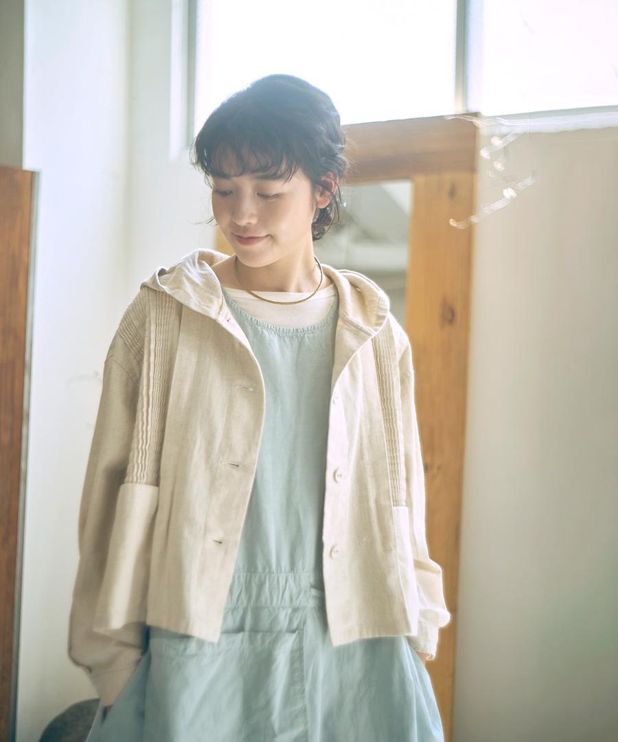 6.5ozコットンリネンデニム フードジャケット(完売)