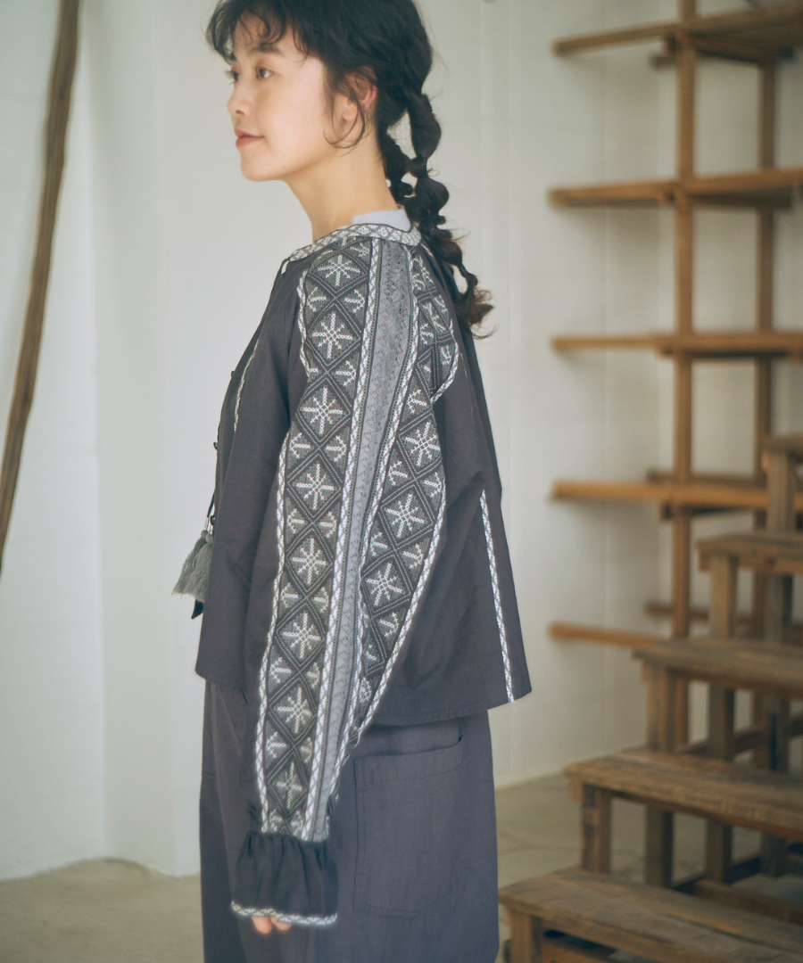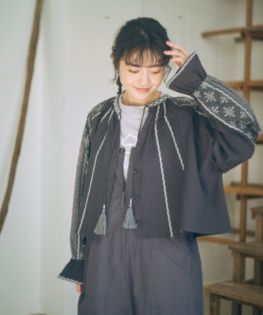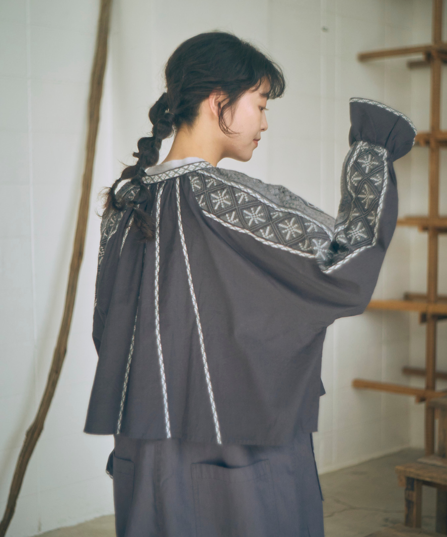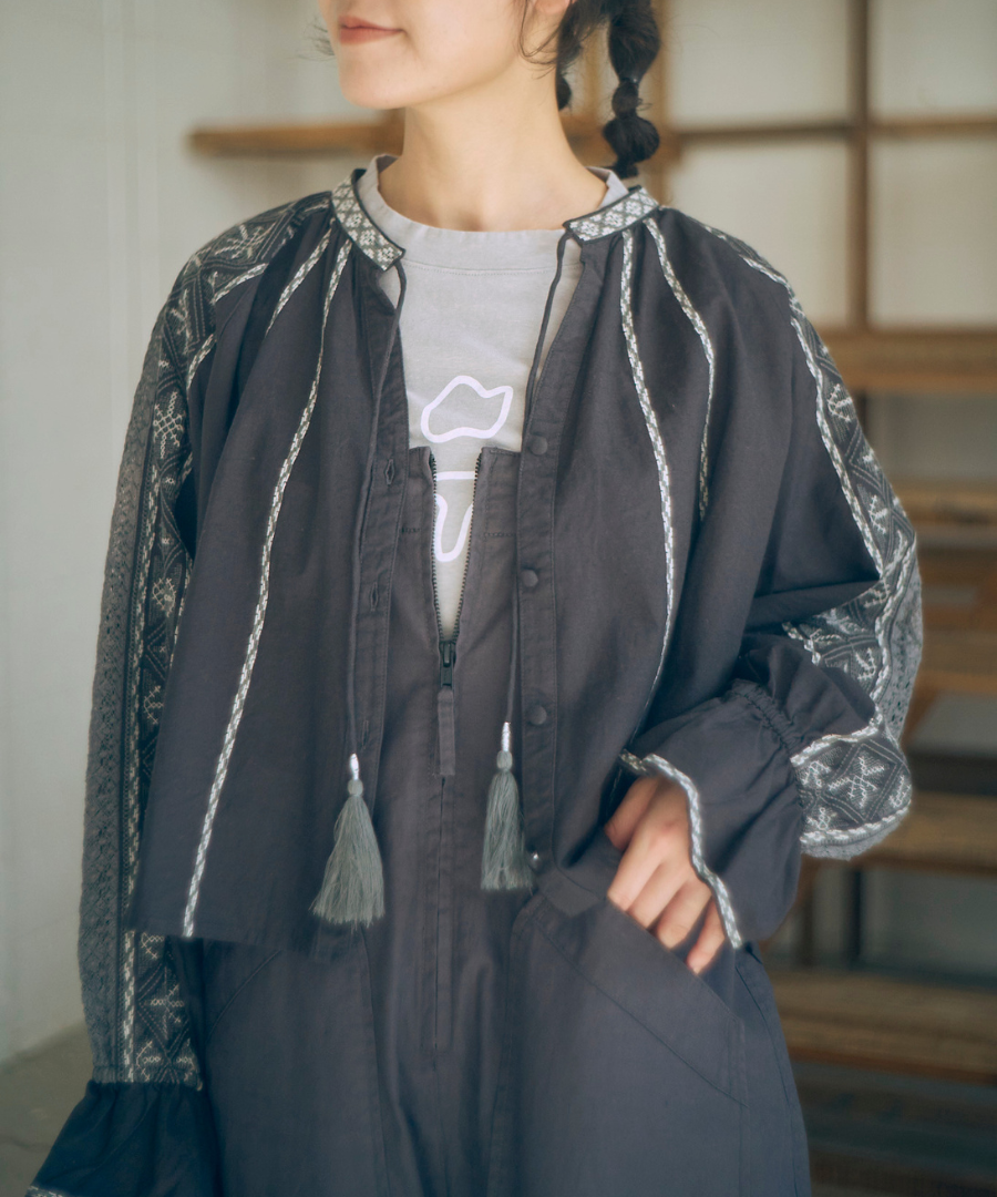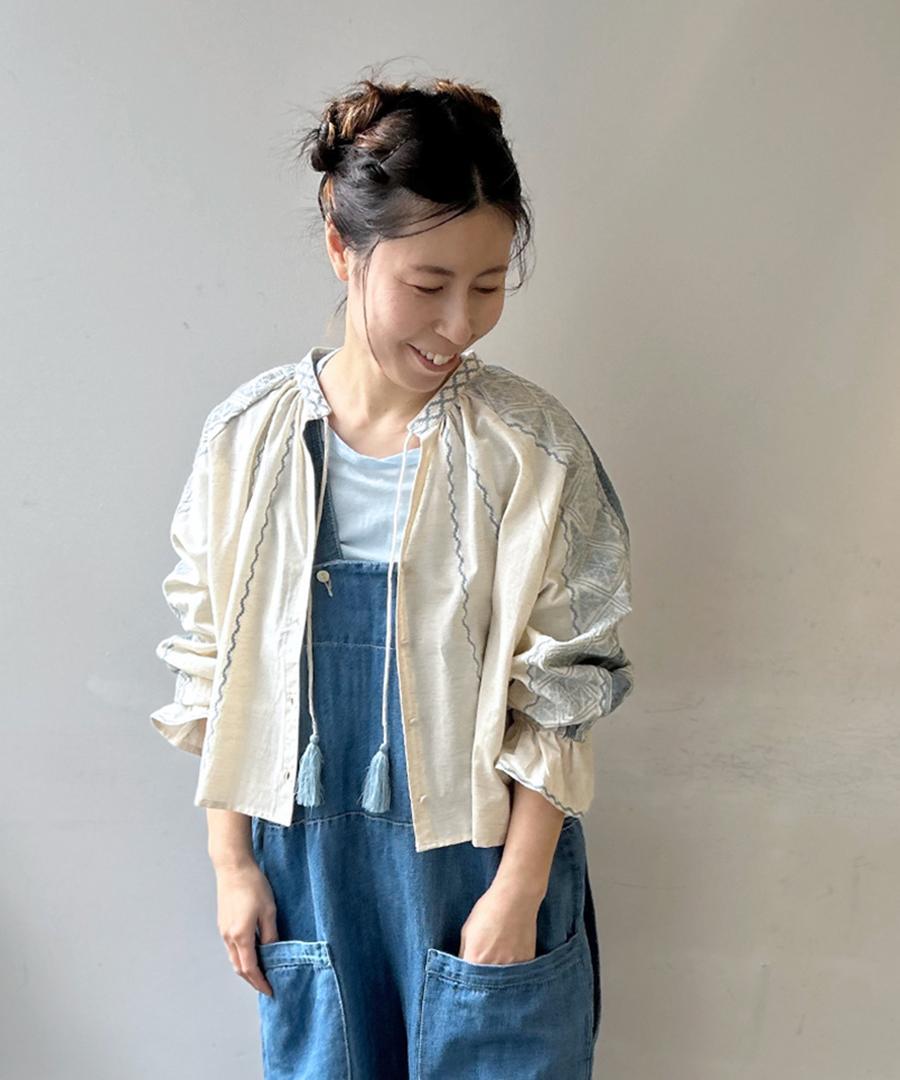 コットンリネン素材の程よいハリのある生地感で、軽やかに羽織っていただけます。