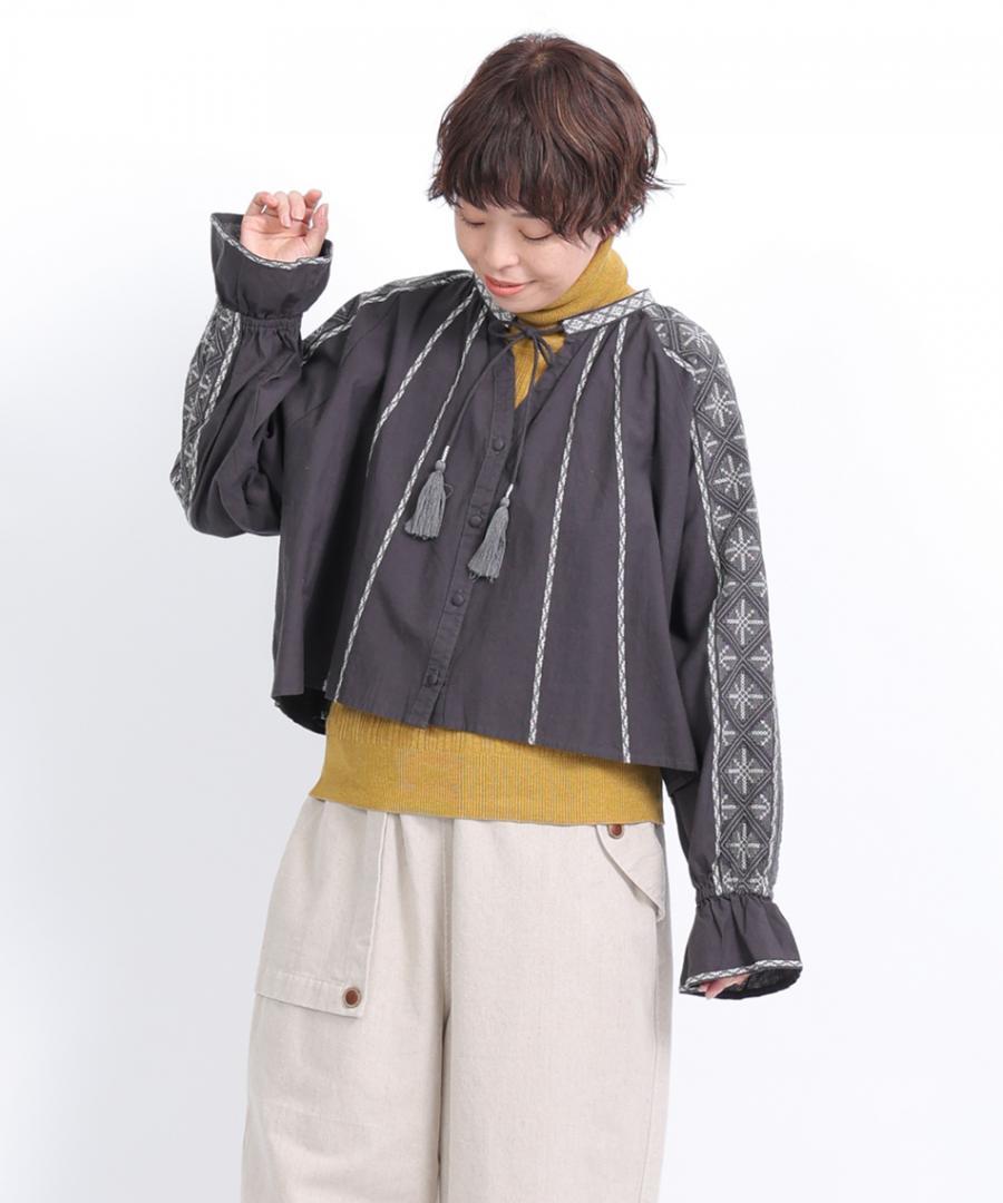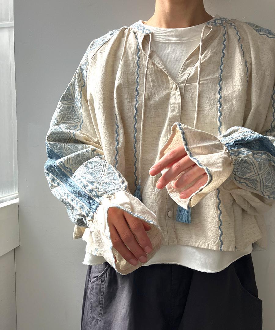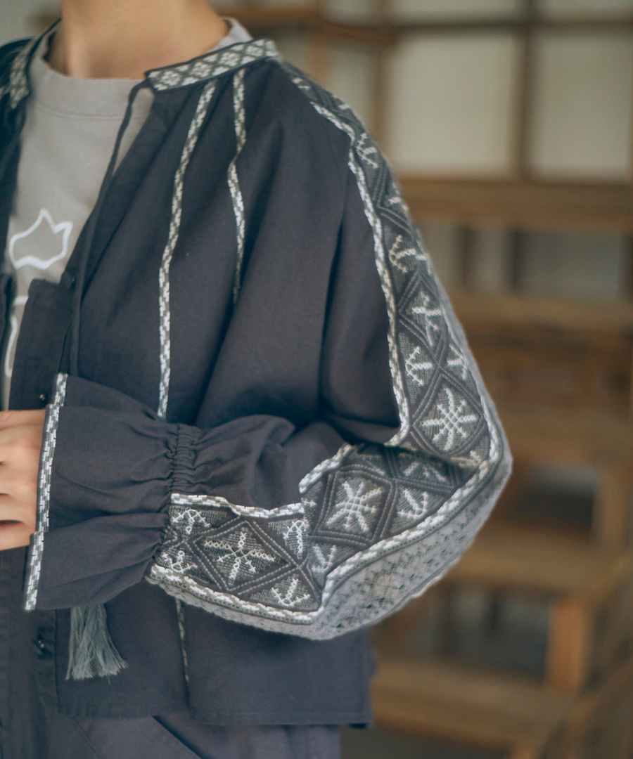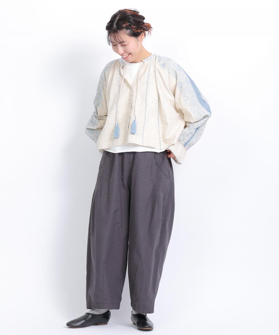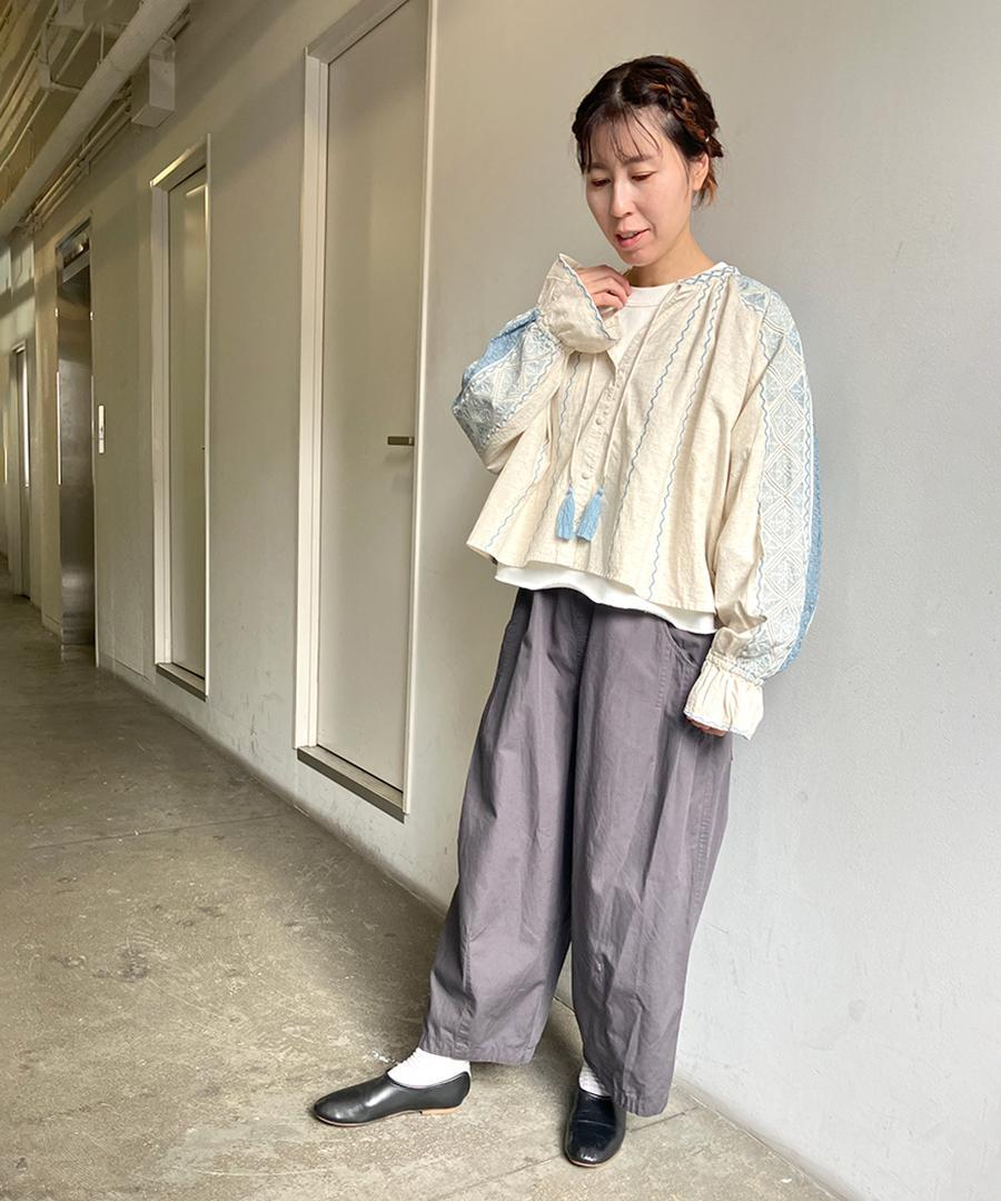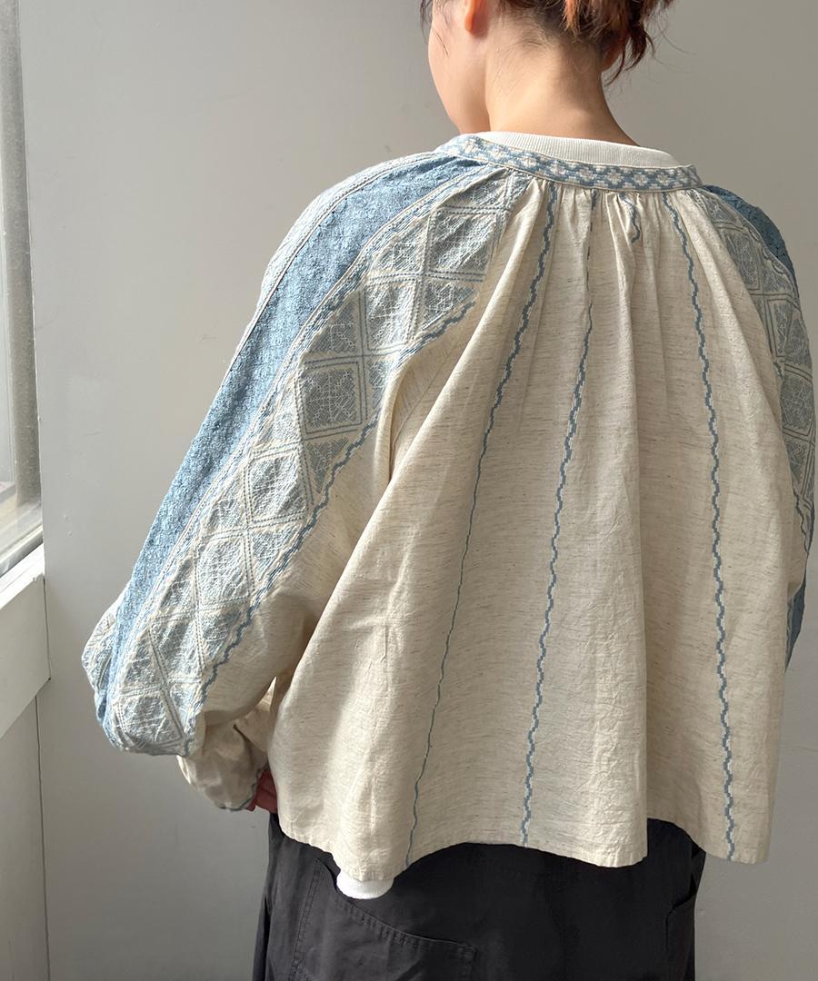 コットンリネン素材の程よいハリのある生地感で、軽やかに羽織っていただけます。