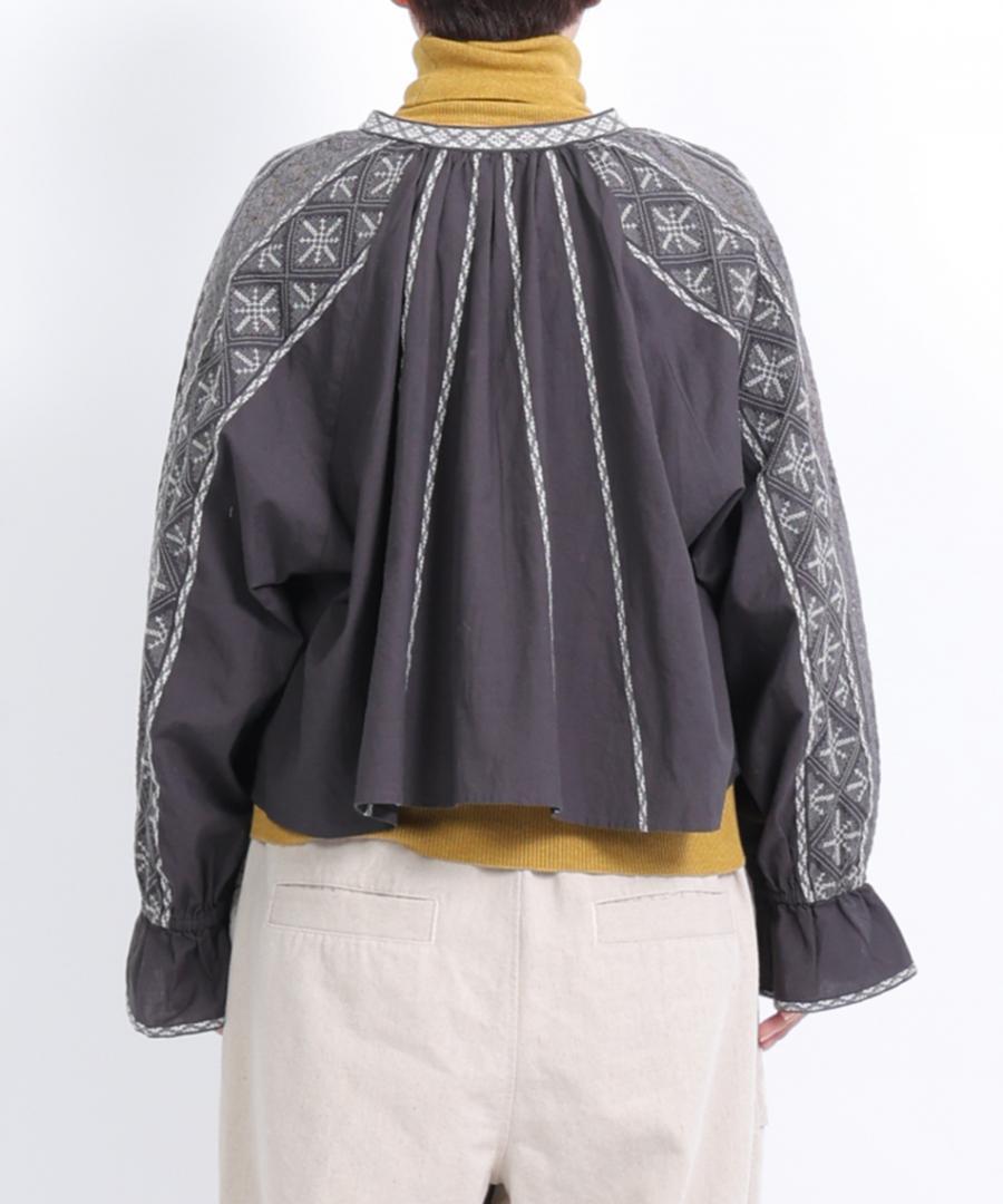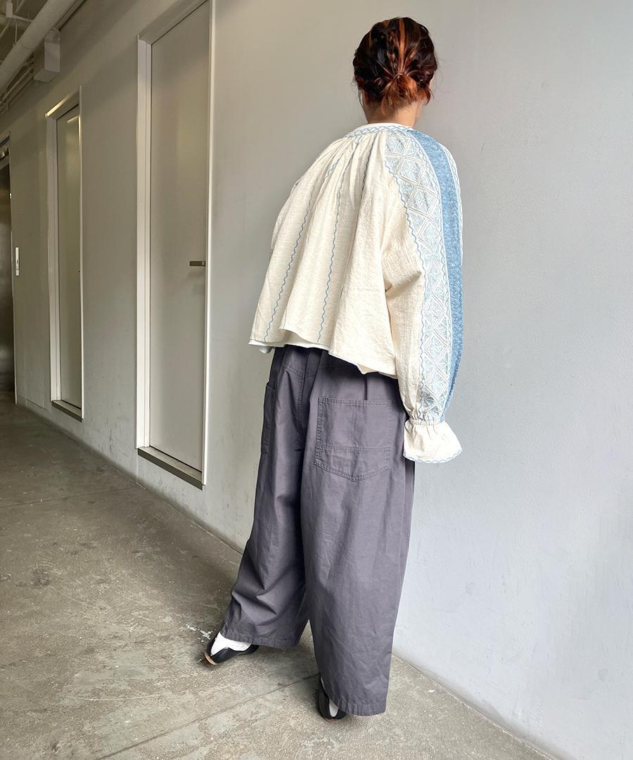 袖口はゴムシャーリング仕様で、腕まくりしやすいのも嬉しいポイント。