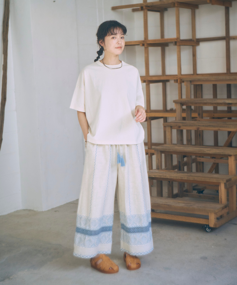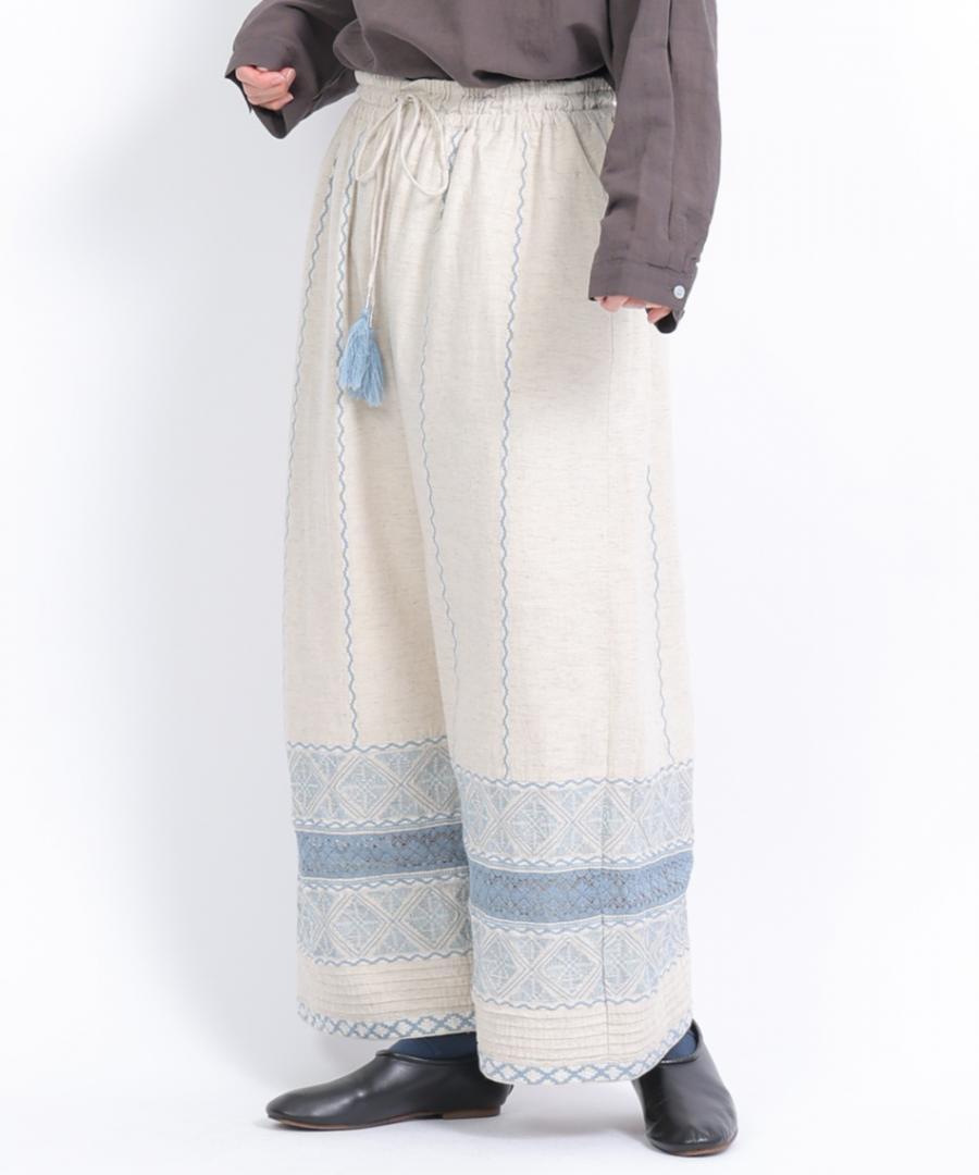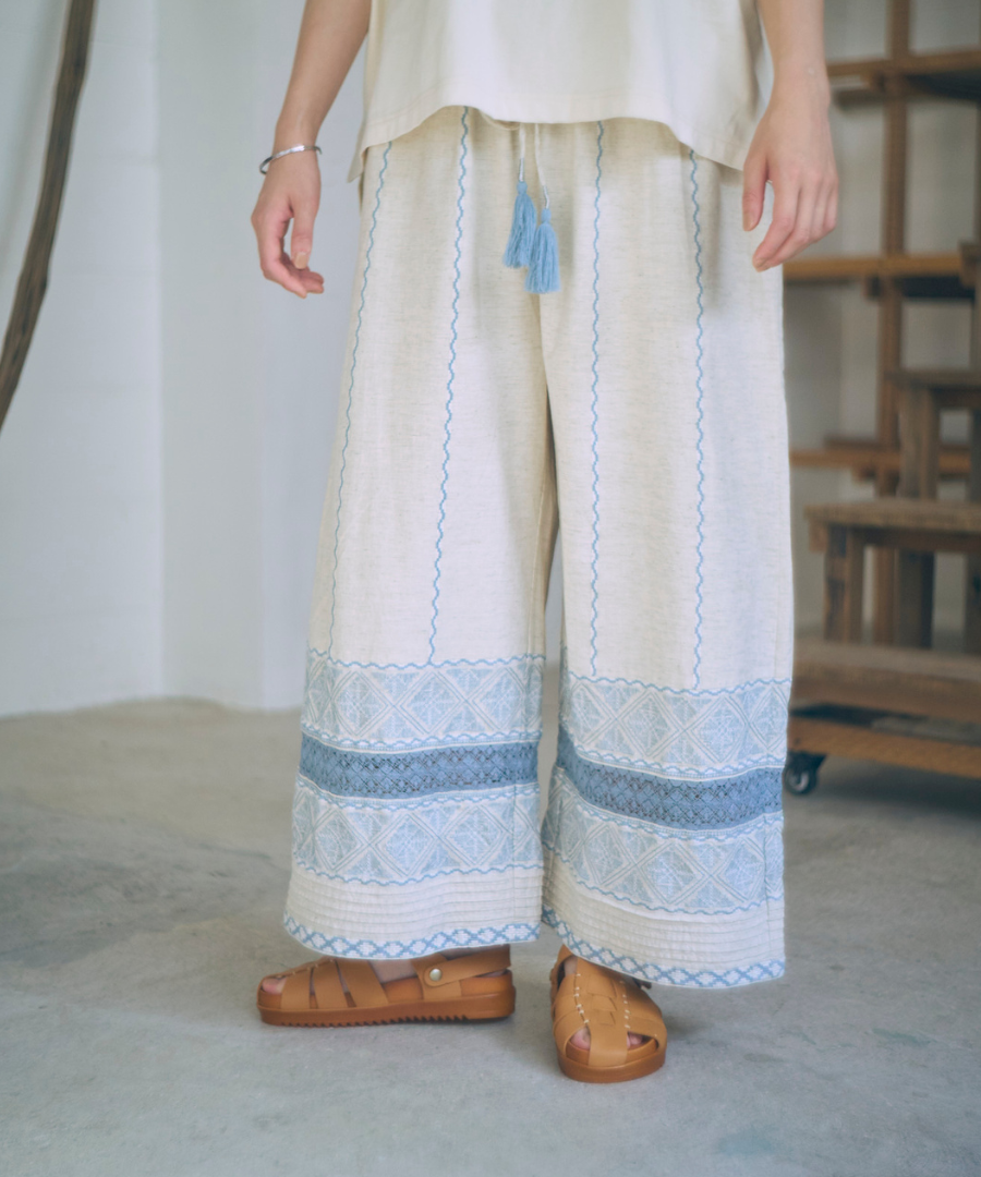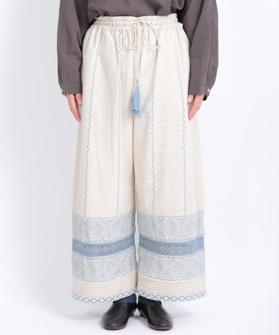 インドの繊細な刺繍とレースを贅沢に施した、パンツ。