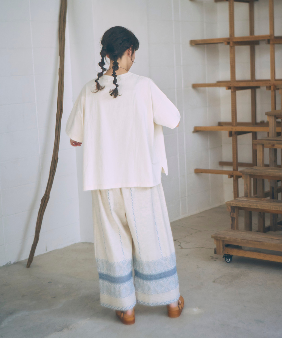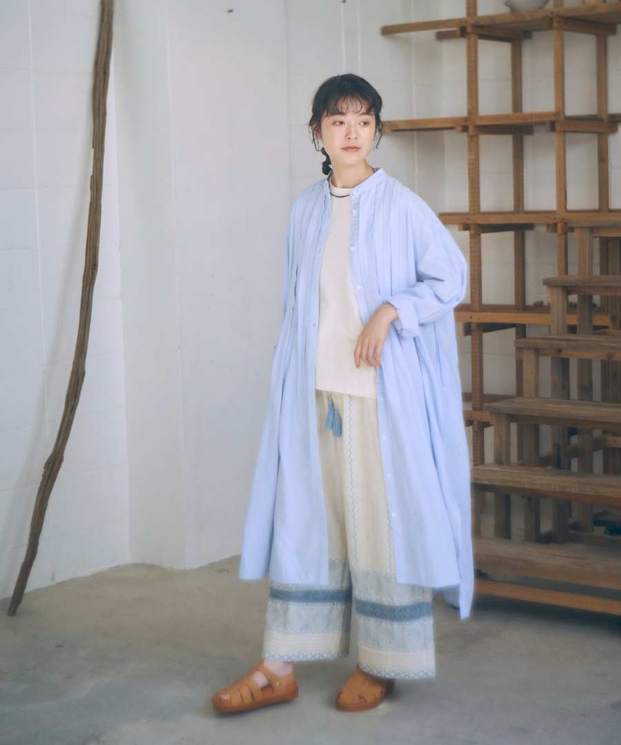 綿麻素材で軽やかさと程よいハリのある生地感です。