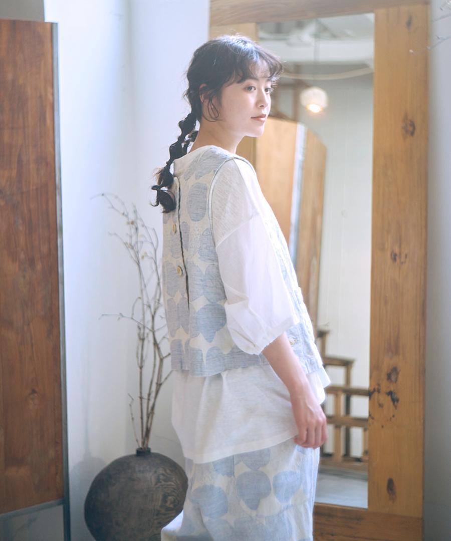 麻の風合いと柔らかさもあるしっかりとした生地で仕立てた2wayベスト。